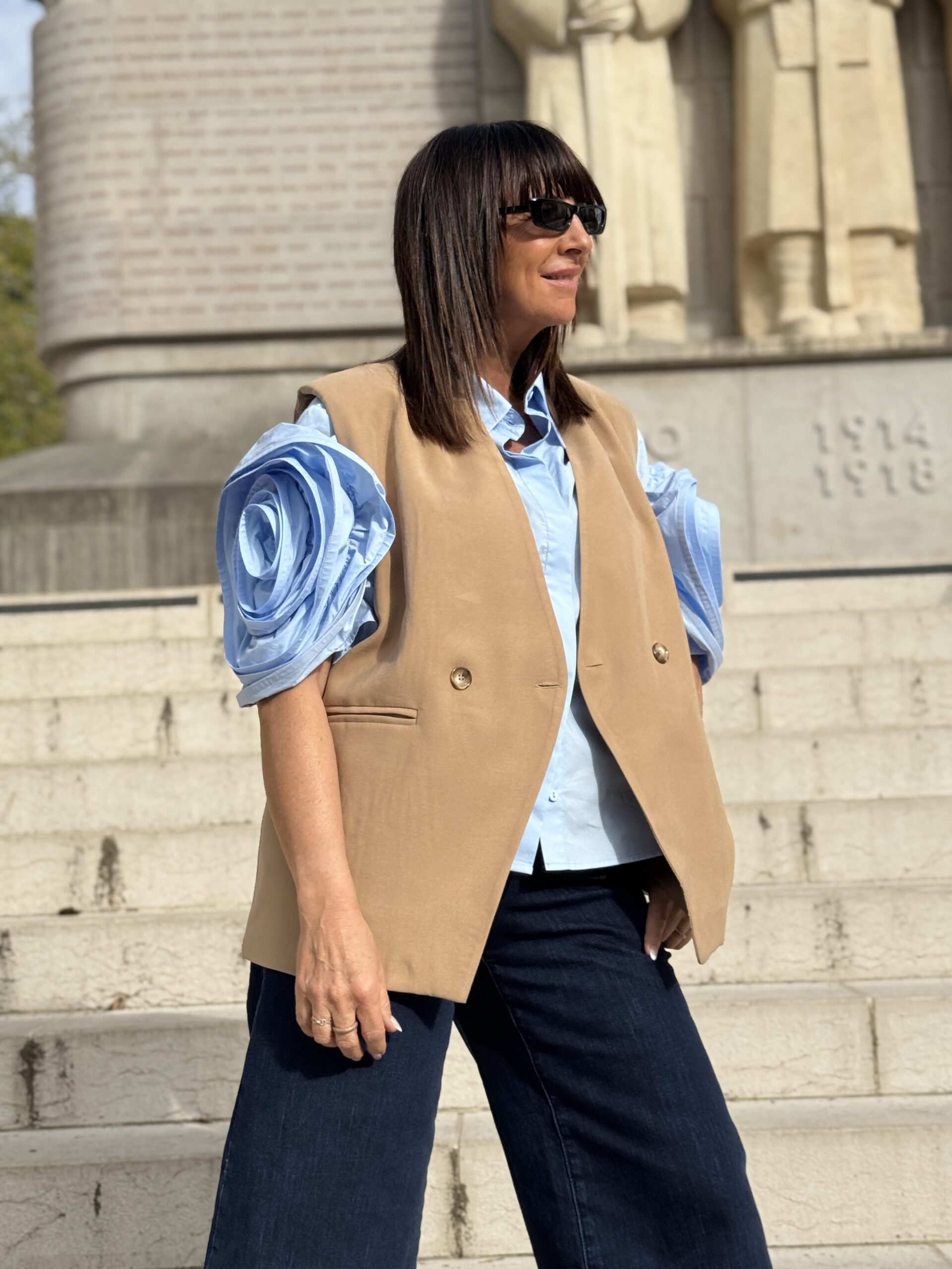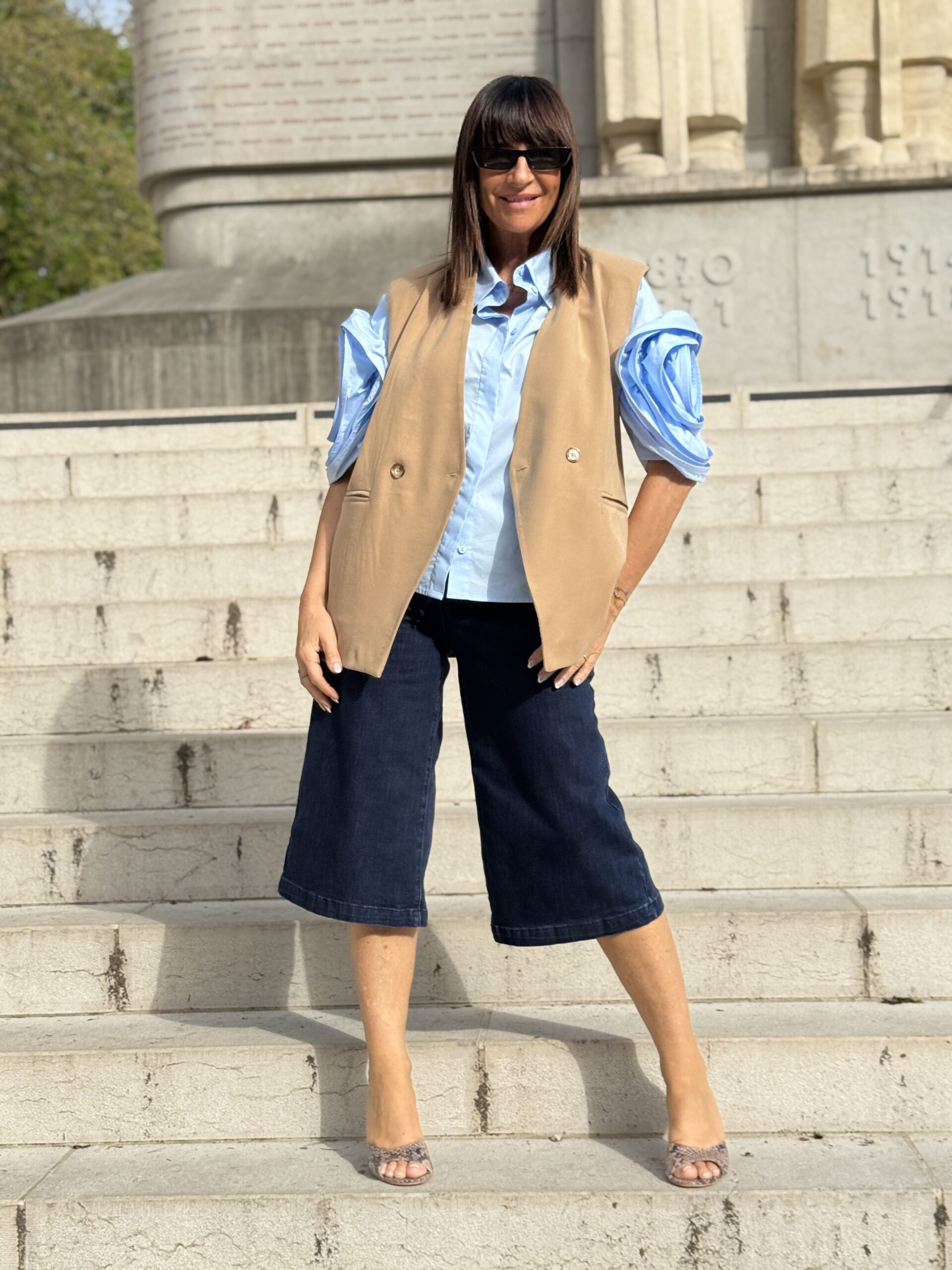 Conseil mode de Nathalie : À porter avec un pantalon clair et des mules à talon pour un effet plus habillé.
