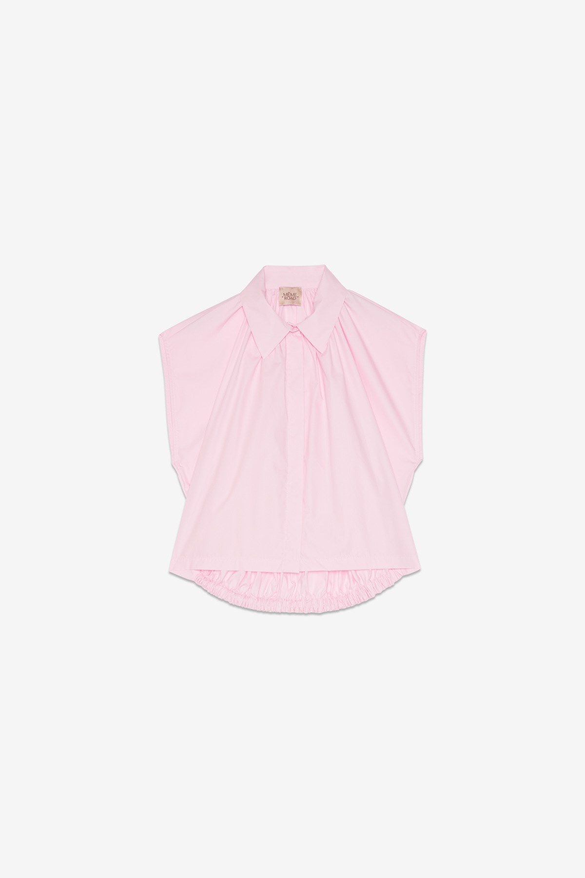 Chemise rose clair au design moderne et structuré, idéale pour une silhouette élégante et contemporaine. Son volume ample et ses plis au dos créent un tombé fluide er sophistiqué. Le col classique et la patte de boutonnage apportent une touche intemporelle, tandis que la coupe sans manches renforce son caractère mode.