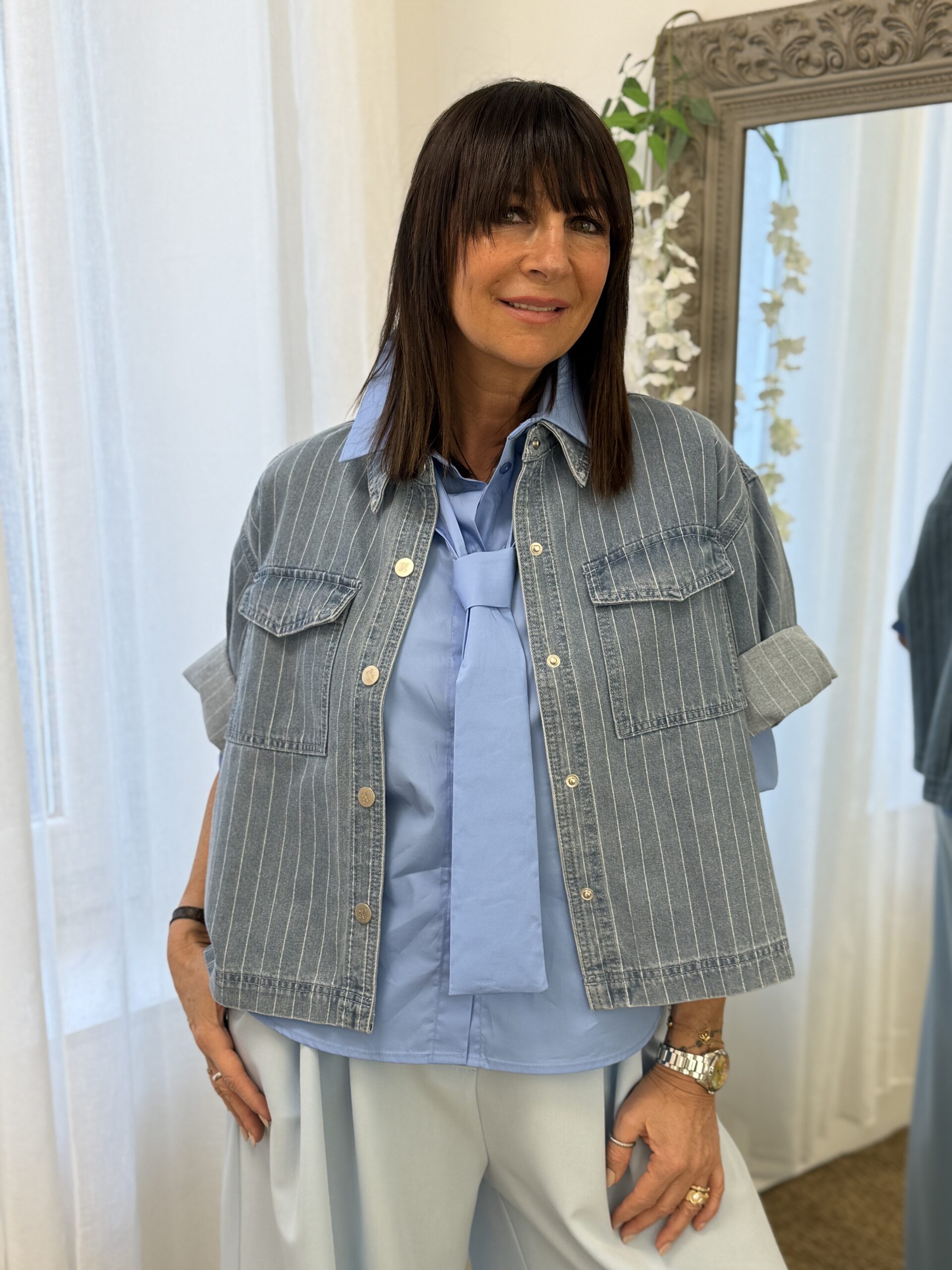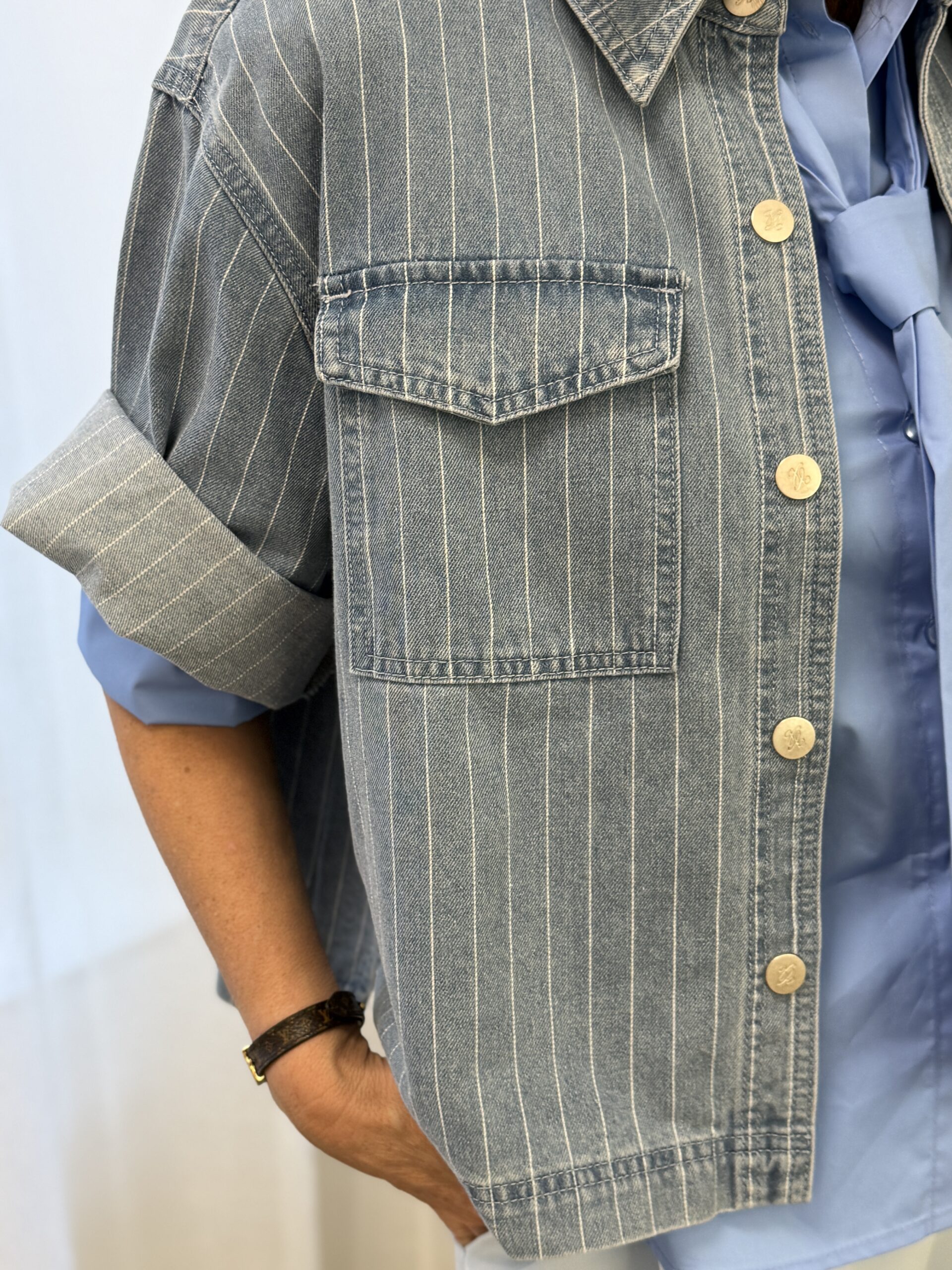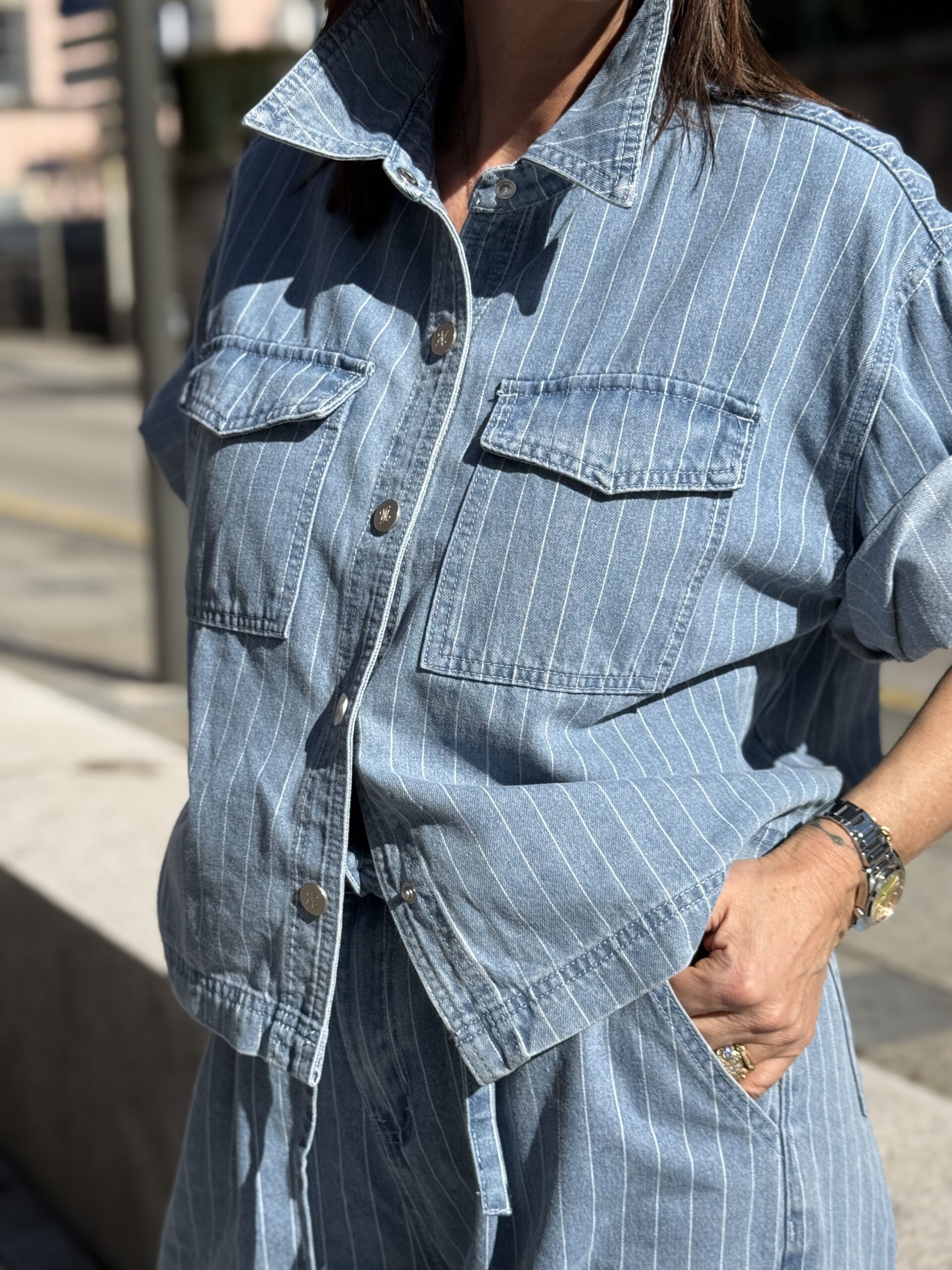 La chemise Vita est une pièce moderne et décontractée, idéale pour une allure casual chic. Confectionnée en denim léger, elle séduit par sa coupe oversize légèrement raccourcie, ses manches courtes et son coloris bleu ciel lumineux. Facile à porter au quotidien, elle s’adapte aussi bien à un look urbain qu’estival