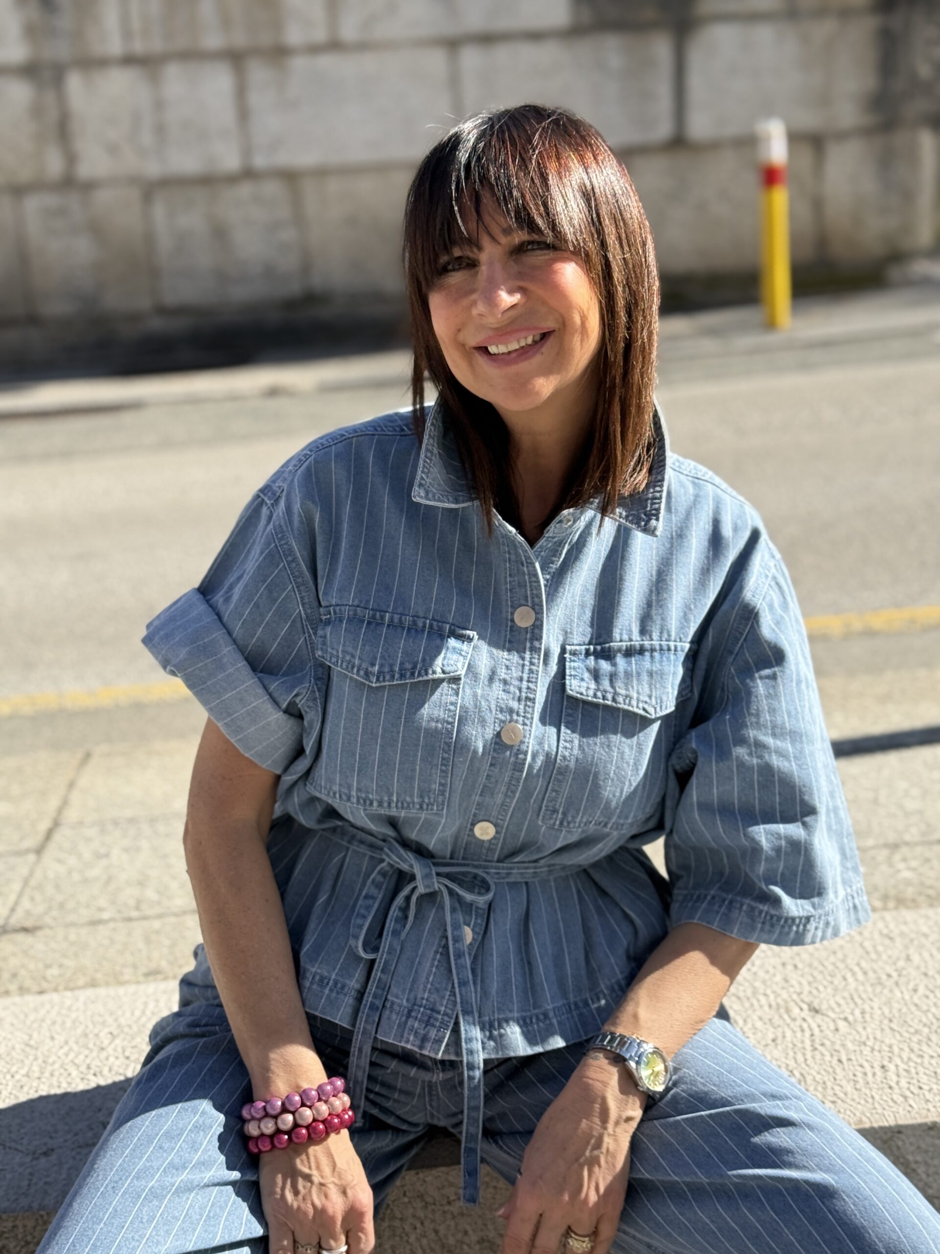 Conseil mode de Nathalie : A associer avec le pantalon coordonné pompon, à un short jean taille haute ou un jean pour un total look denim. Idéale avec des sandales ou des baskets minimalistes.