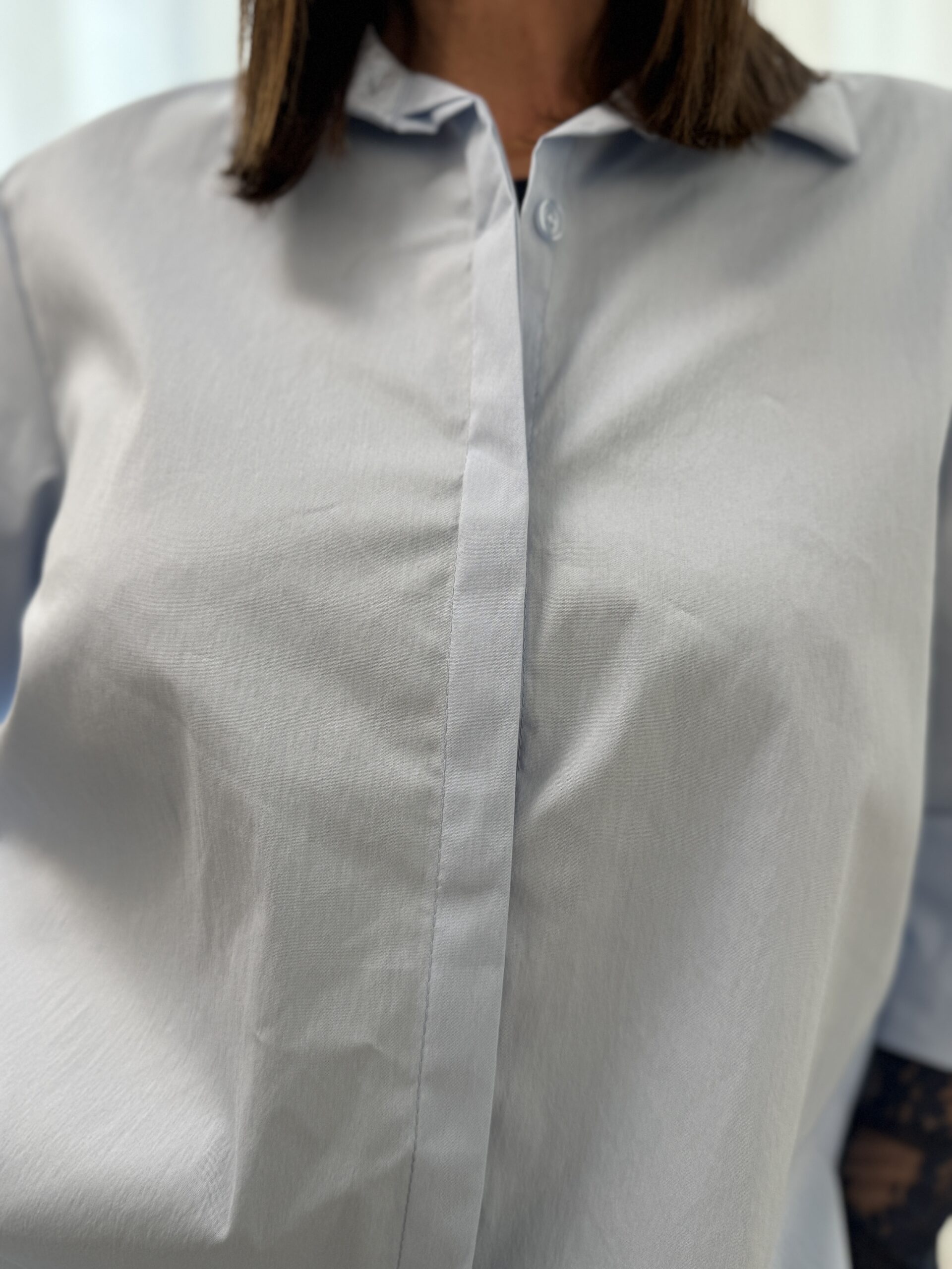 Chemise bleu ciel à l’allure minimaliste et moderne. Sa coupe oversize, offre un tombé fluide et confortable, parfait pour un look élégant et décontracté. Une pièce facile à intégrer dans toutes les garde-robe.
