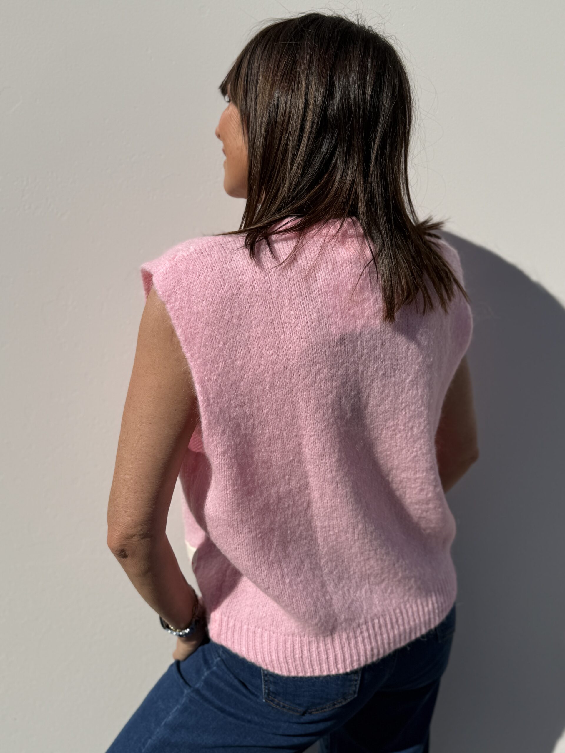 Osez le pink vibrant ! un pull sans manches qui dynamise instantanément votre silhouette avec modernité et fraîcheur.
