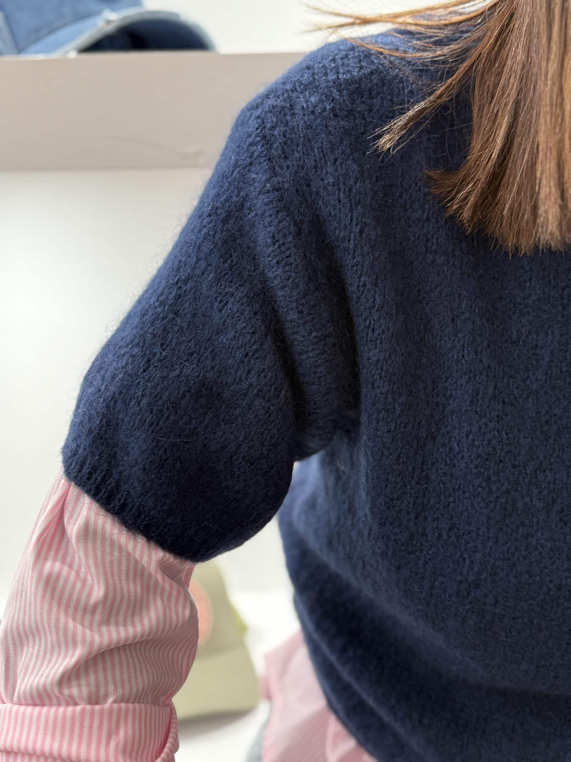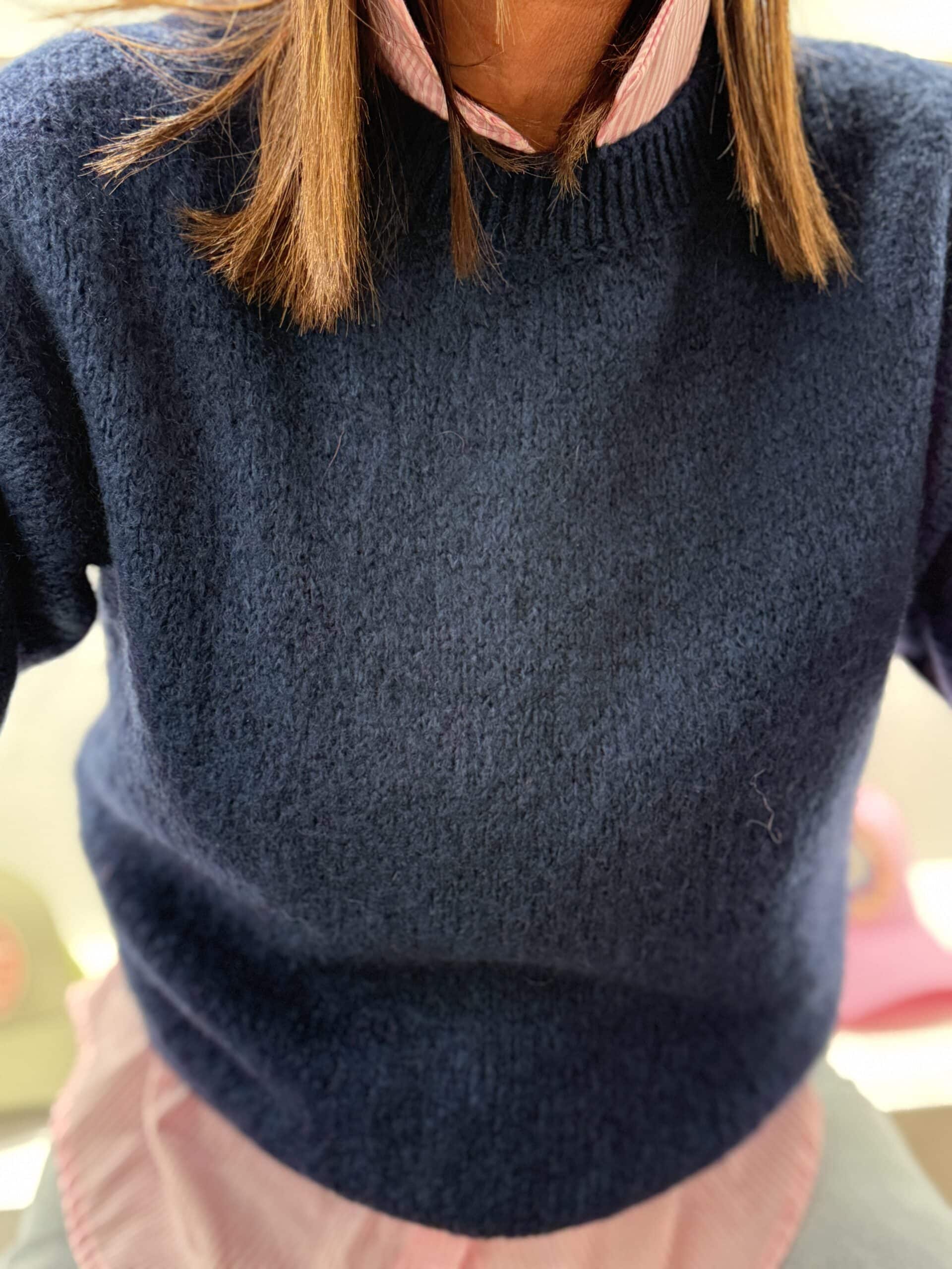 Une bouffée d’air frais dans votre dressing ! ce pull couleur bleu marine pour une silhouette douce et moderne.