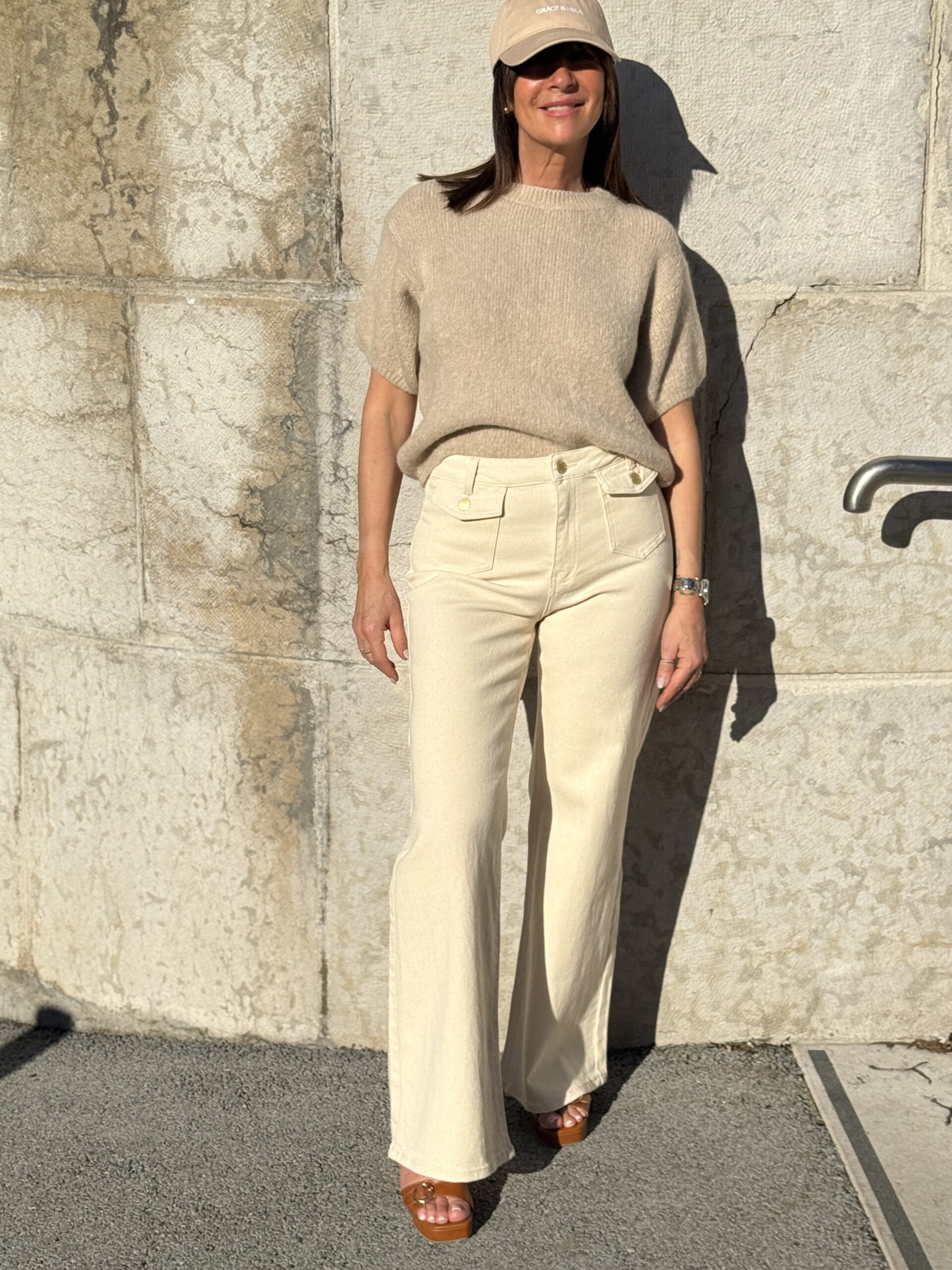 Conseil mode de Nathalie : Associez-le à un jean bleu clair ou blanc pour un look lumineux et épuré, avec des sandales camel ou des baskets blanches.
