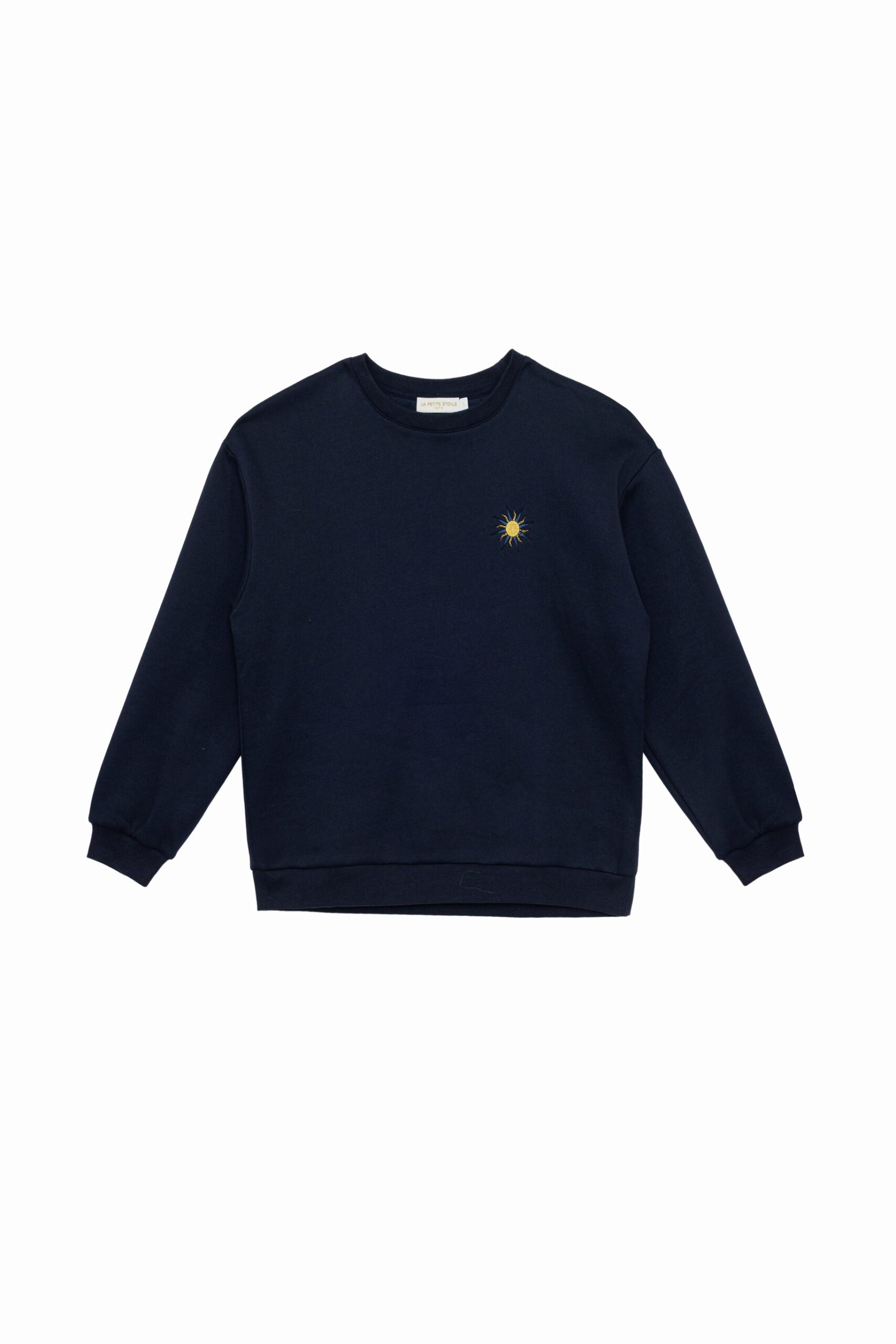 Tiger, le sweat en molleton chiné marine, orné d’une broderie tigre devant et dans le dos, avec finitions bord-côte !
