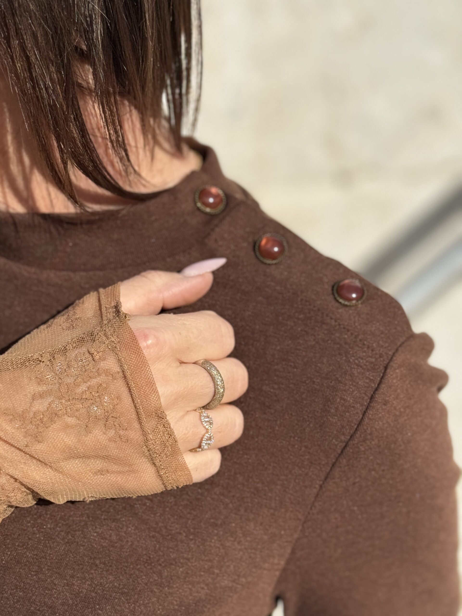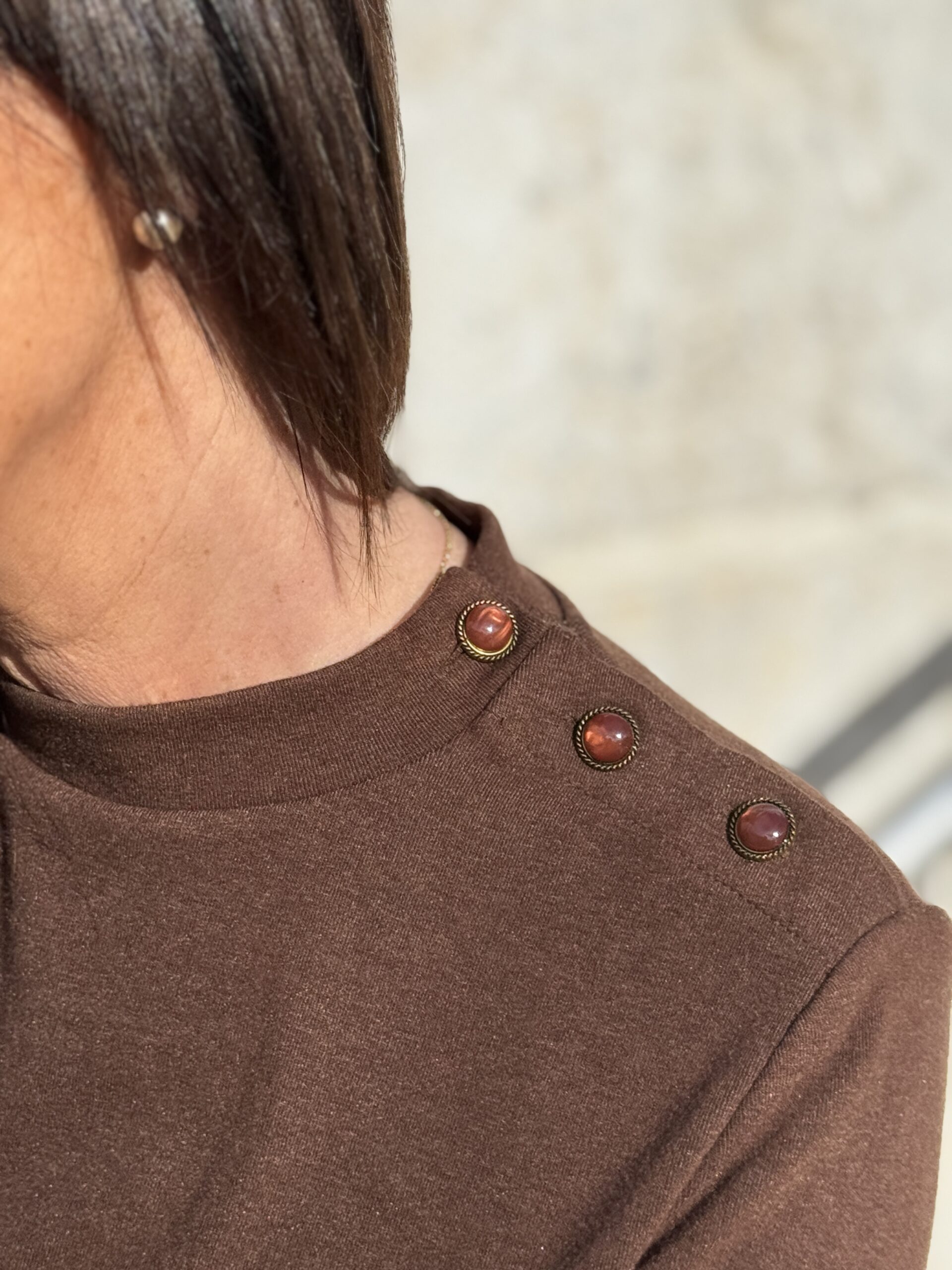 T-shirt au design épuré et féminin, rehaussé de boutons décoratifs à l’épaule pour une touche chic et moderne Sa matière douce et légèrement extensible assure un confort optimal et une belle tenue.
