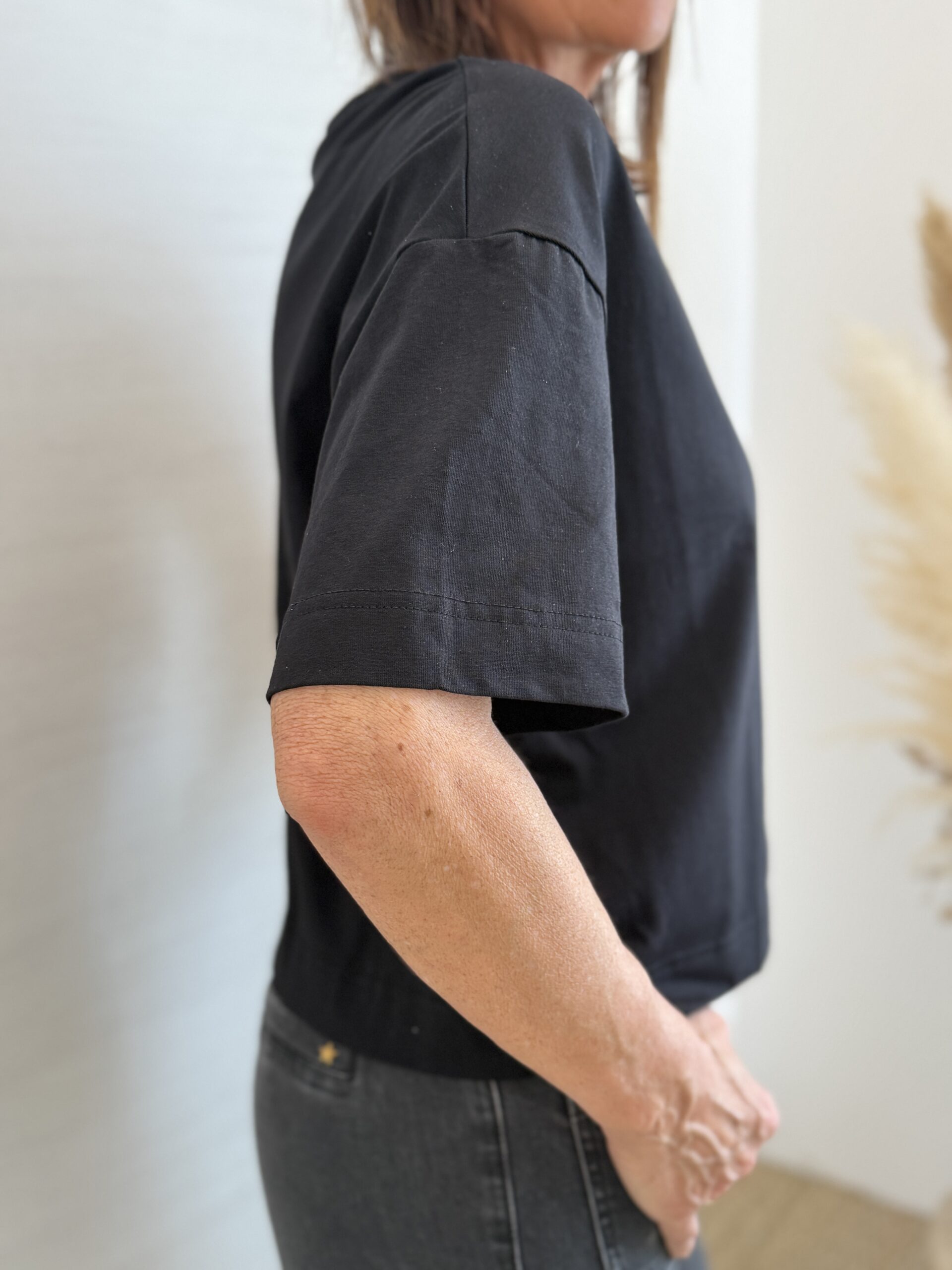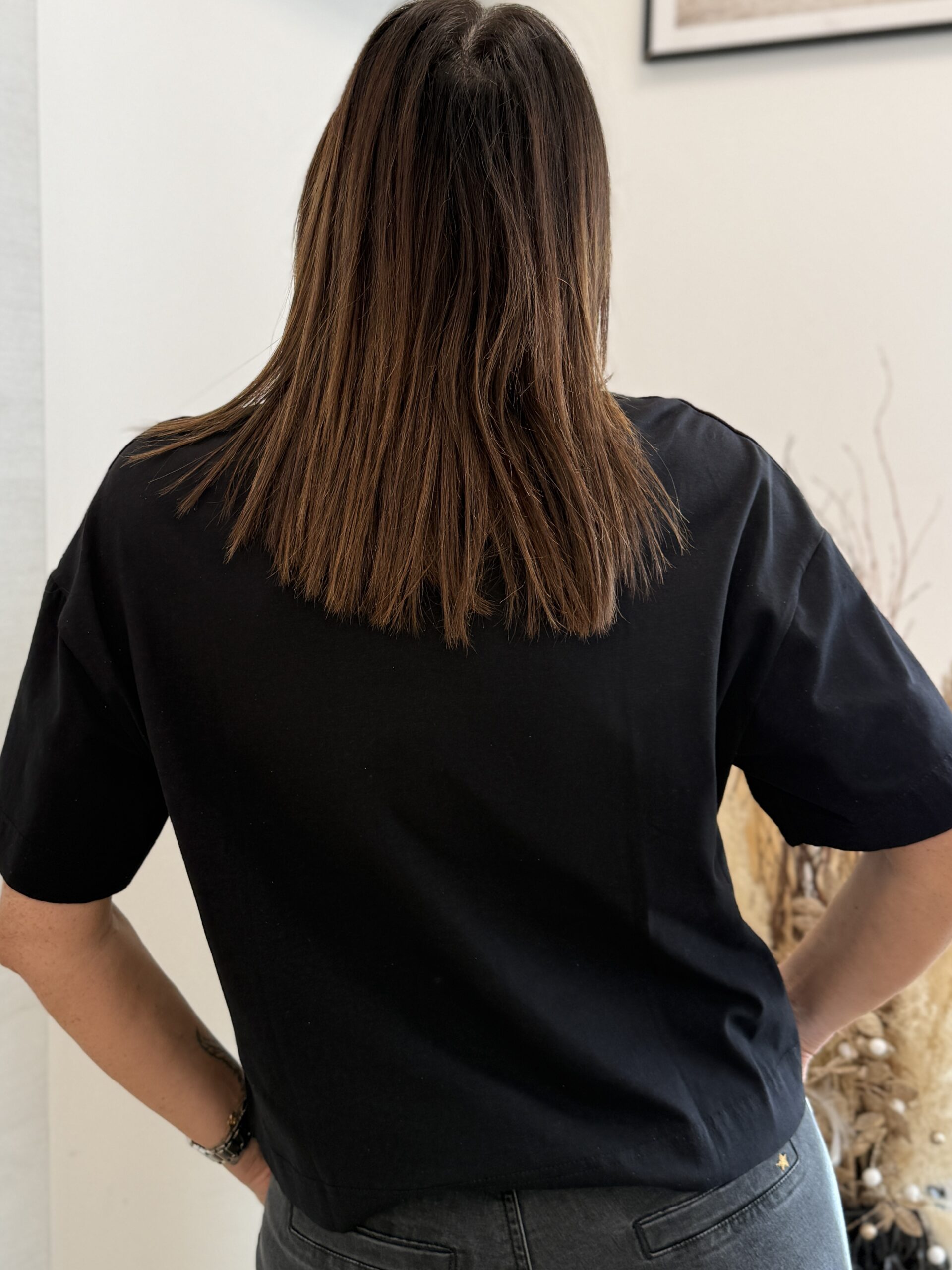 T-shirt moderne et minimaliste, confectionné dans une matière douce et légèrement strech pour un confort optimal.