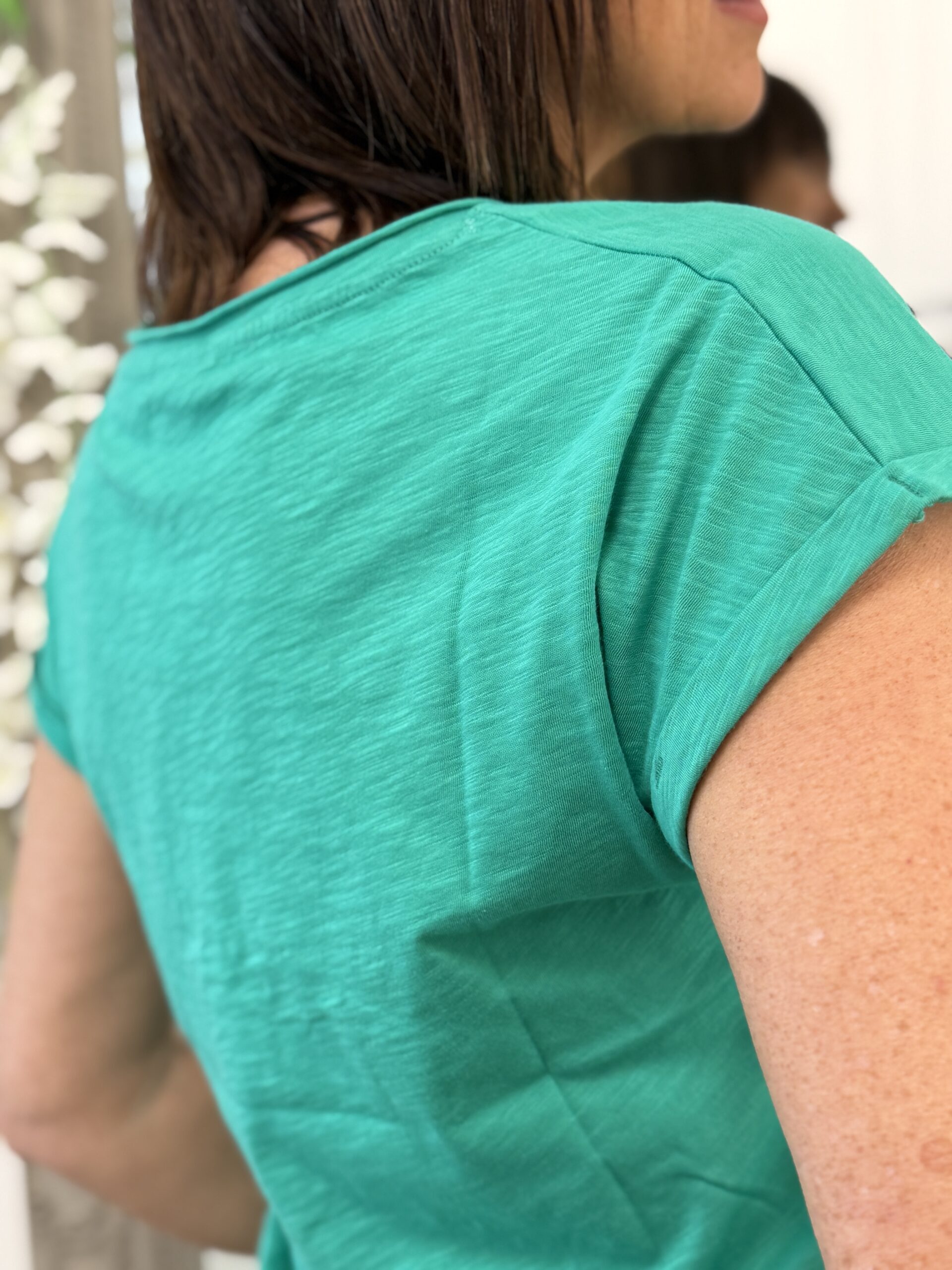 Conseil mode de Nathalie : Portez-le rentré dans un short denim et des sandales pour un look estival décontracté.