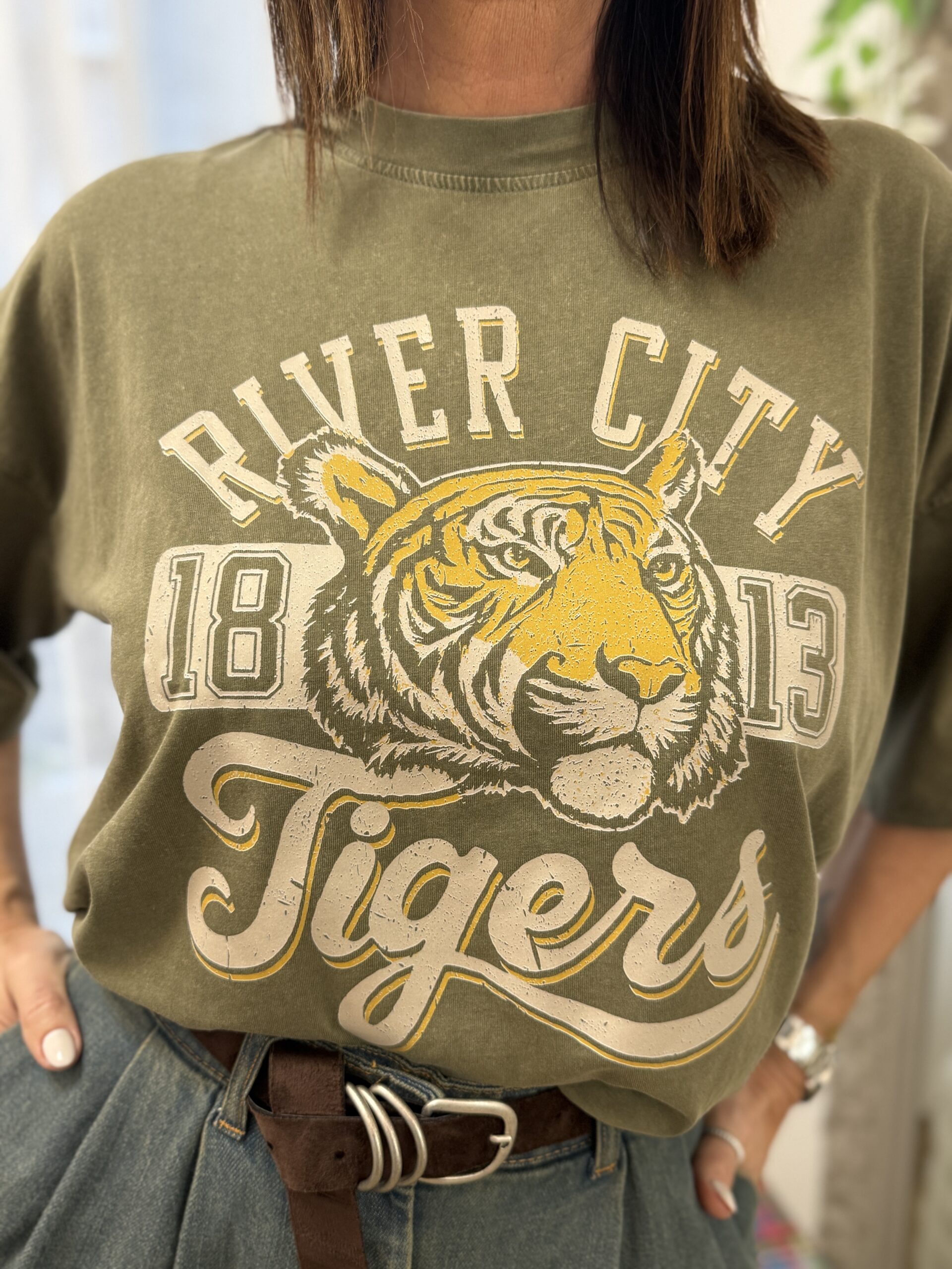 T-shirt kaki imprimé « River City » KIKISIX