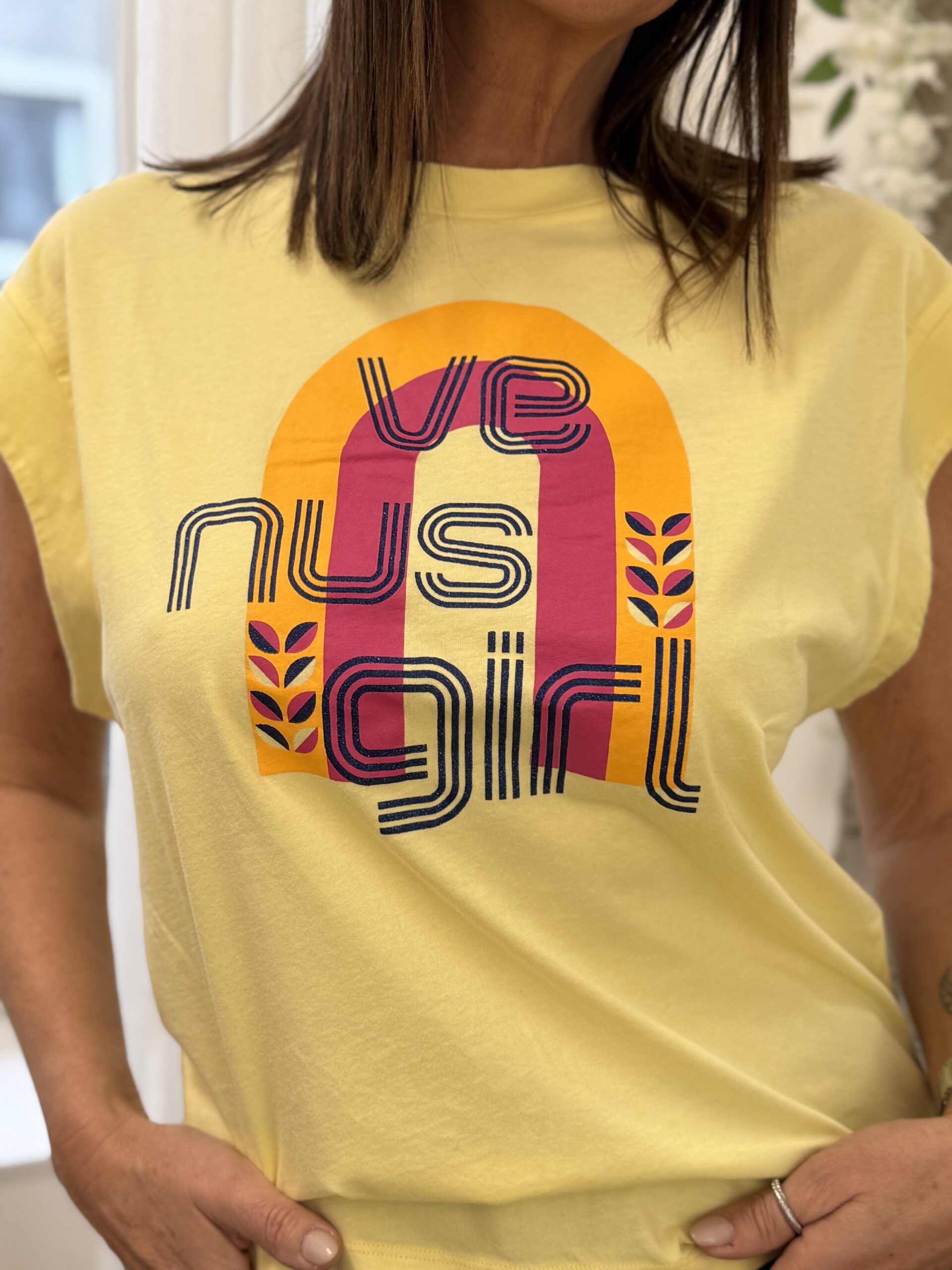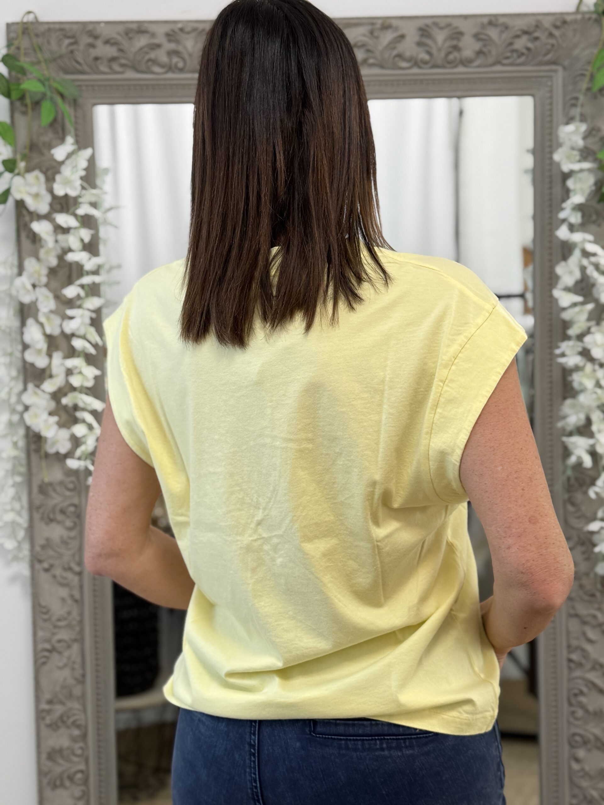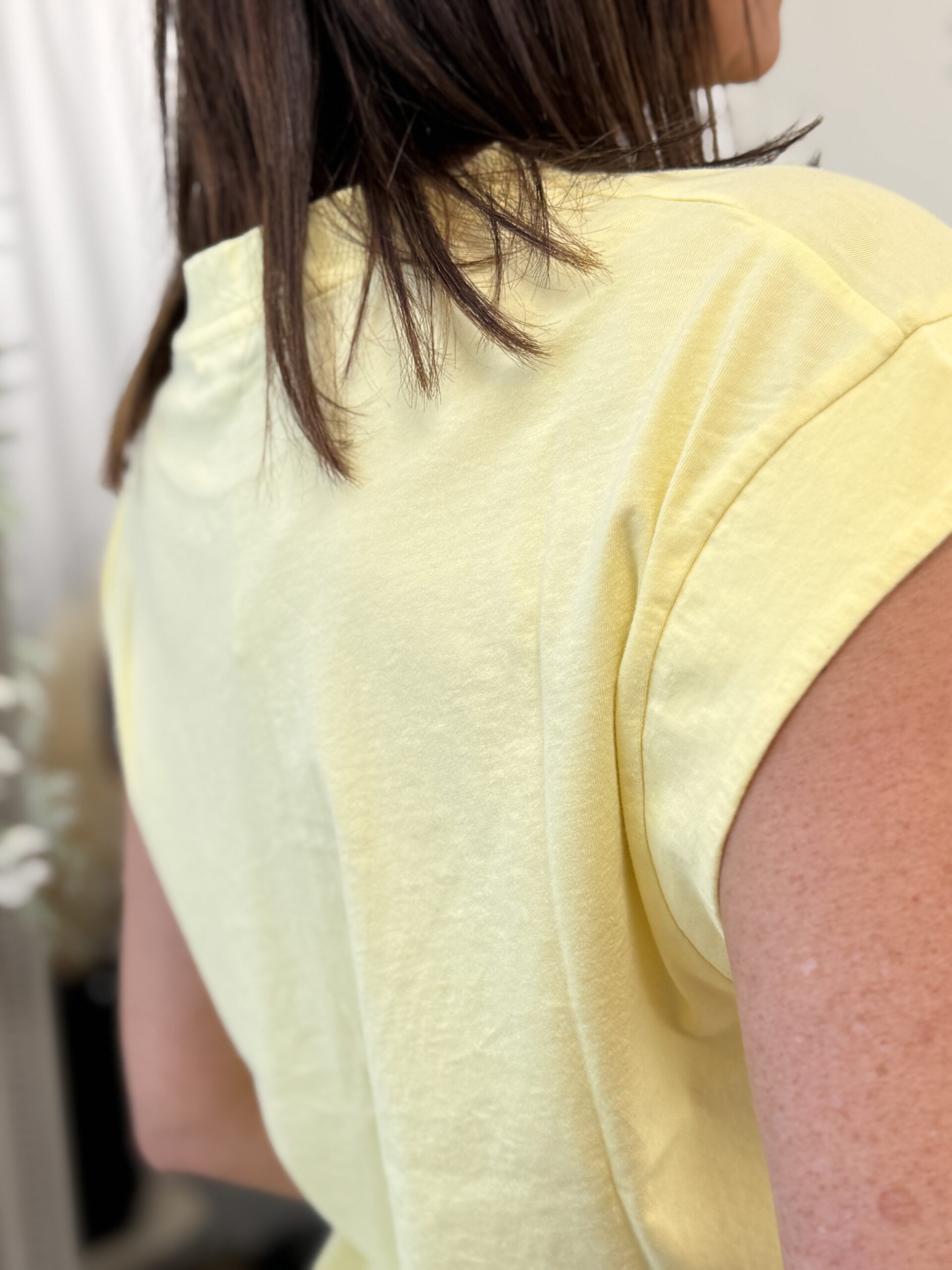 Conseil mode de Nathalie : Portez-le rentré dans un jean taille haute avec des sandales ou des baskets blanches pour un look estival décontracté.