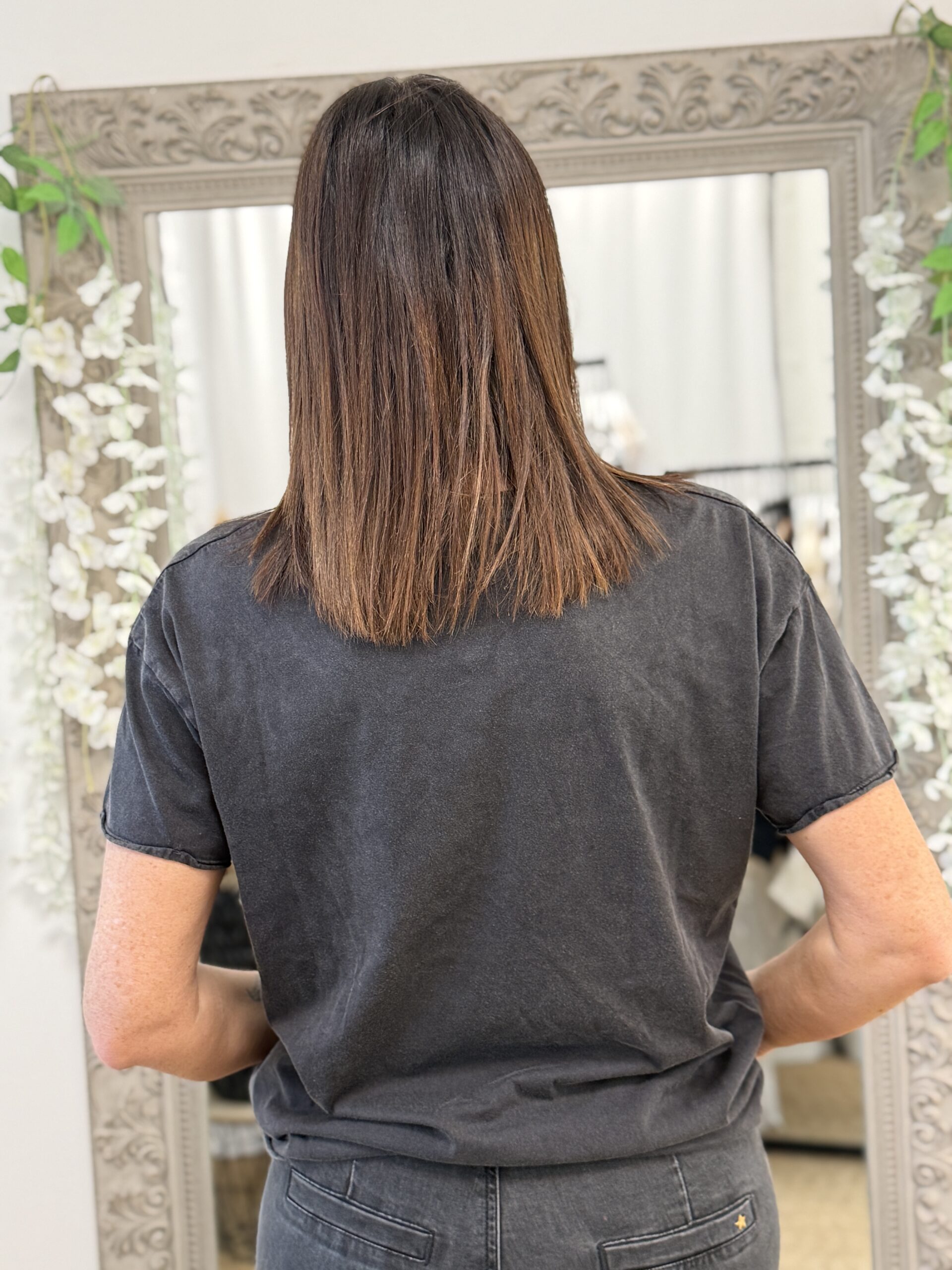 Ce t-shirt noir au style fun et graphique apporte une touche de bonne humeur à vos tenues.