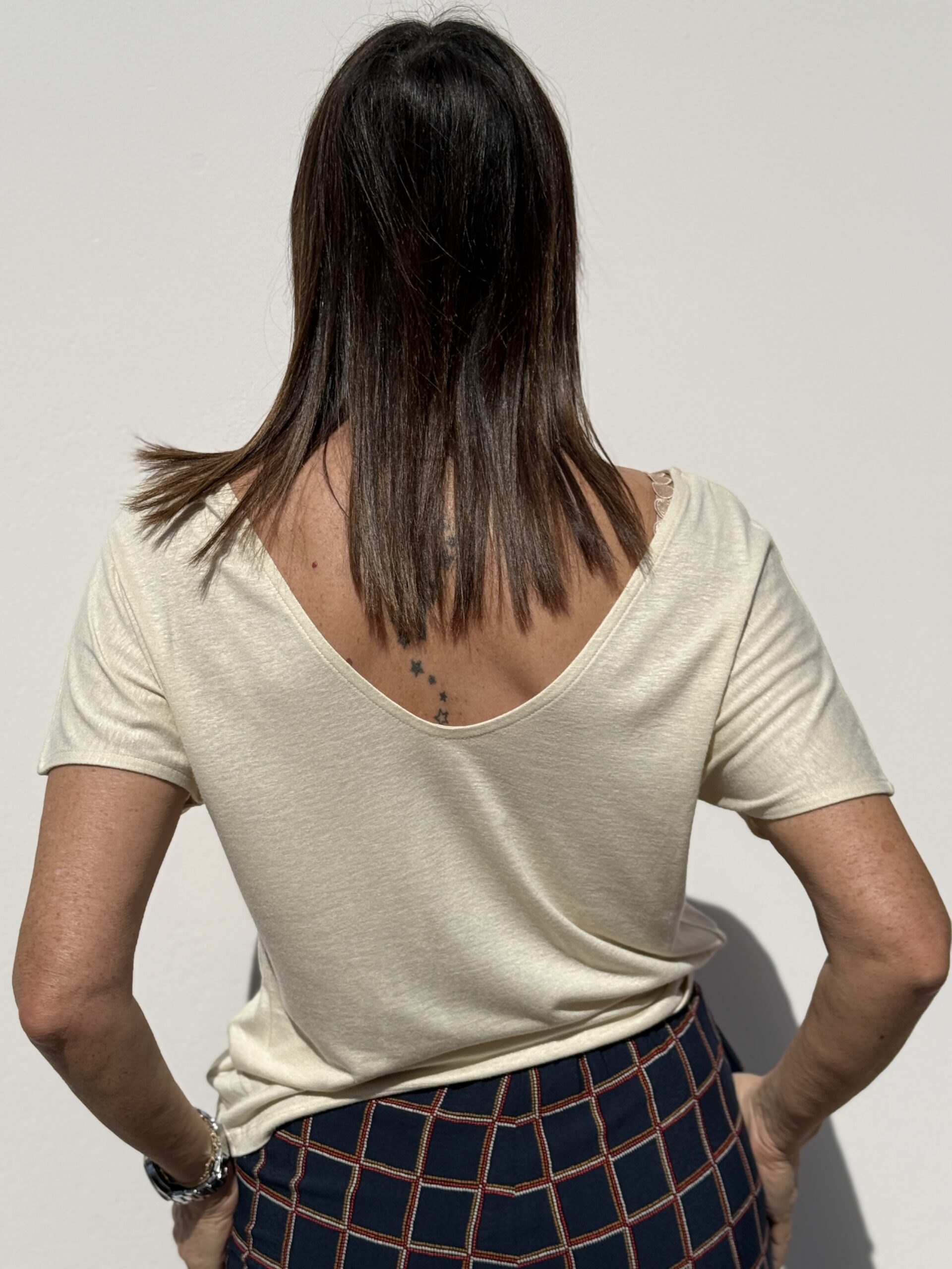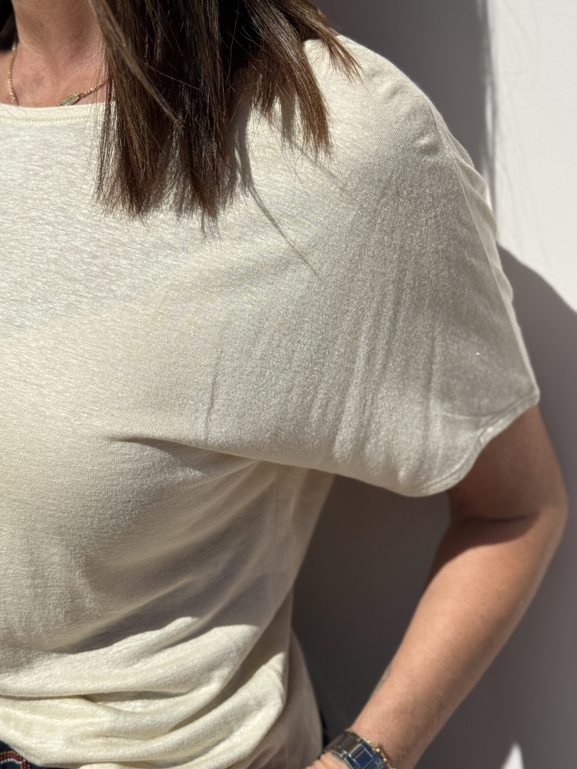 Conseil mode de Nathalie : Porte-le avec un jean clair taille haute légèrement loose et dans sandales pour un look simple mais efficace.