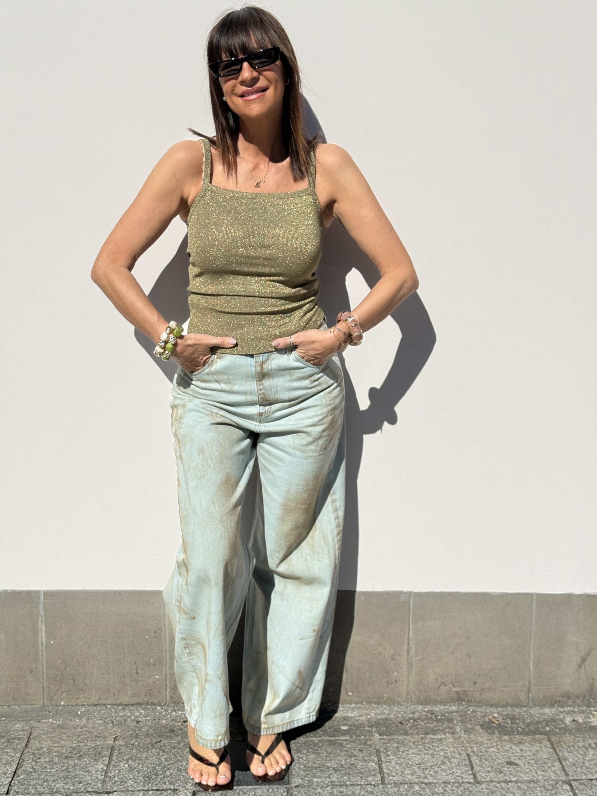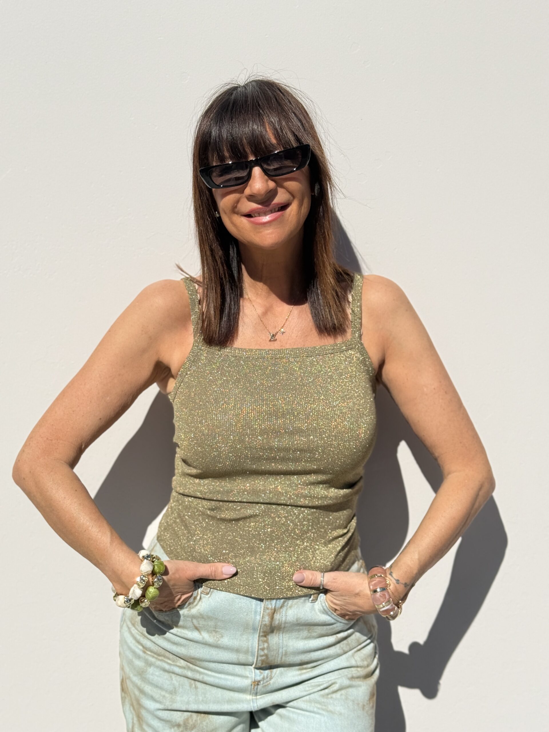 Top débardeur à fines bretelles côtelé kaki SOUVENIR