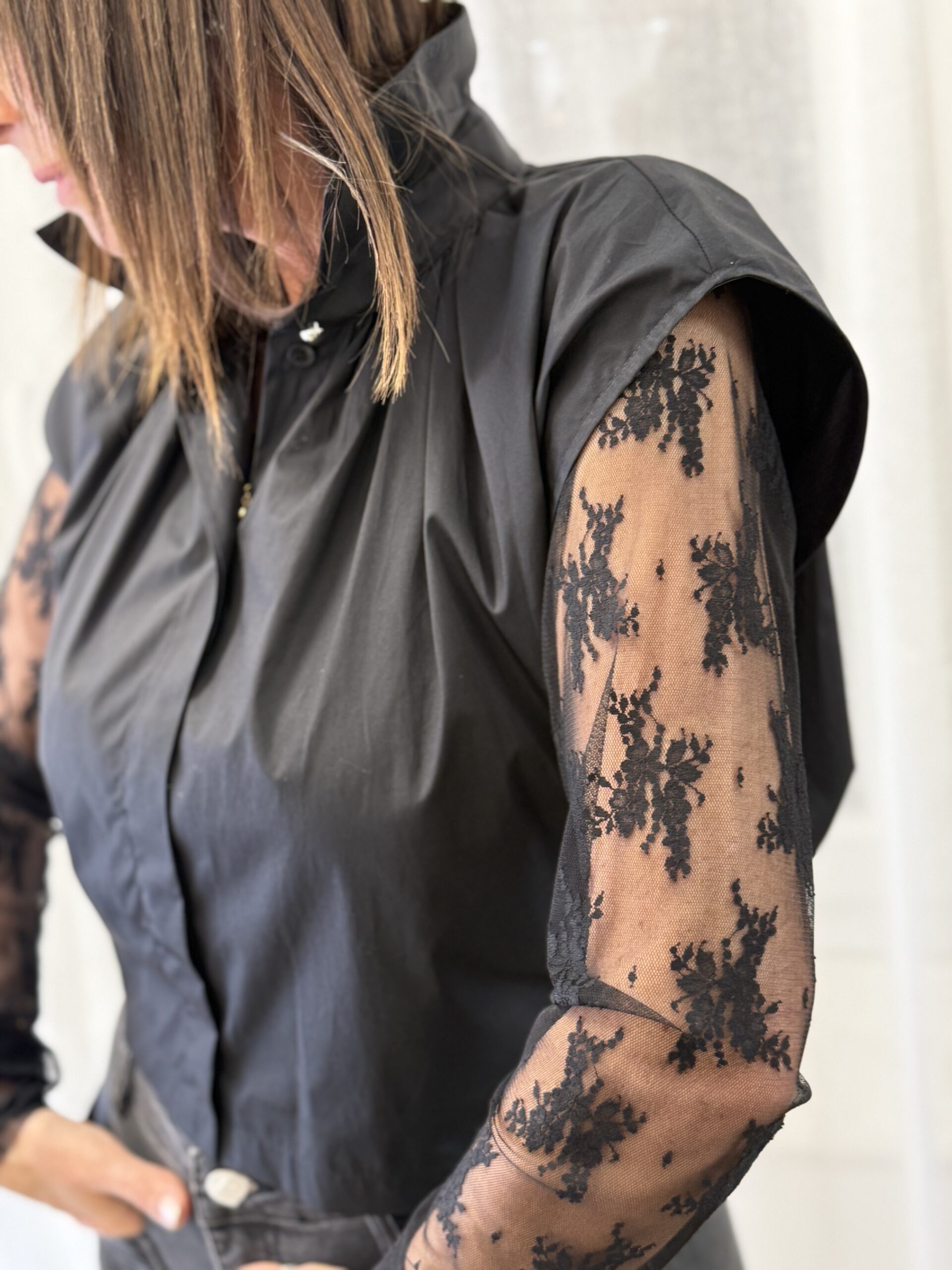 Top dentelle manches longues noir