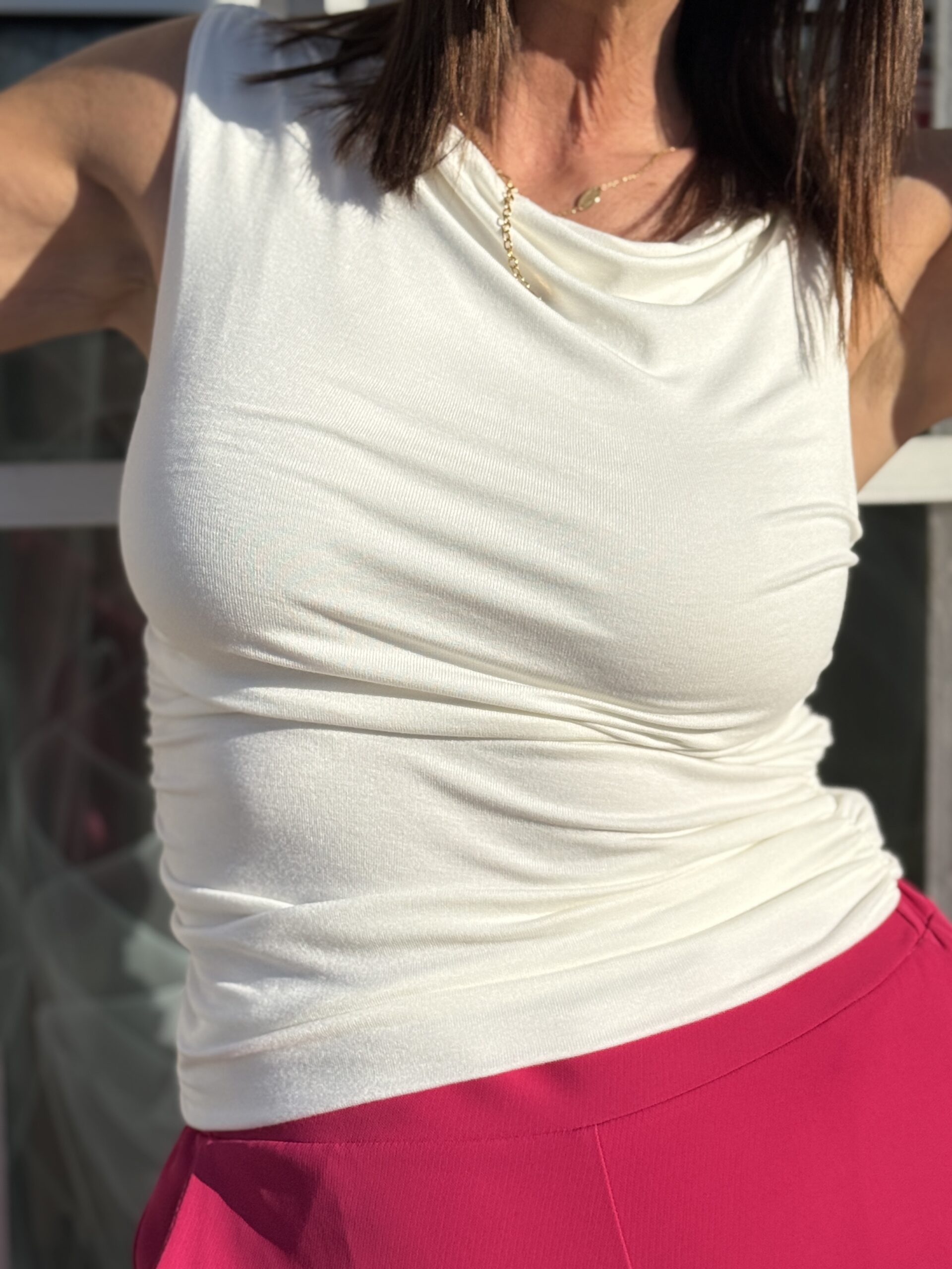 Le top sans manches »Valley » beige ivoire séduit par sa coupe près du corps et son encolure asymétrique one-shoulder, qui sublime la silhouette avec subtilité. Un look chic au quotidien comme en soirée.