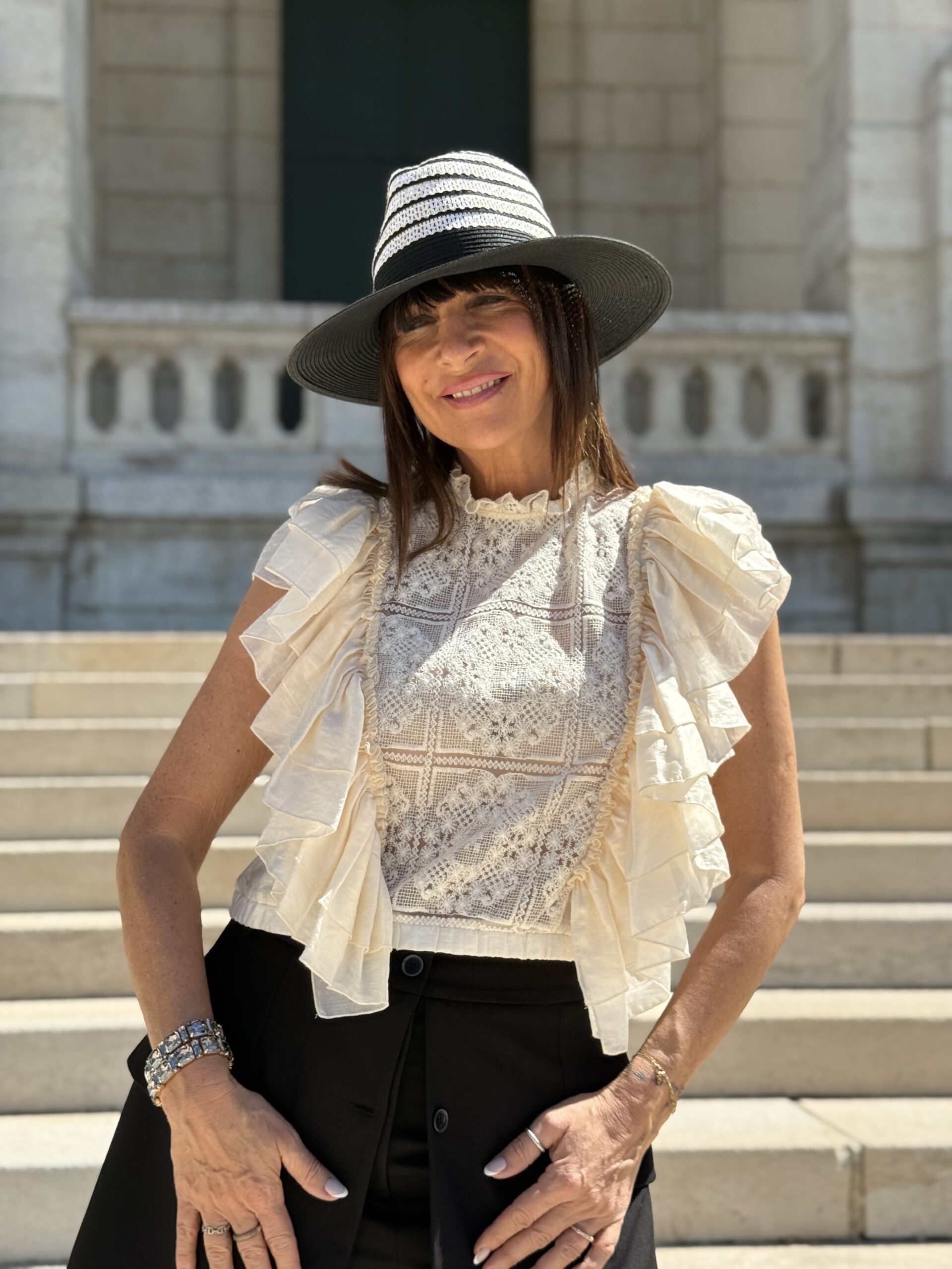 Conseil mode de Nathalie : Canon avec un jean taille haute ou un pantalon fluide pour un look bohème chic hyper tendance.