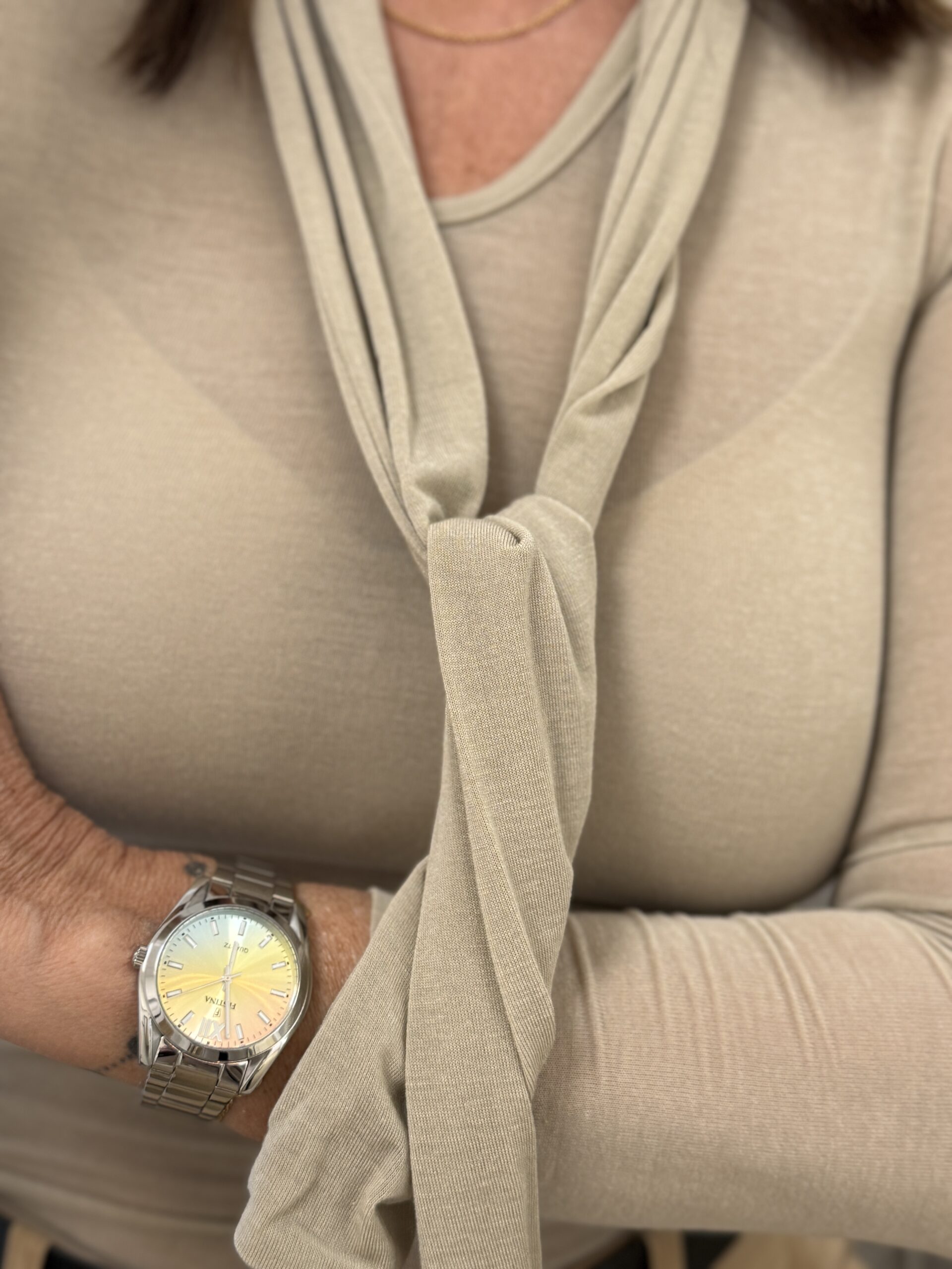 Top fluide avec écharpe intégrée beige KIKISIX