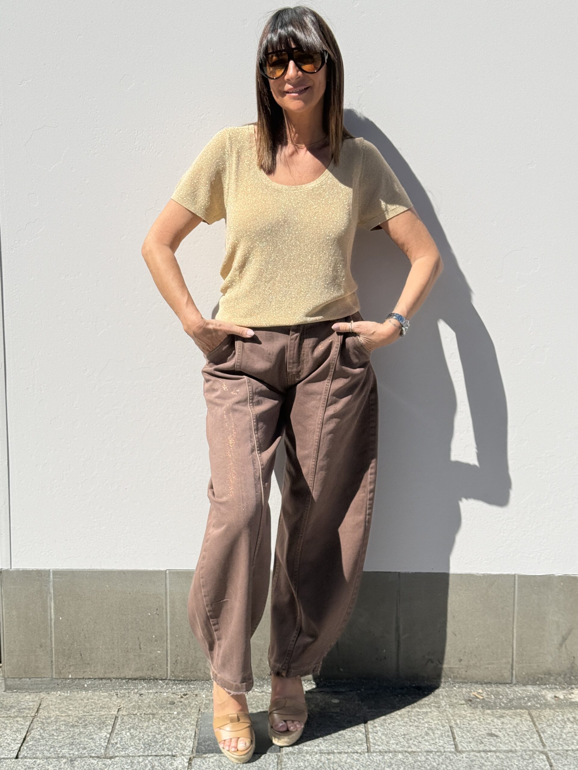Conseil mode de Nathalie : Associez-le avec un jean, un pantalon fluide ou sous un blazer pour une touche chic et lumineuse.
