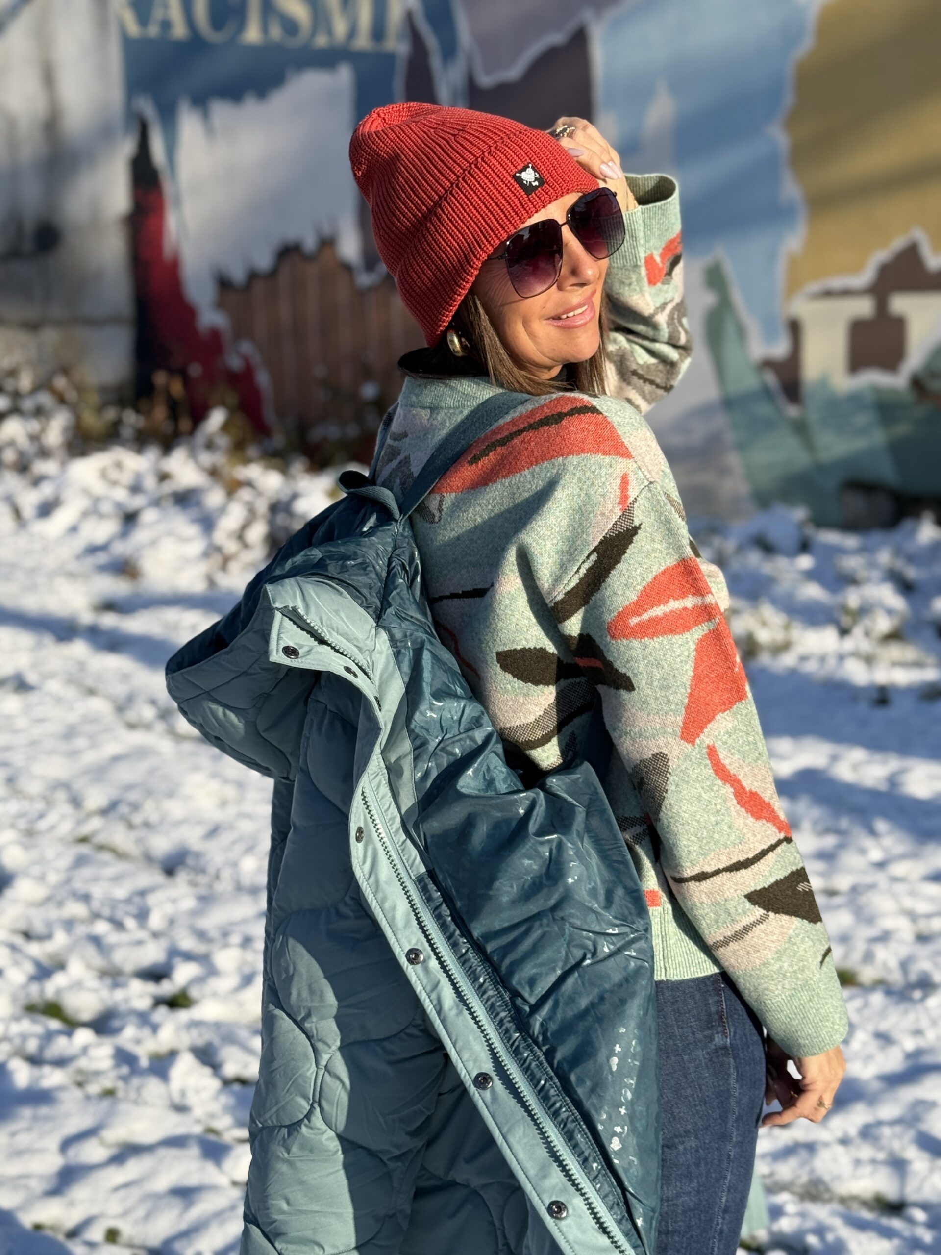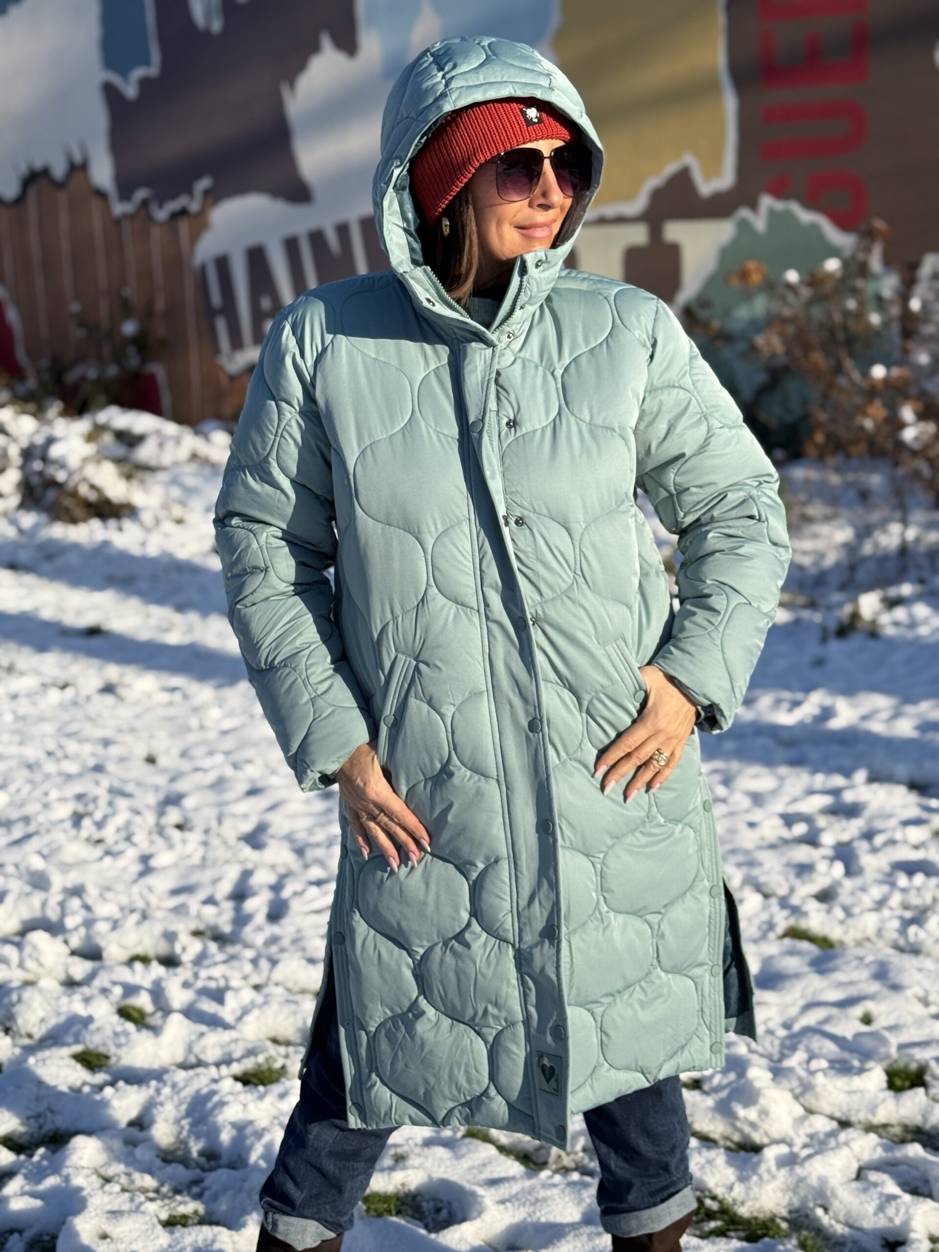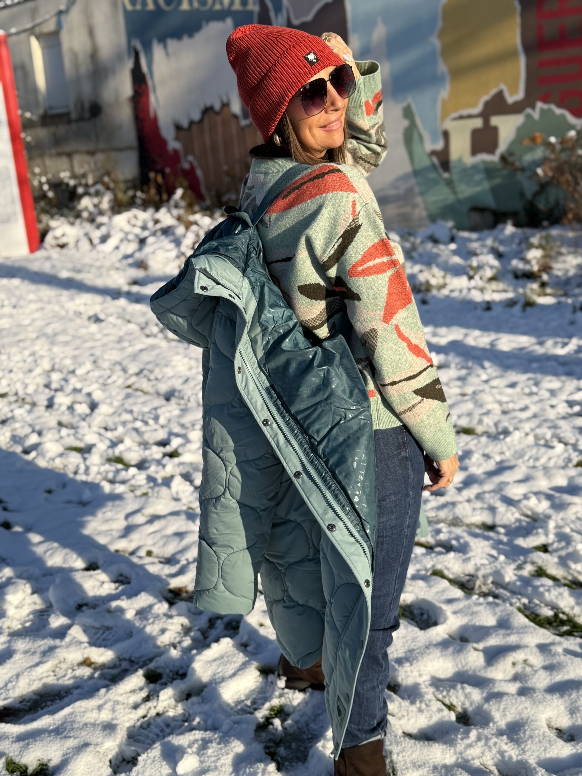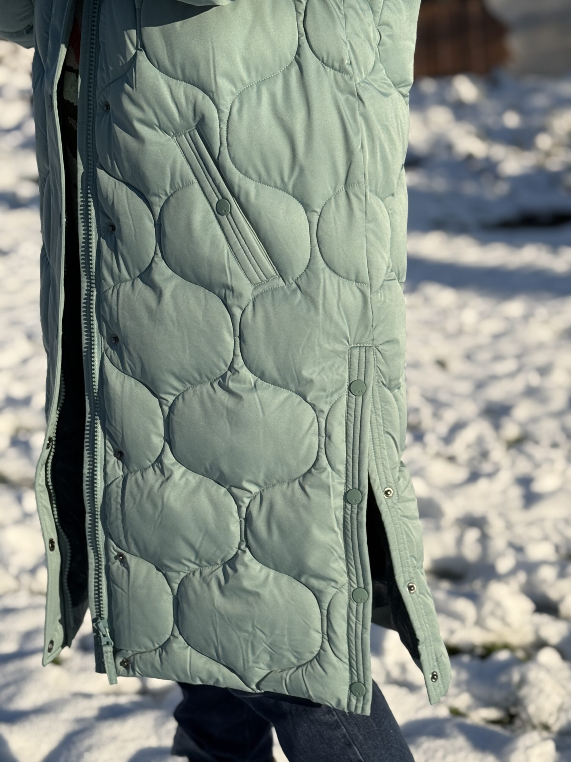 Cette doudoune longue matelassé aqua est LA pièce cocooning parfaite pour l’hiver !