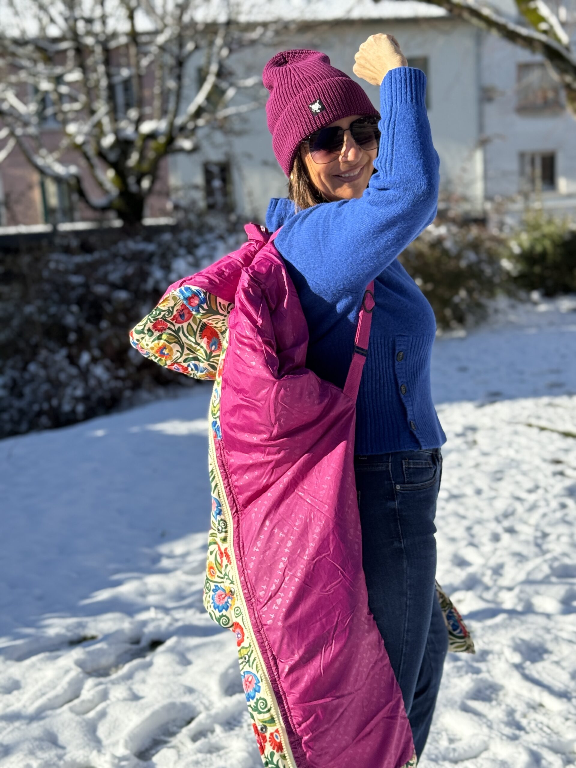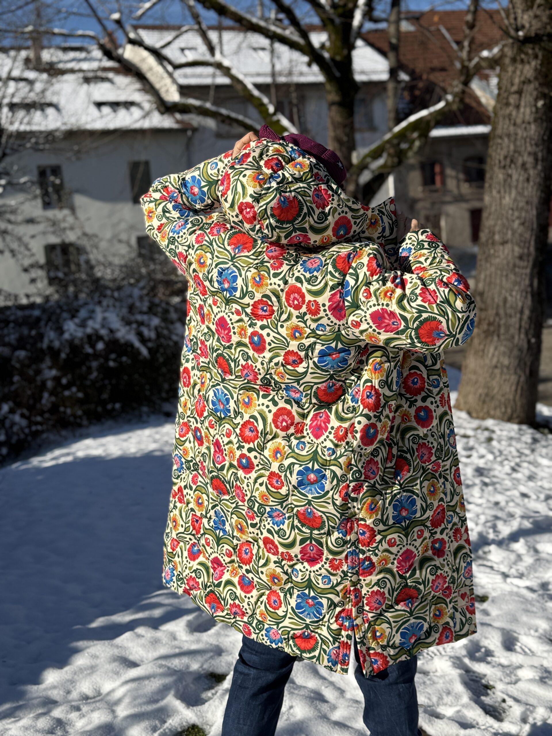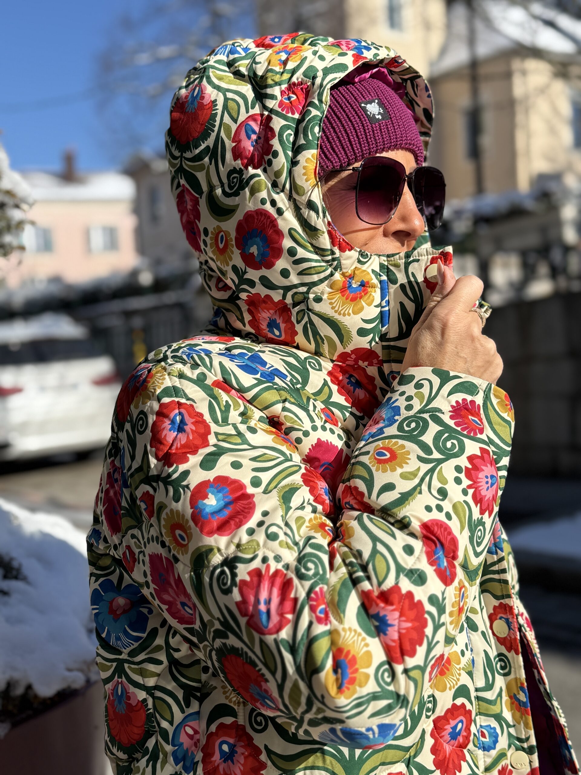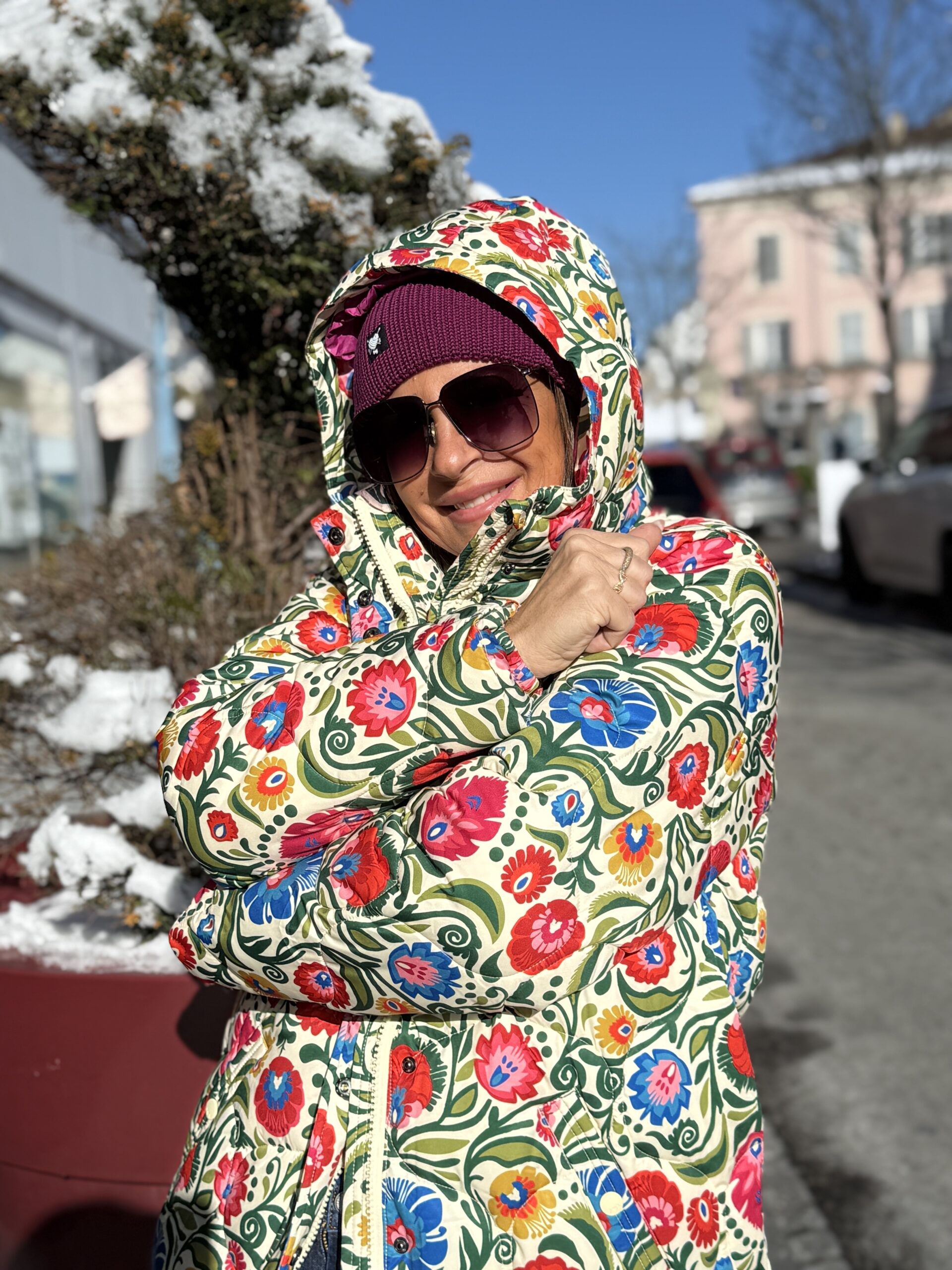 Ose la couleur avec cette doudoune longue à imprimé floral multicolore, véritable rayon de soleil pour l’hiver !