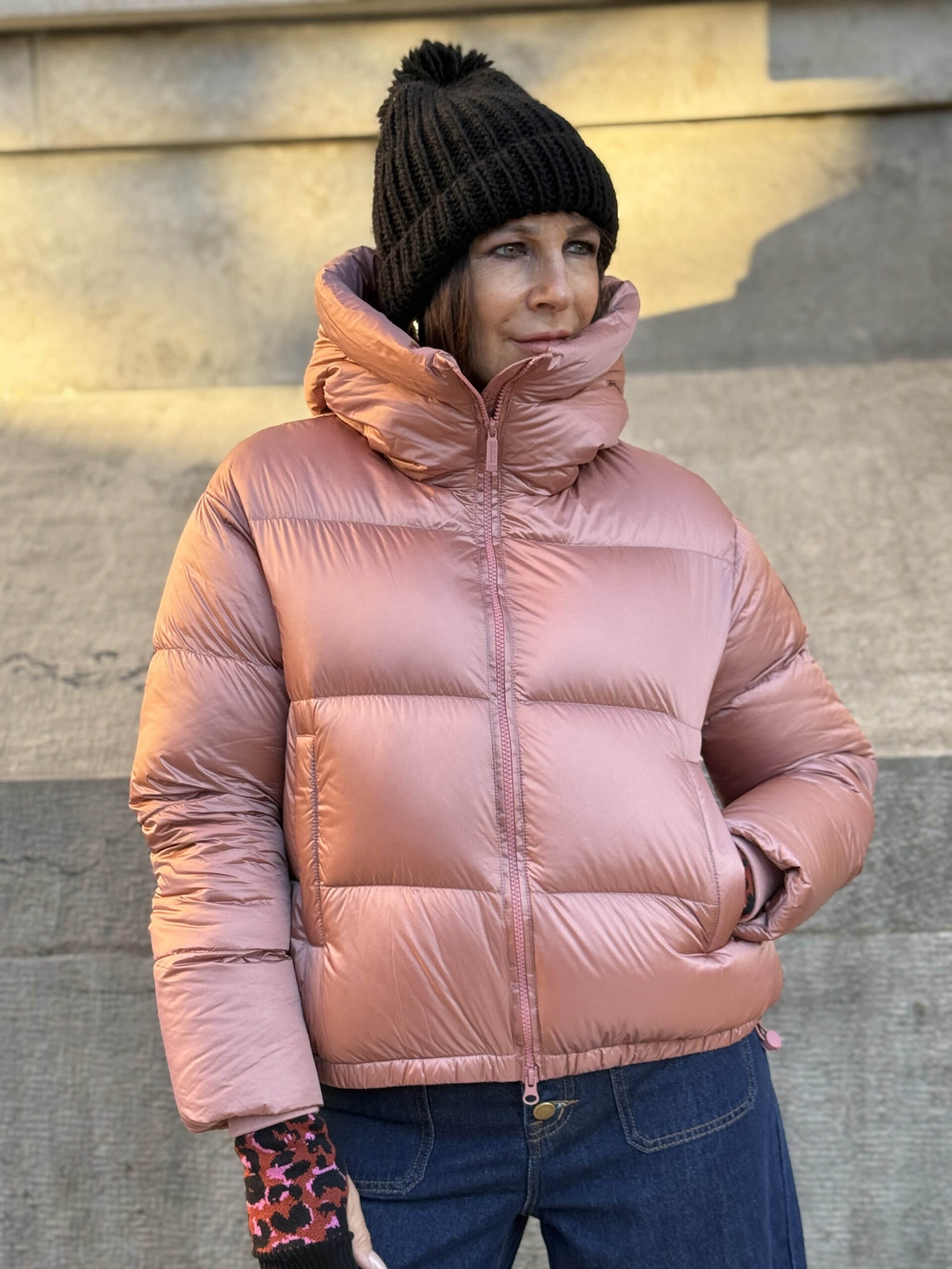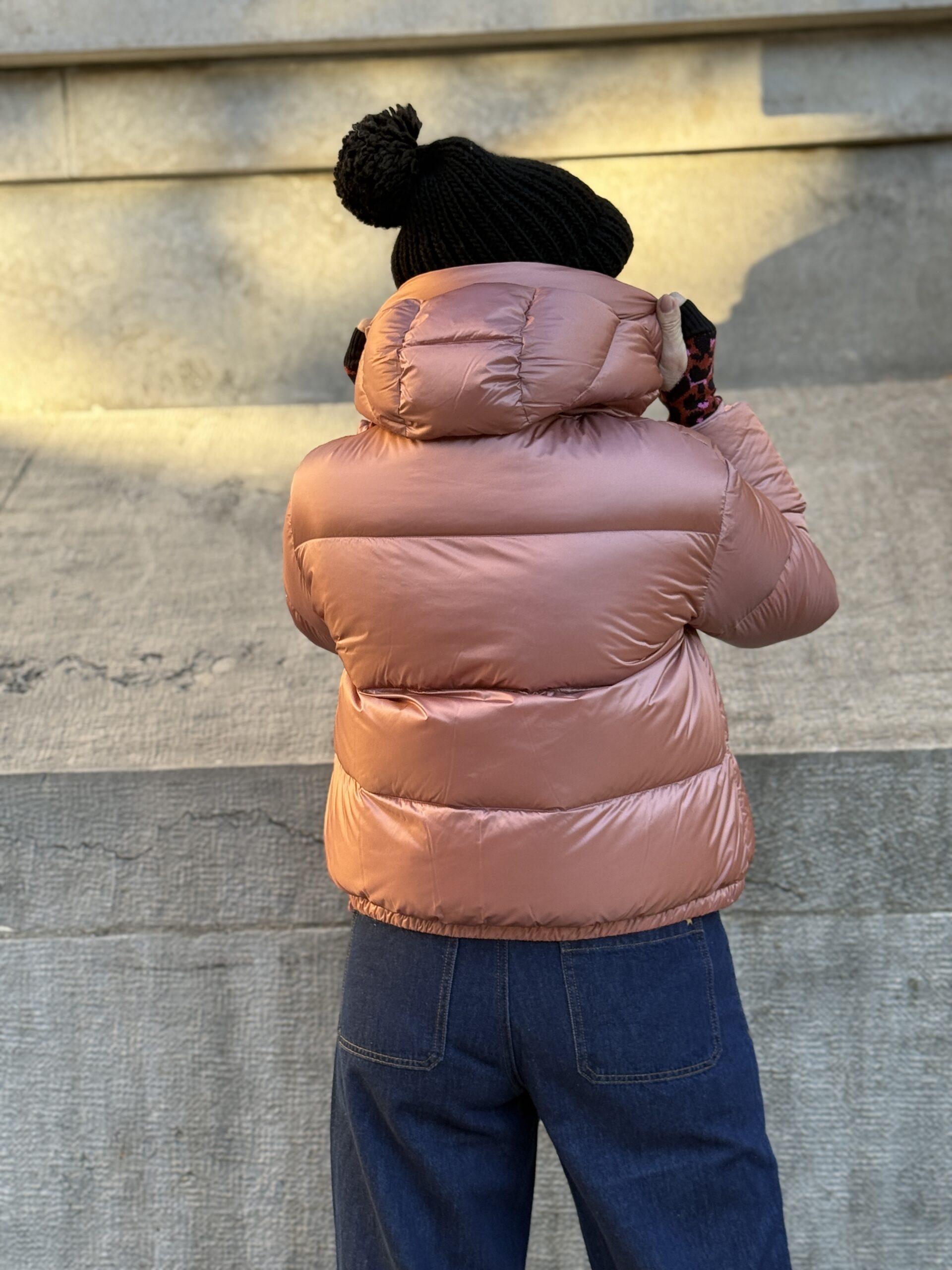 La doudoune rose poudrée, un essentiel doux et féminin pour affronter l’hiver avec style!