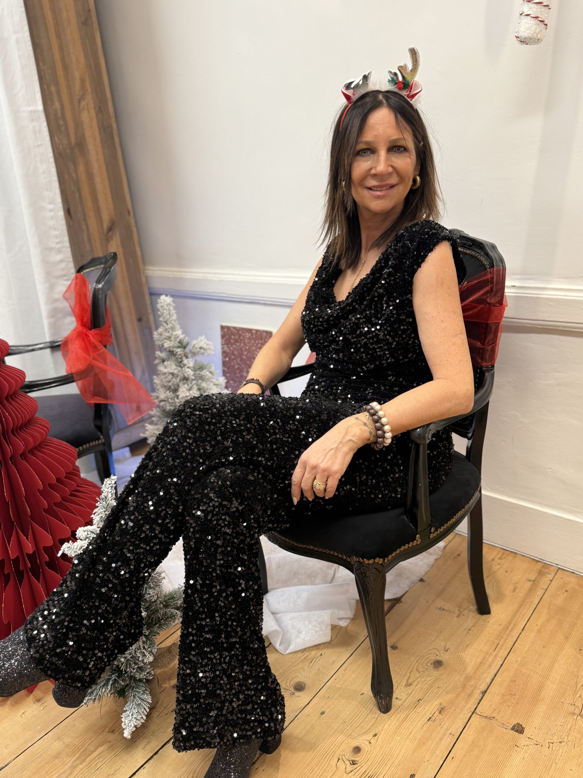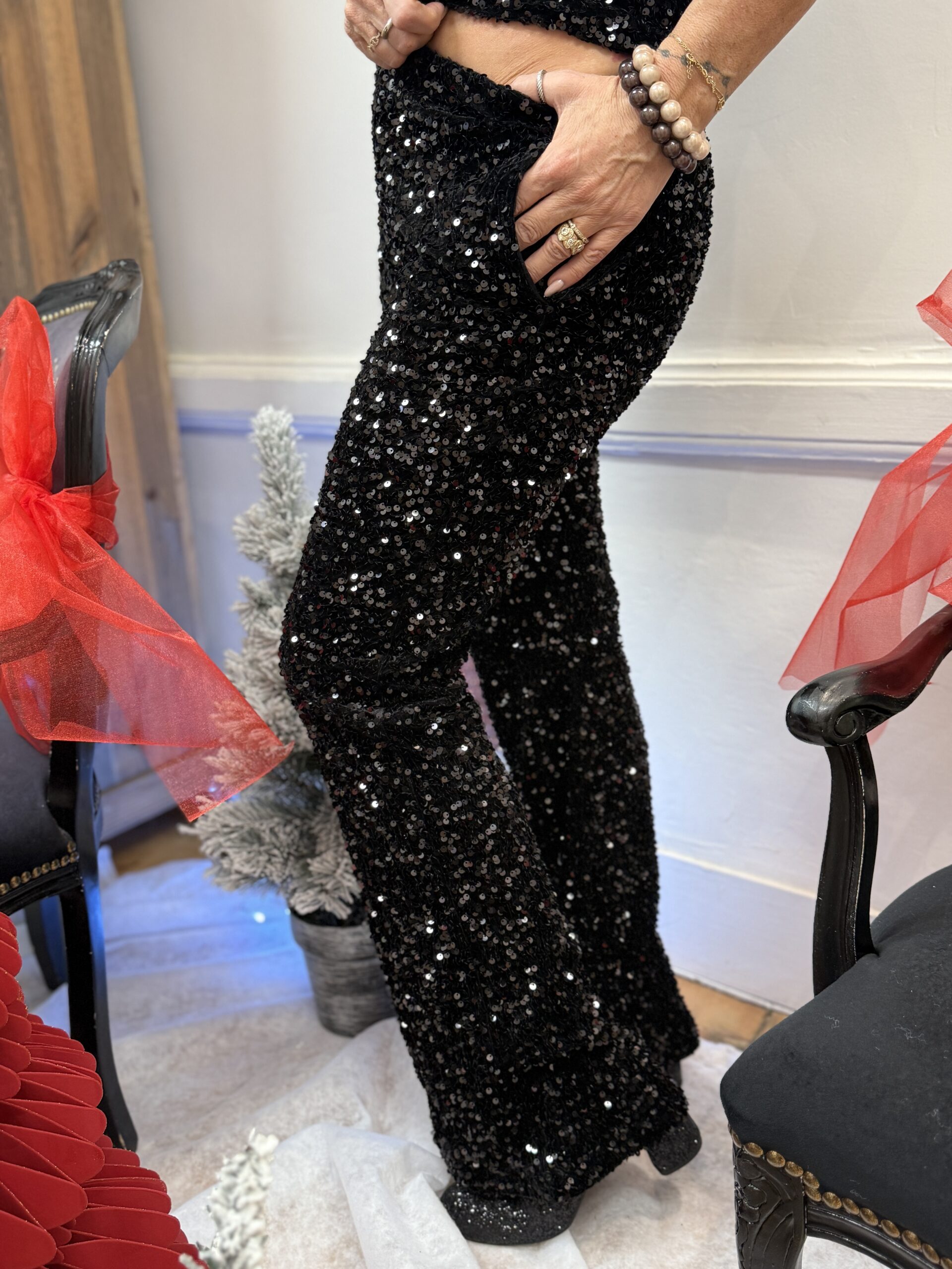 Brillez de mille feux avec ce pantalon à sequins noir, l’incontournable des looks de soirée!