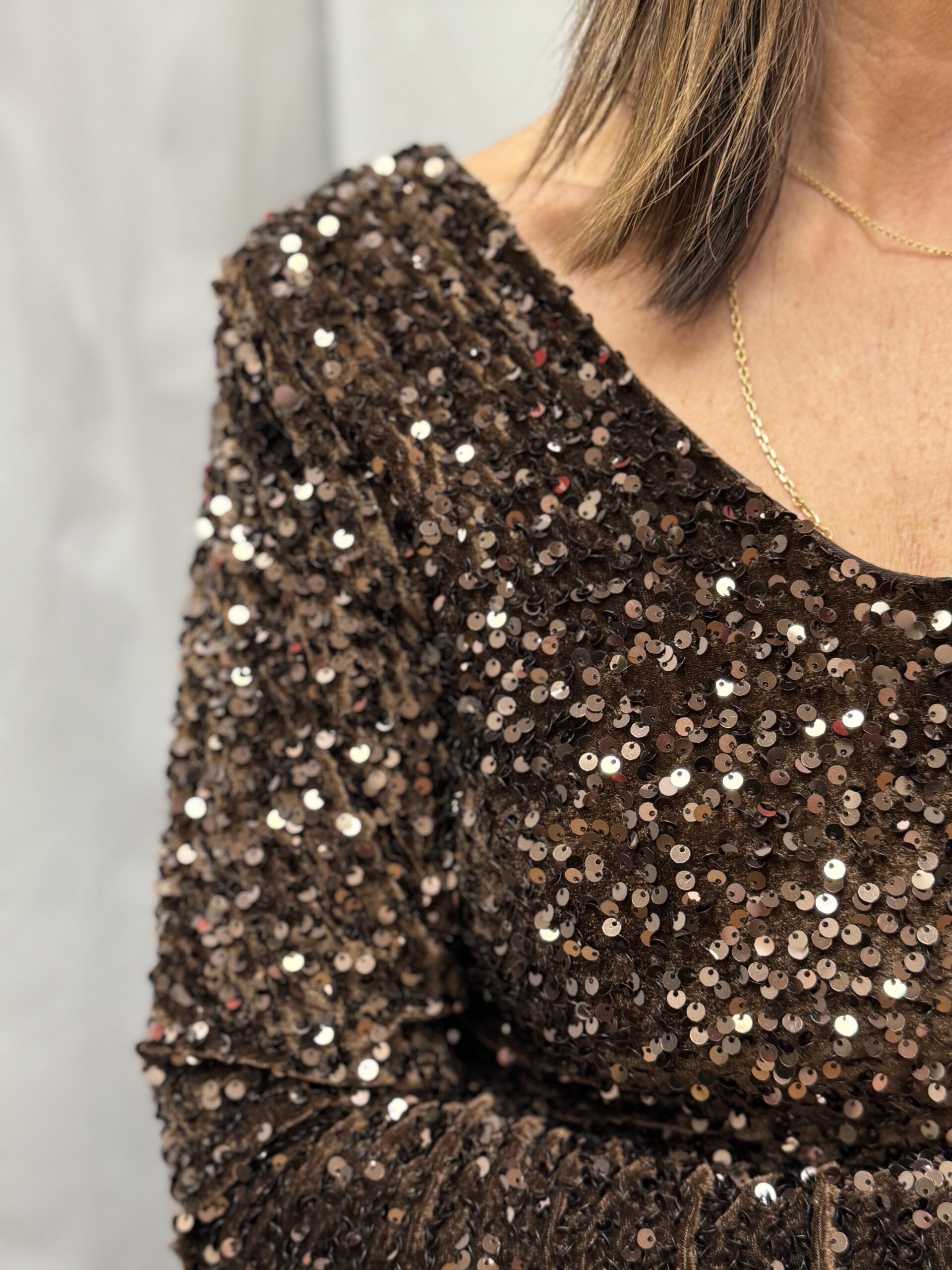 Conseil mode : Associez-la à une paire d’escarpins noirs ou doré avec une pochette métallisée!