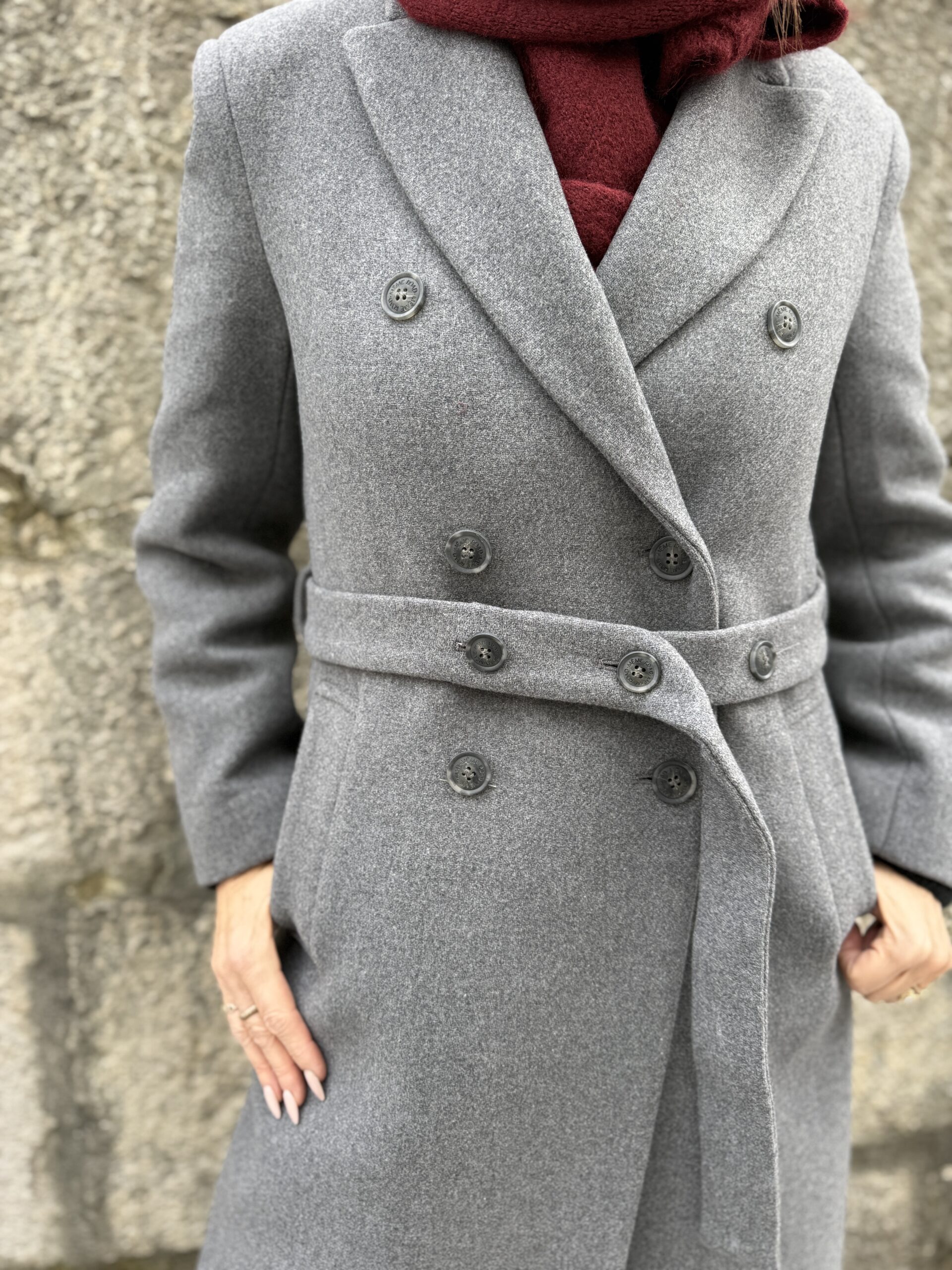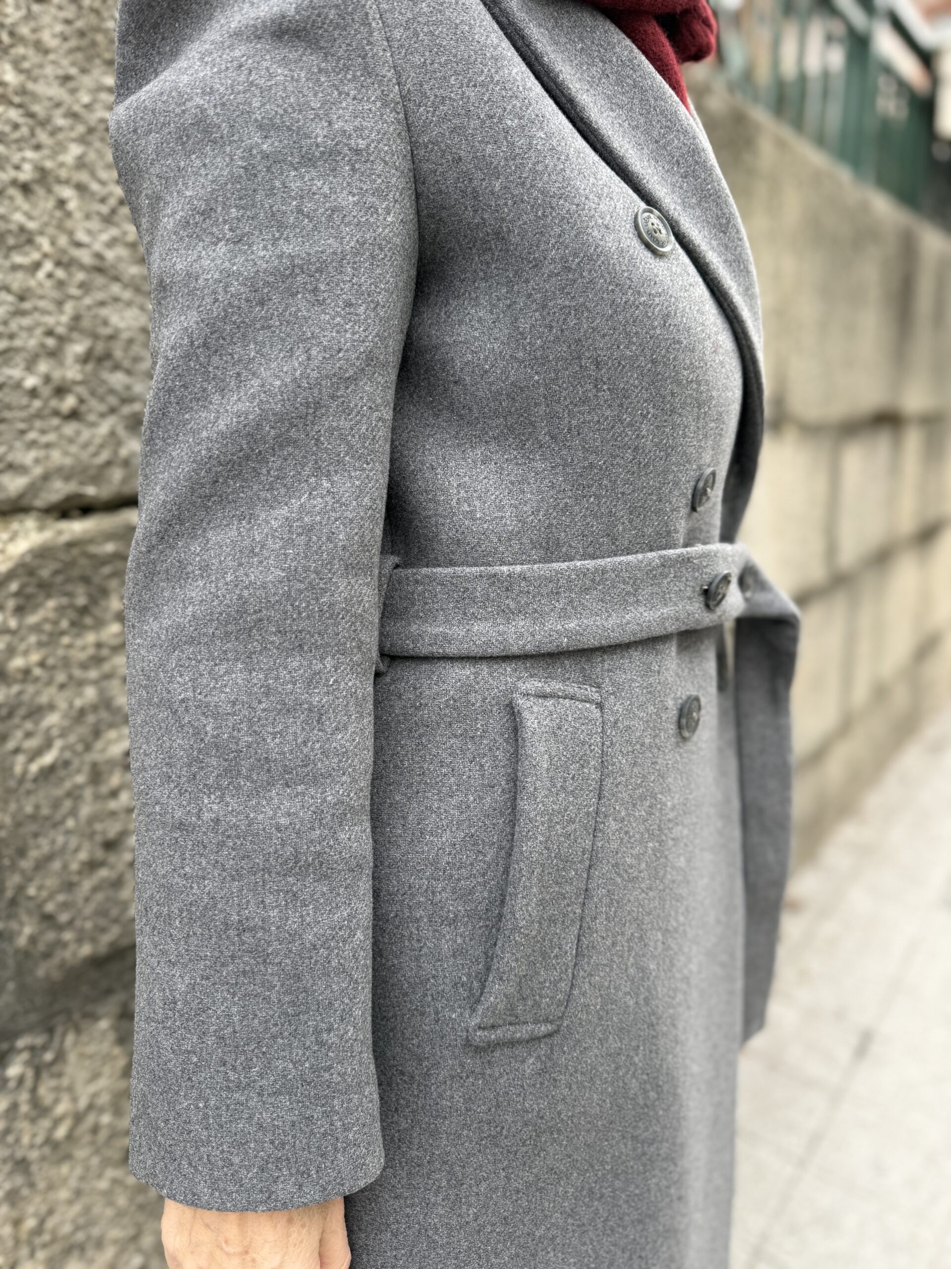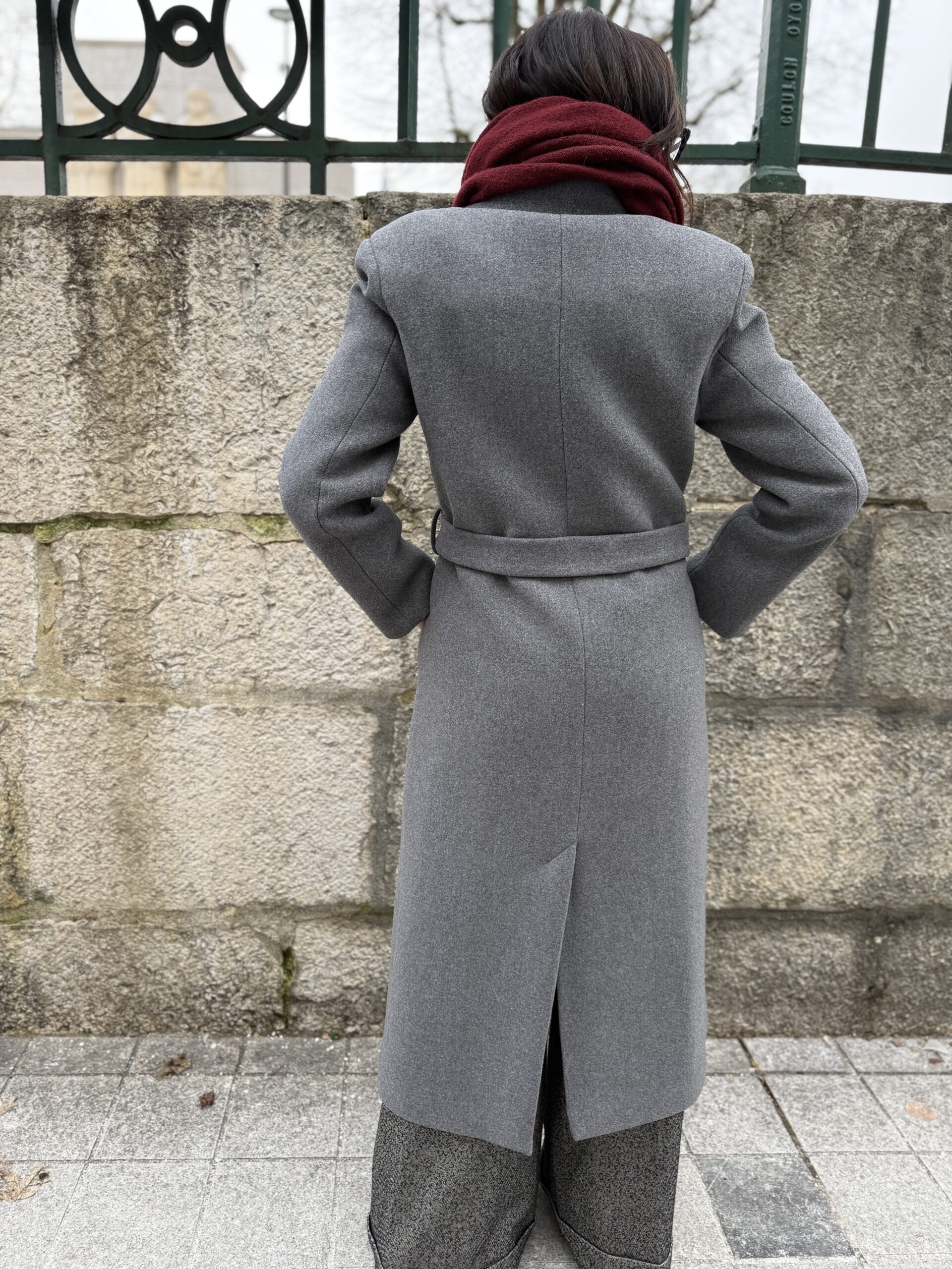 Ce manteau long ceinturé au style tailoring, sublimé par une ceinture ton sur qui marque délicatement la taille!