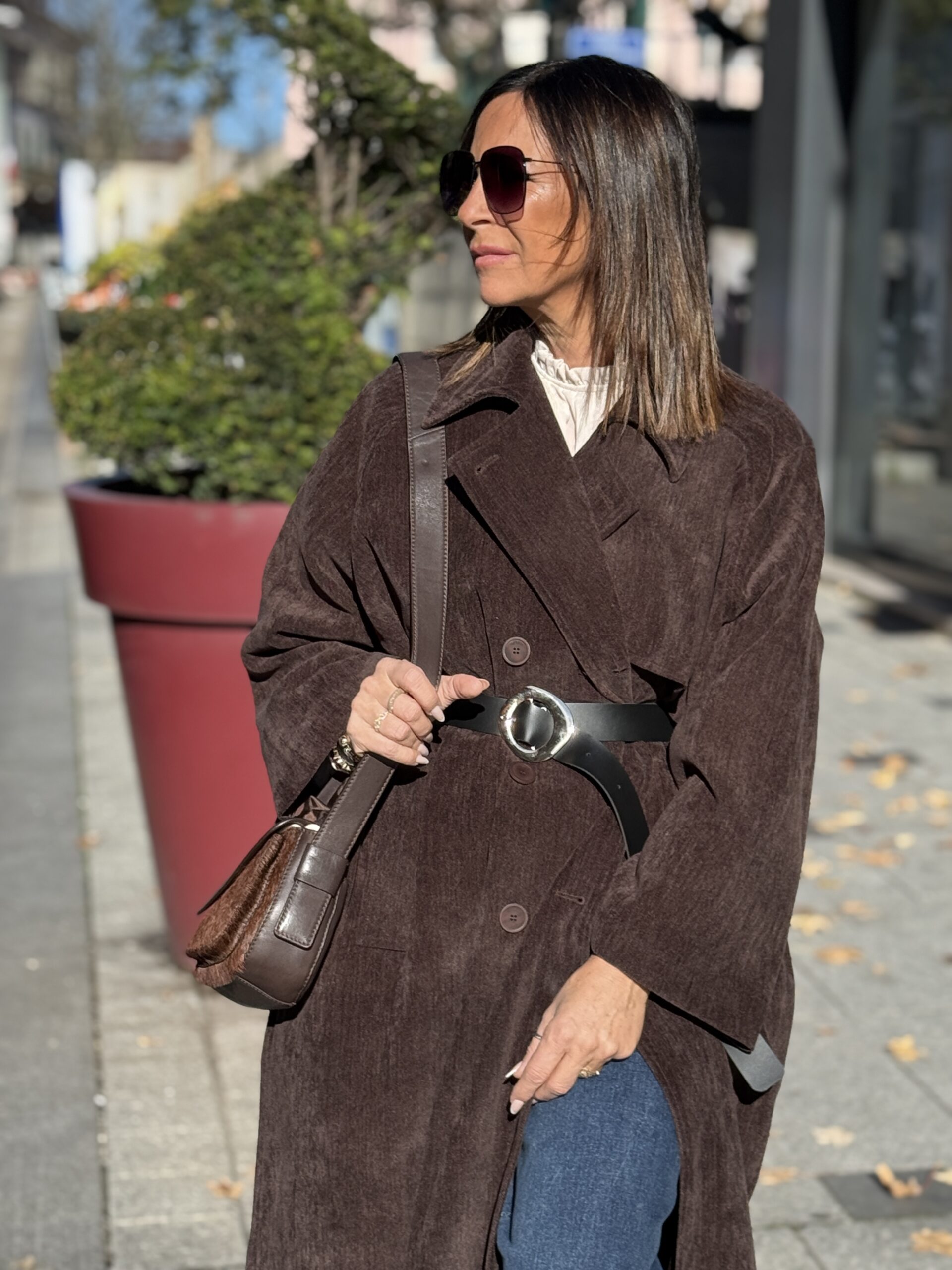 Conseil mode de Nathalie : Portez-le ceinturé sur une robe fluide ou ouvert sur un ensemble tailoring pour une allure chic et affirmé.