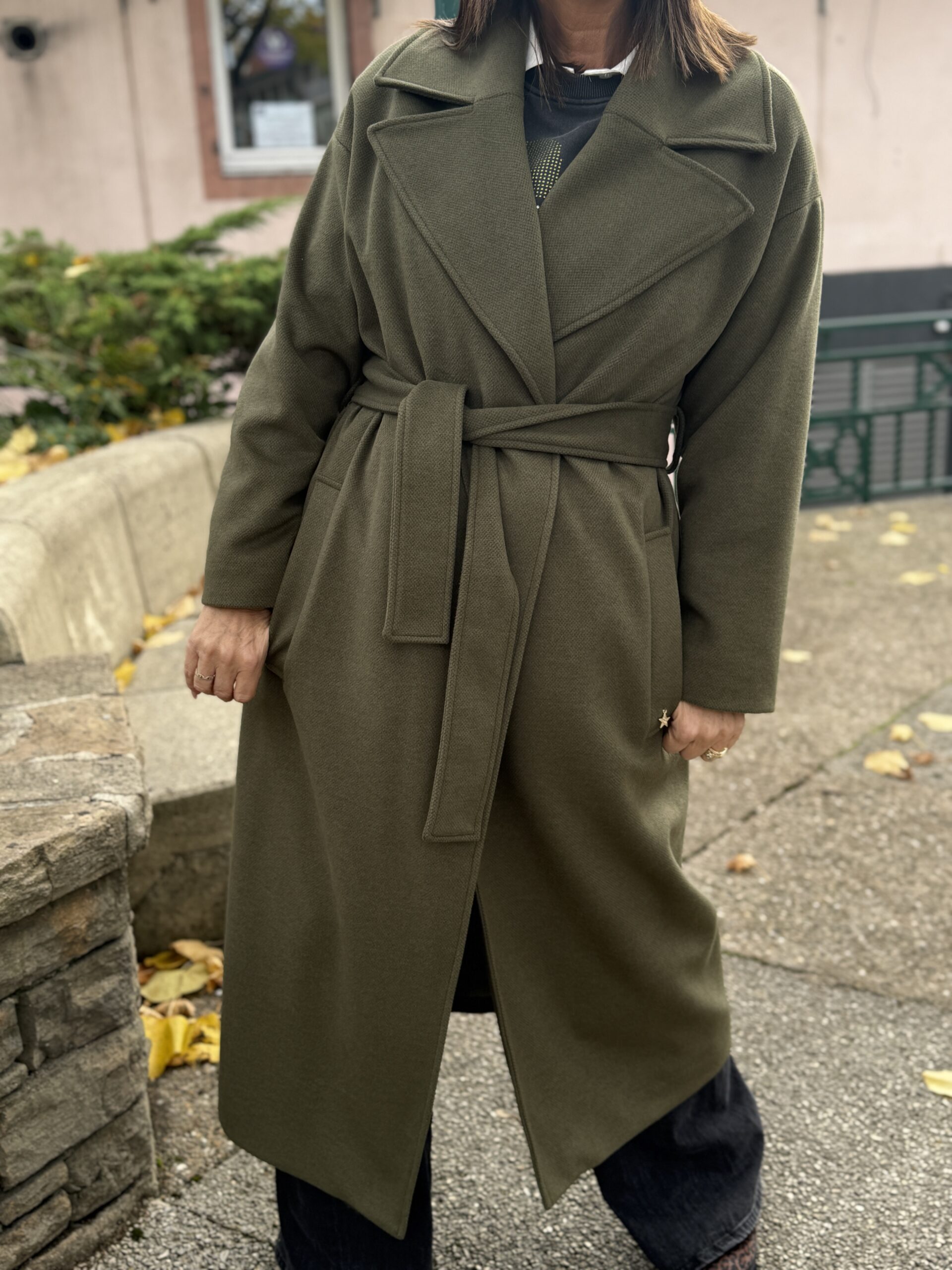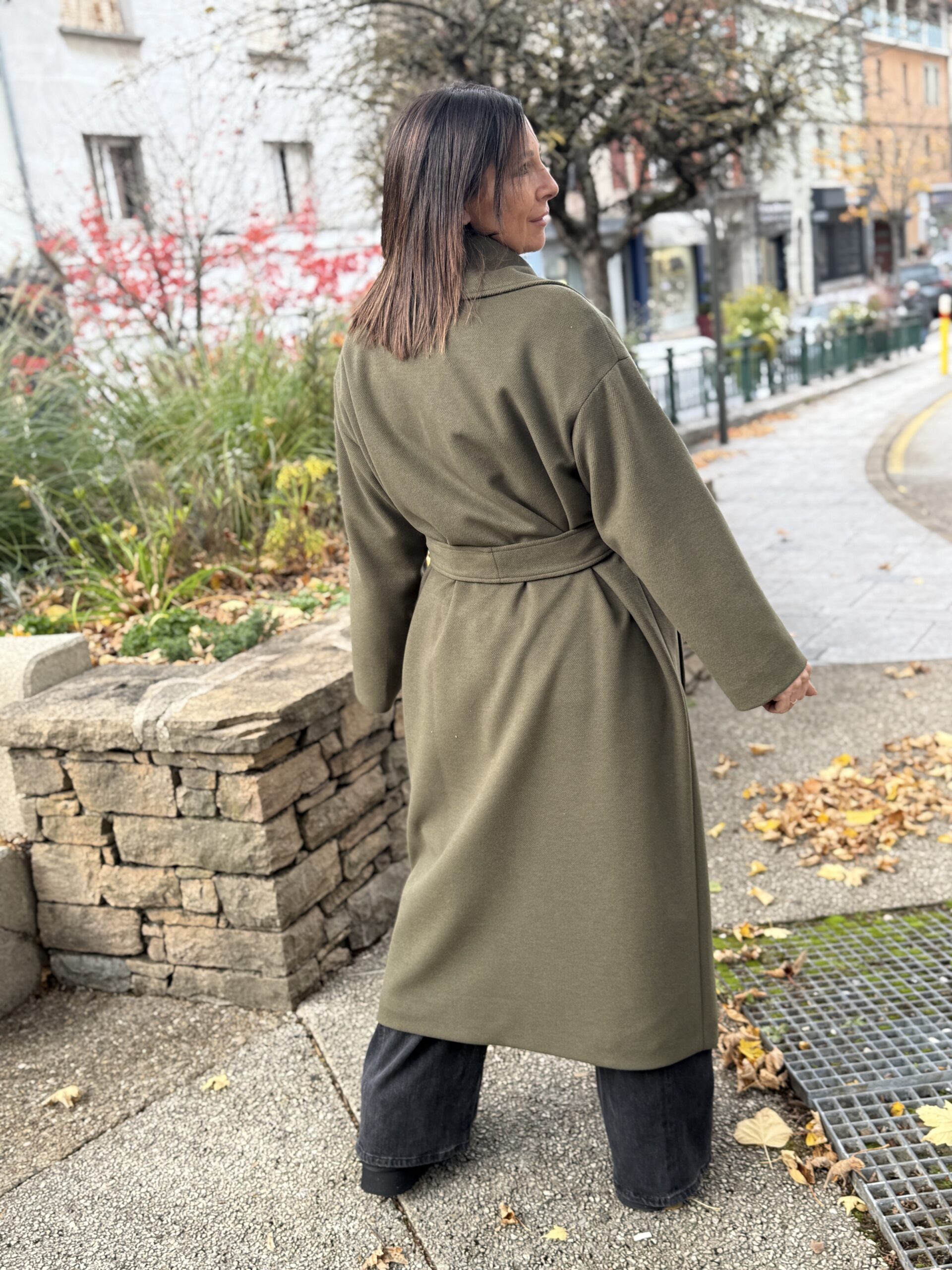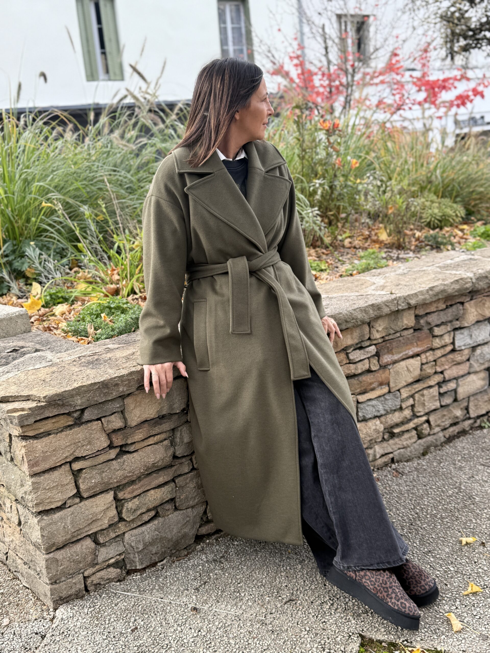 Ce manteau long oversize kaki apporte une touche de chic effortless à toutes vos tenues !