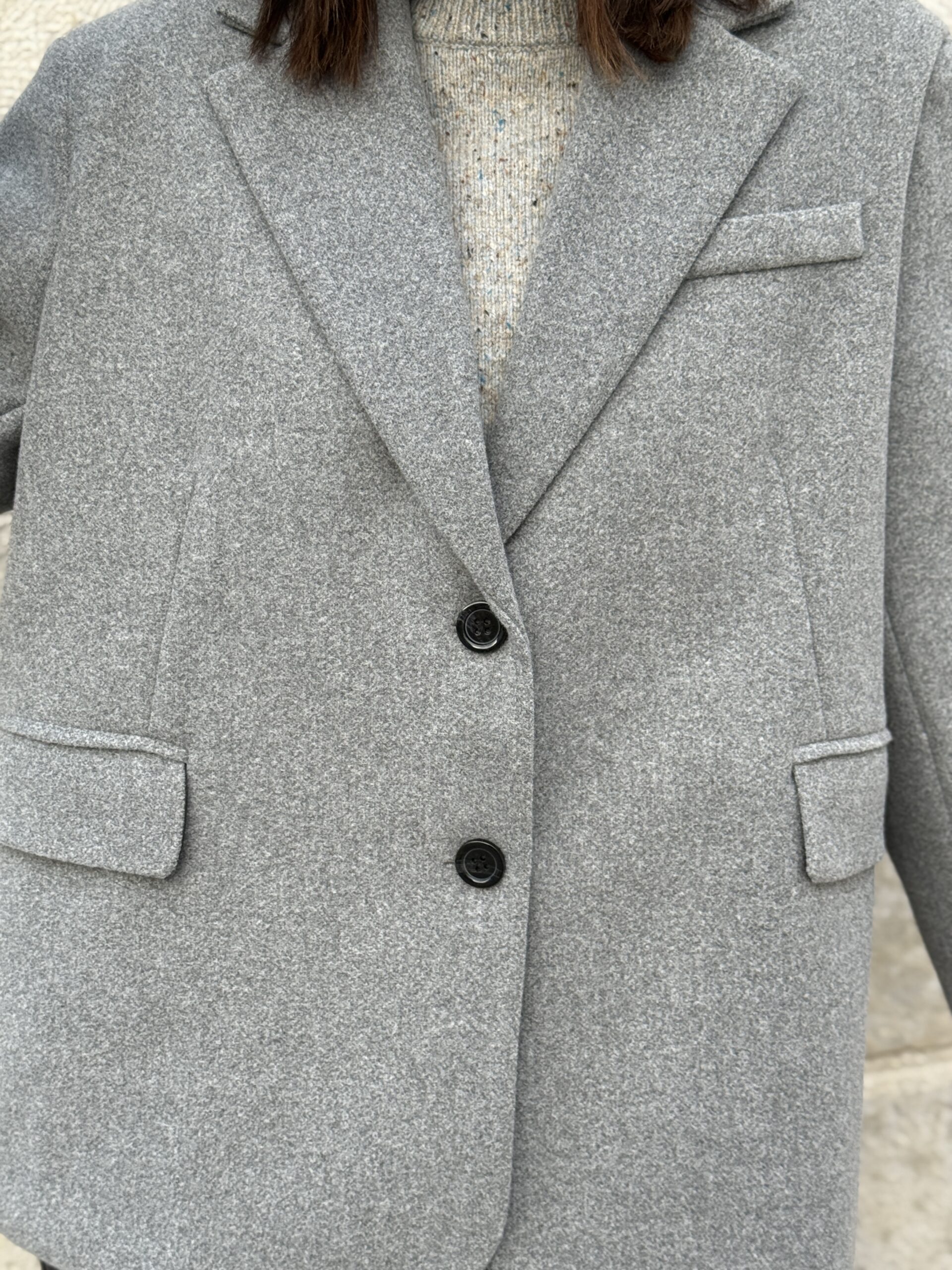 Modernité et sobriété se rencontrent dans ce manteau oversize gris chiné, une pièce incontournable pour un style élégant et facile à porter!