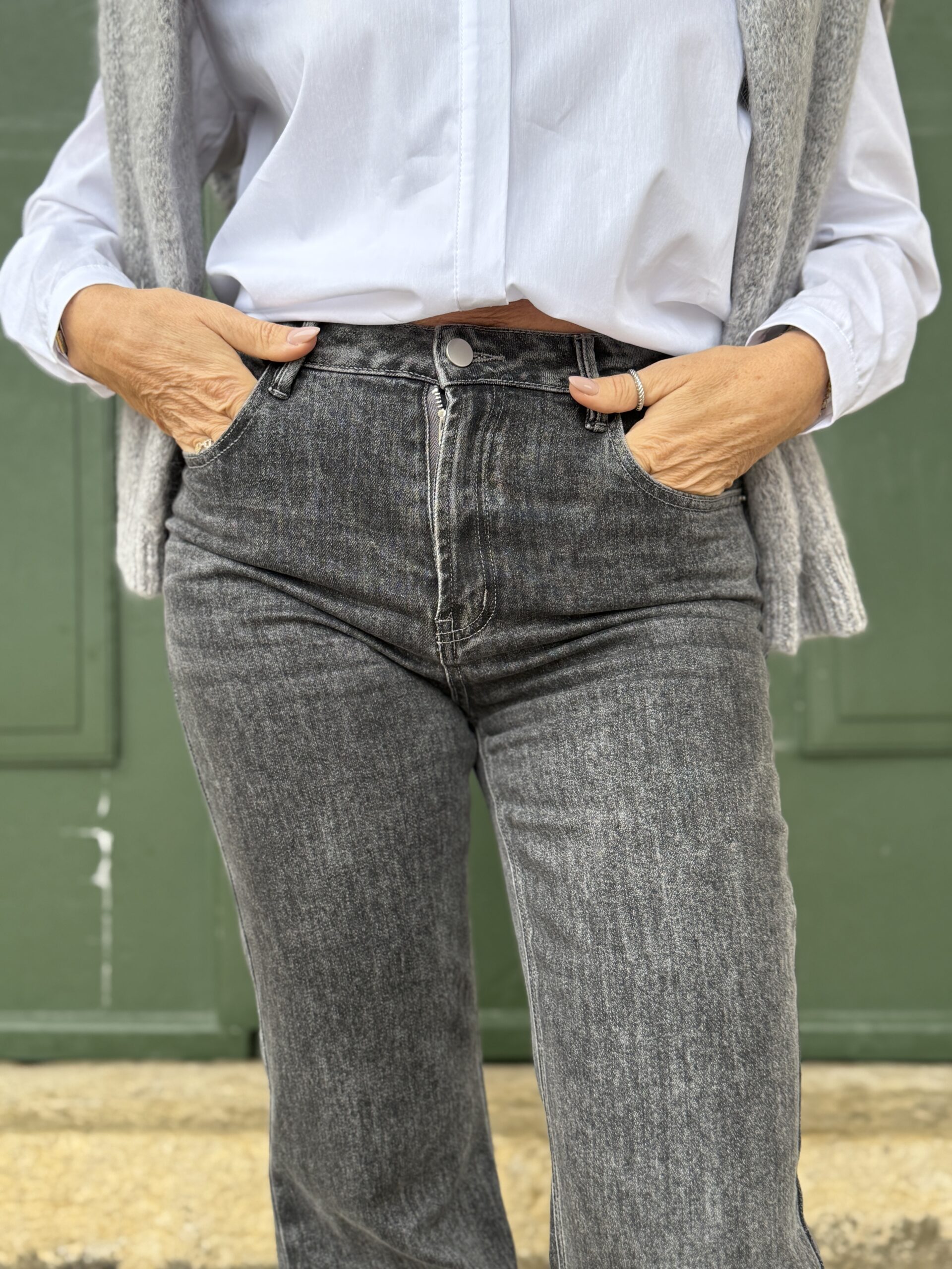 Ce jean bootcut gris délavé, au style à la fois chic et décontracté ! Son style : intemportel et élégant. Une coupe flatteuse qui allonge la silhouette !