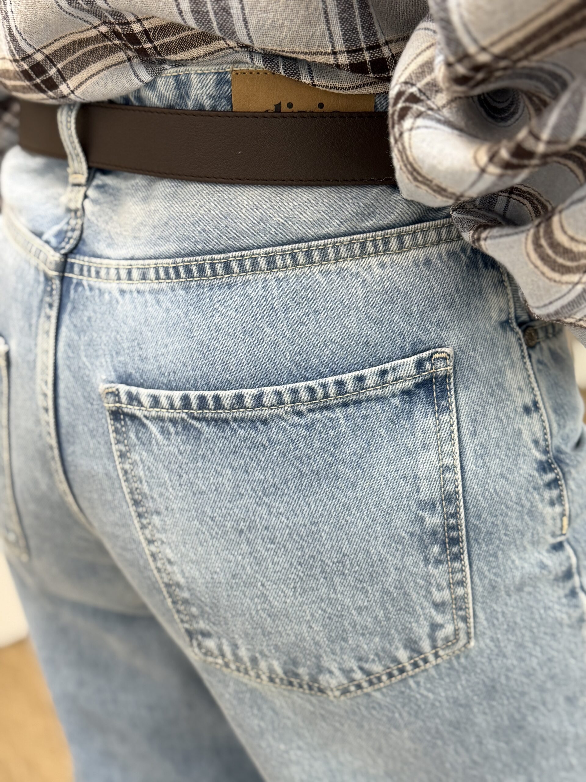 Jean en denim bleu clair à l’allure casual, doté d’une coupe droite confortable et d’une jambe légèrement raccourcie pour une silhouette moderne