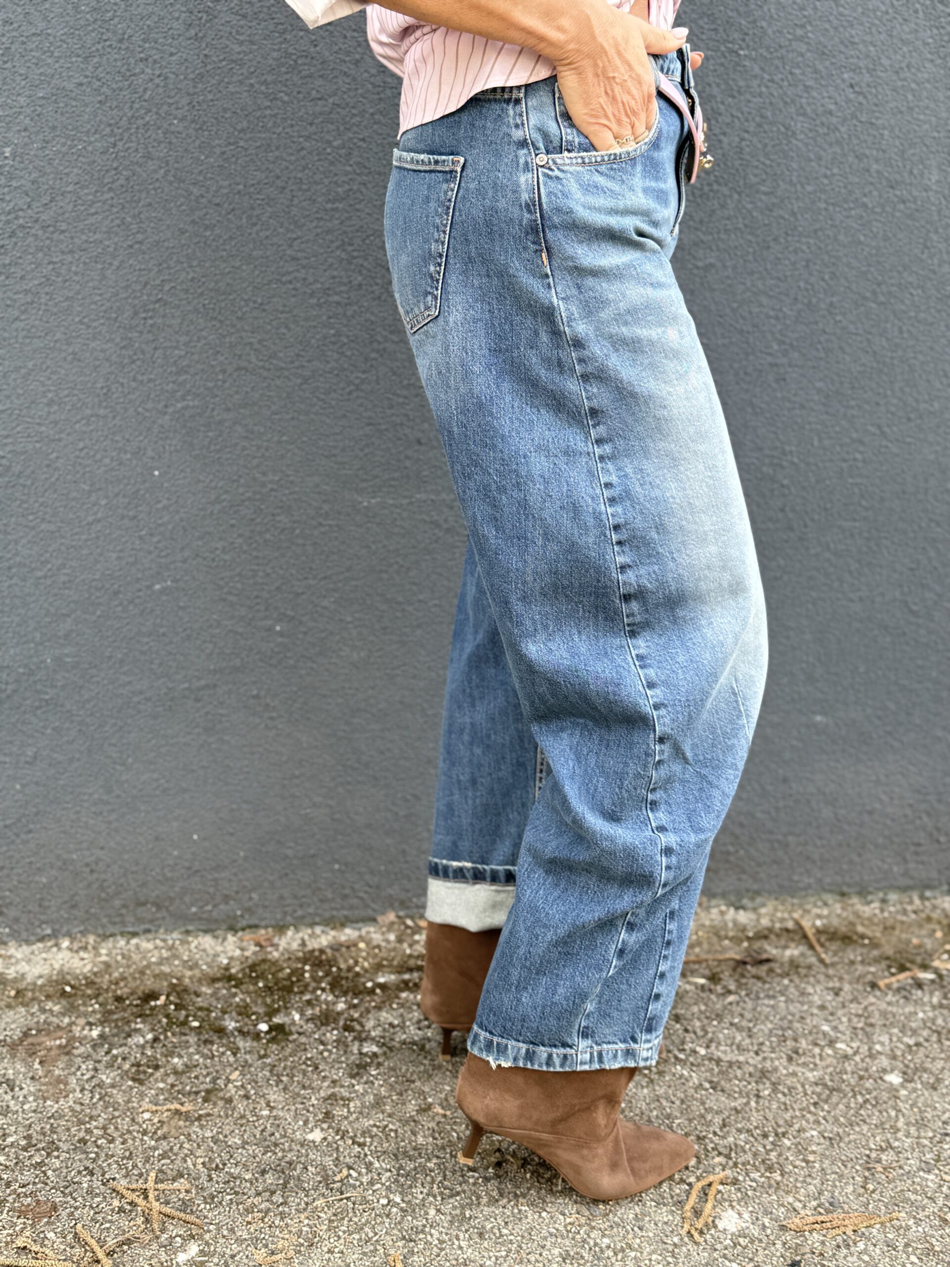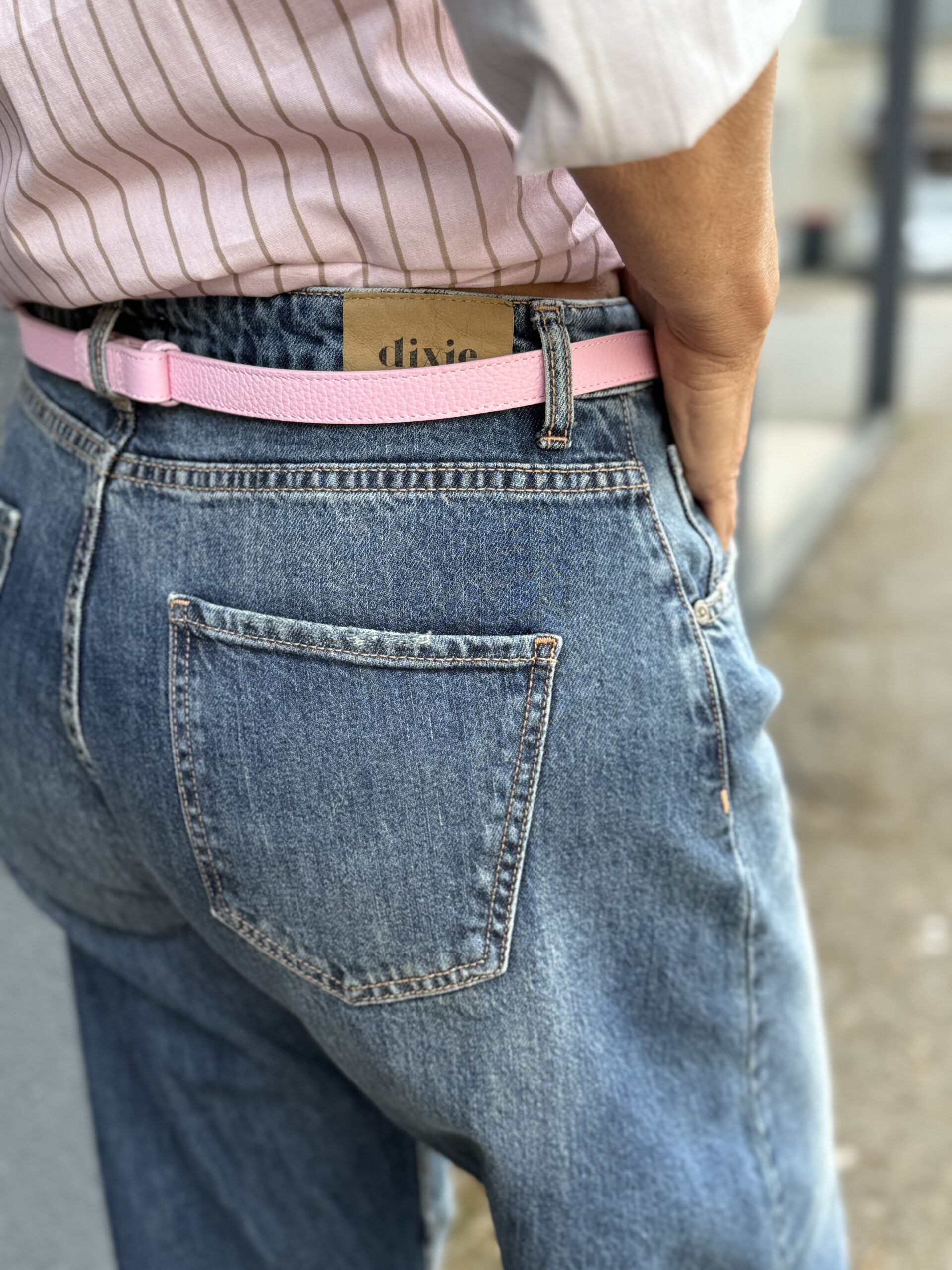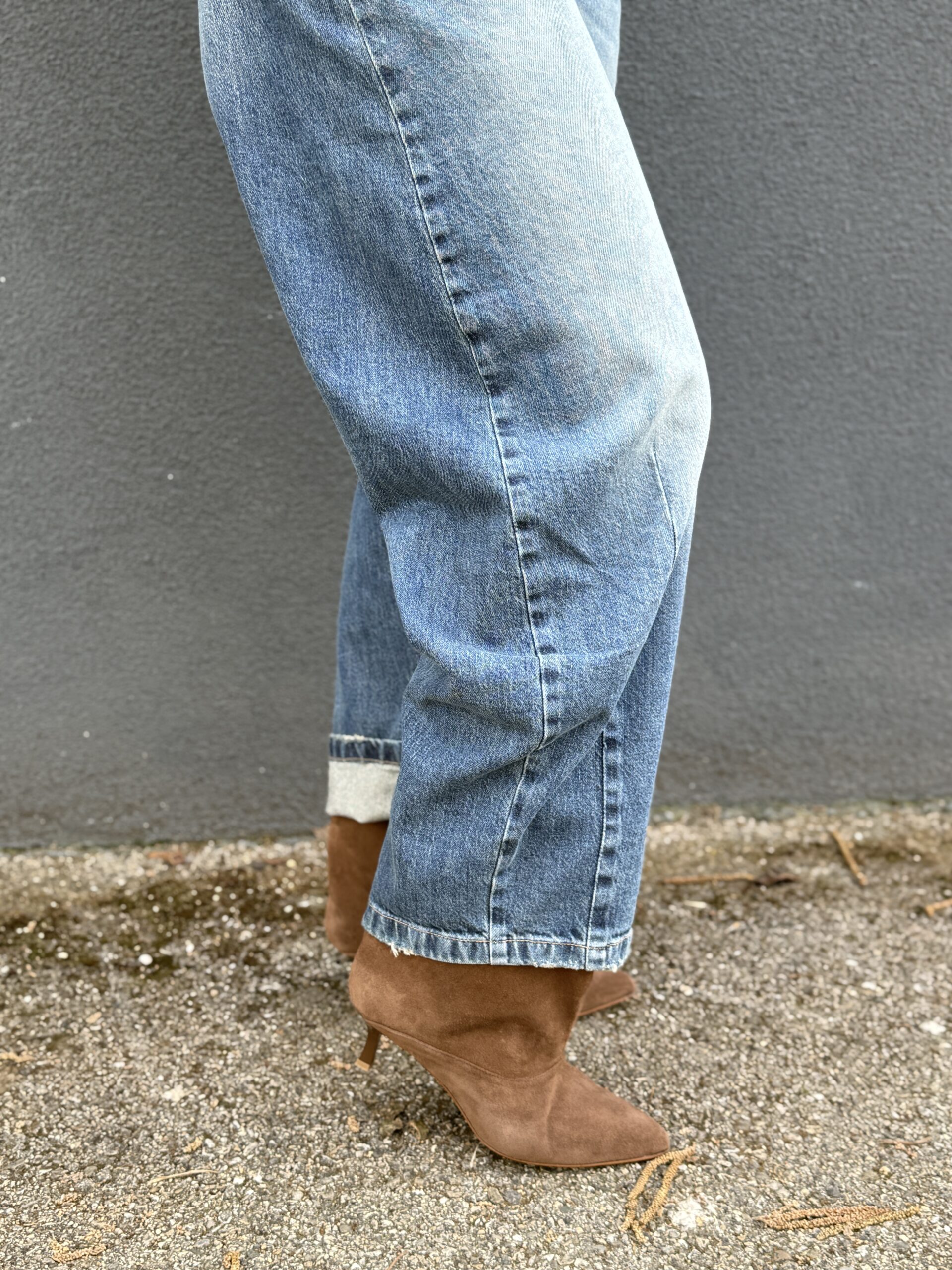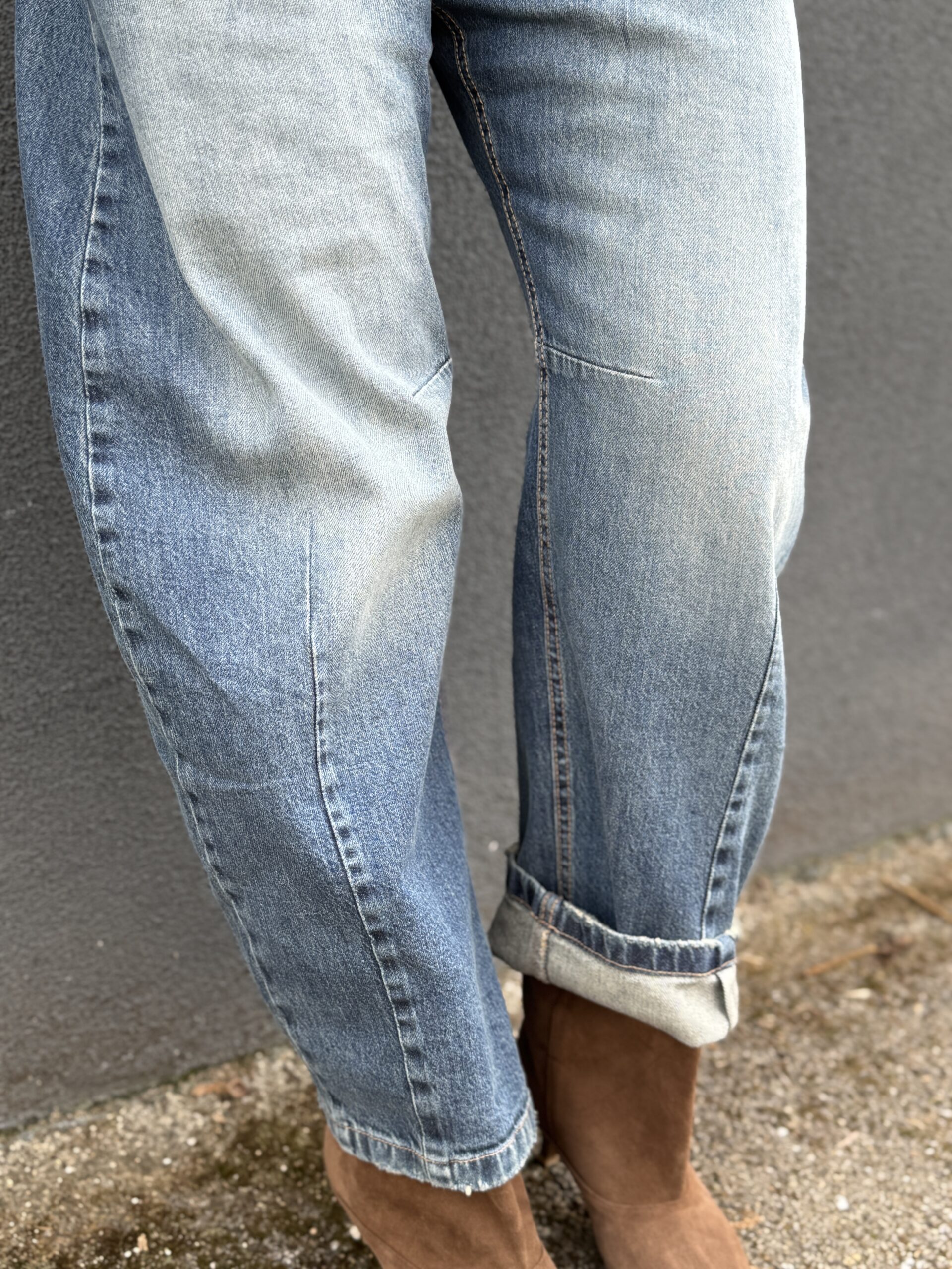Jean en denim bleu à l’allure casual, coupe droite confortable et délavage subtil pour un style facile à porter au quotidien.