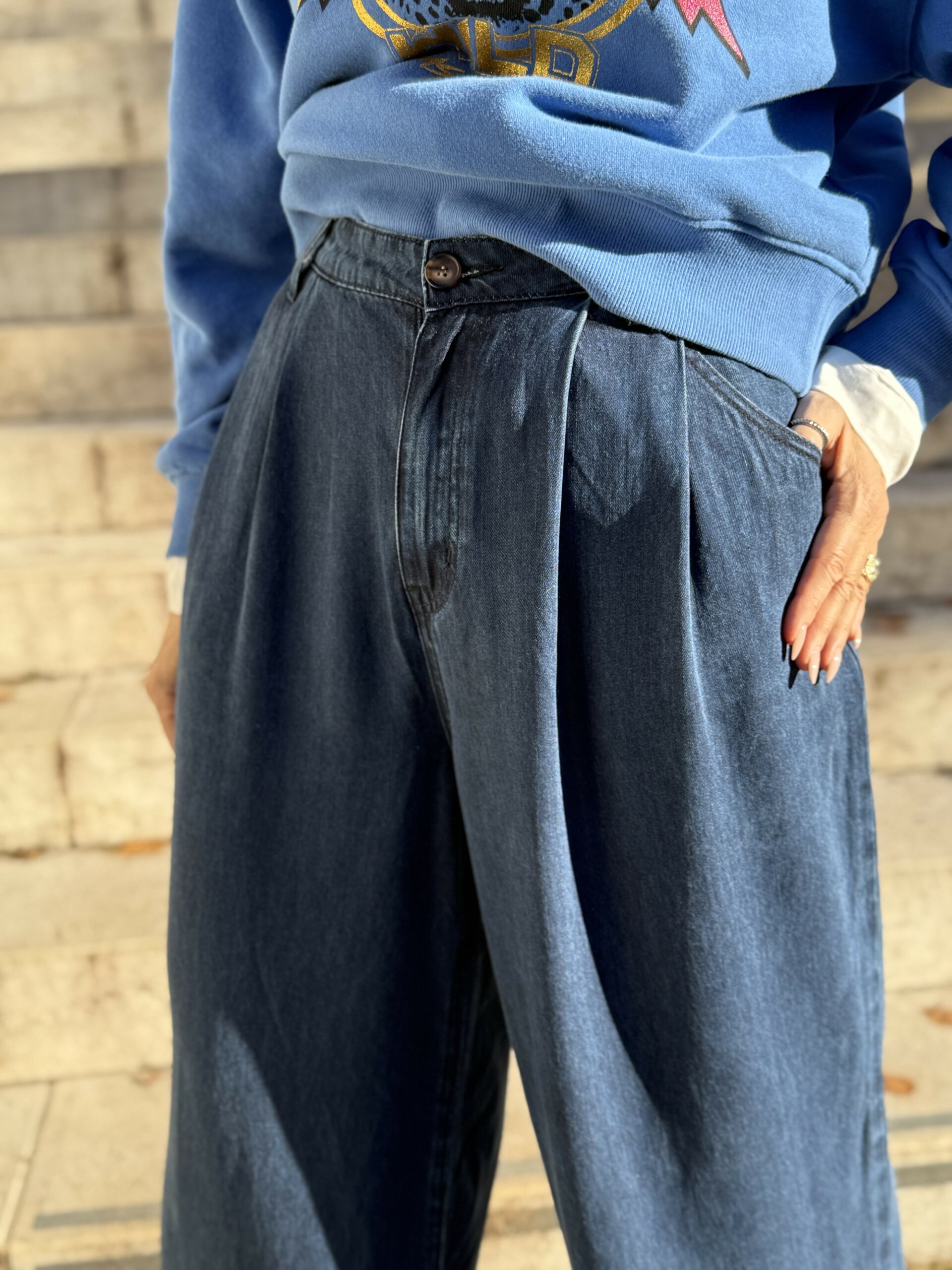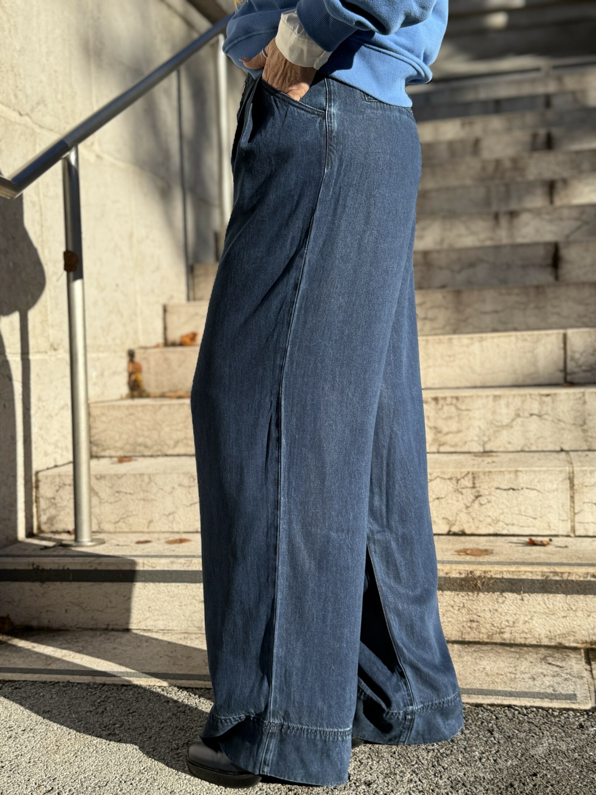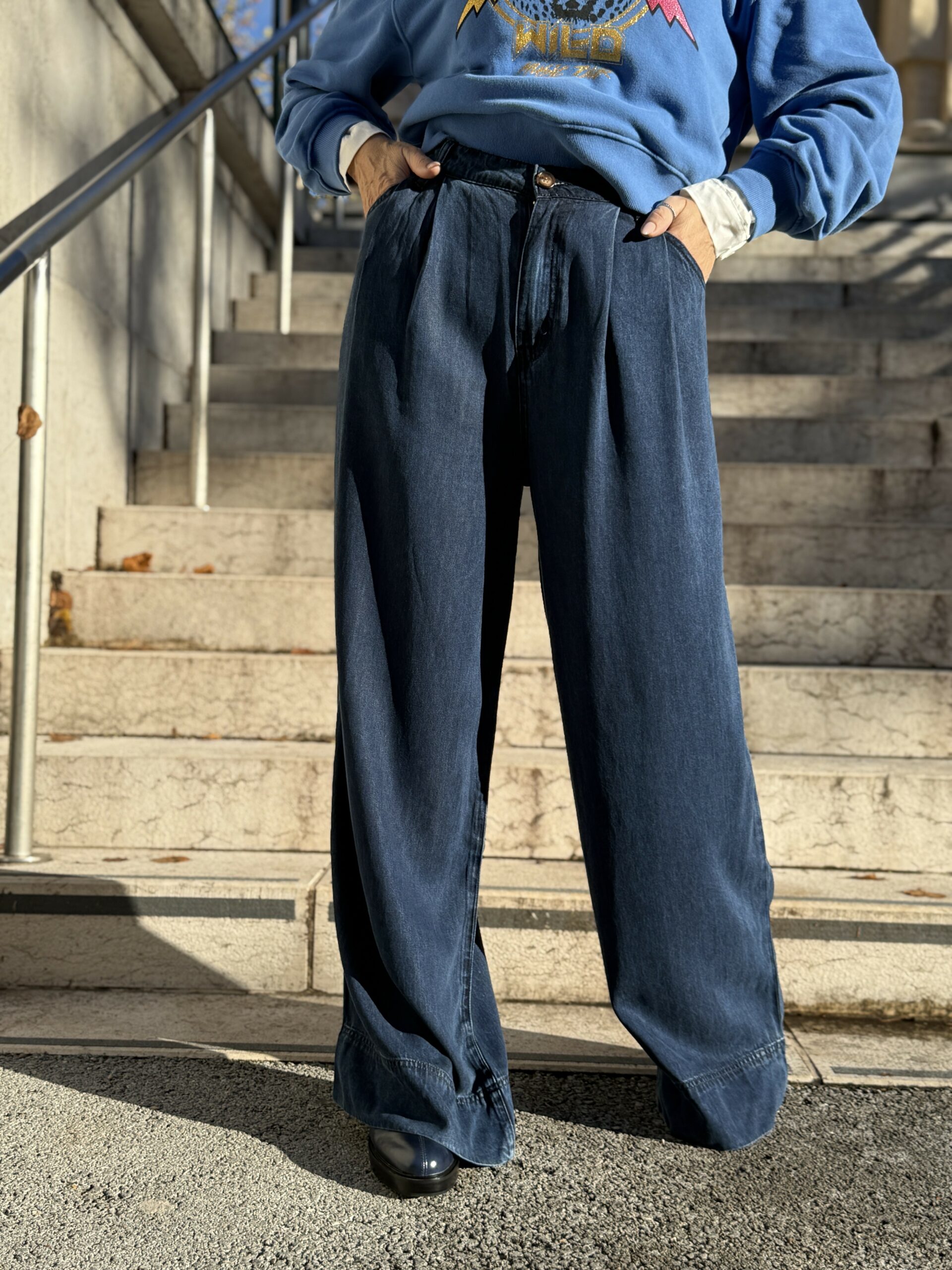 Adoptez un look à la fois chic et décontracté avec ce pantalon fluide en denim!