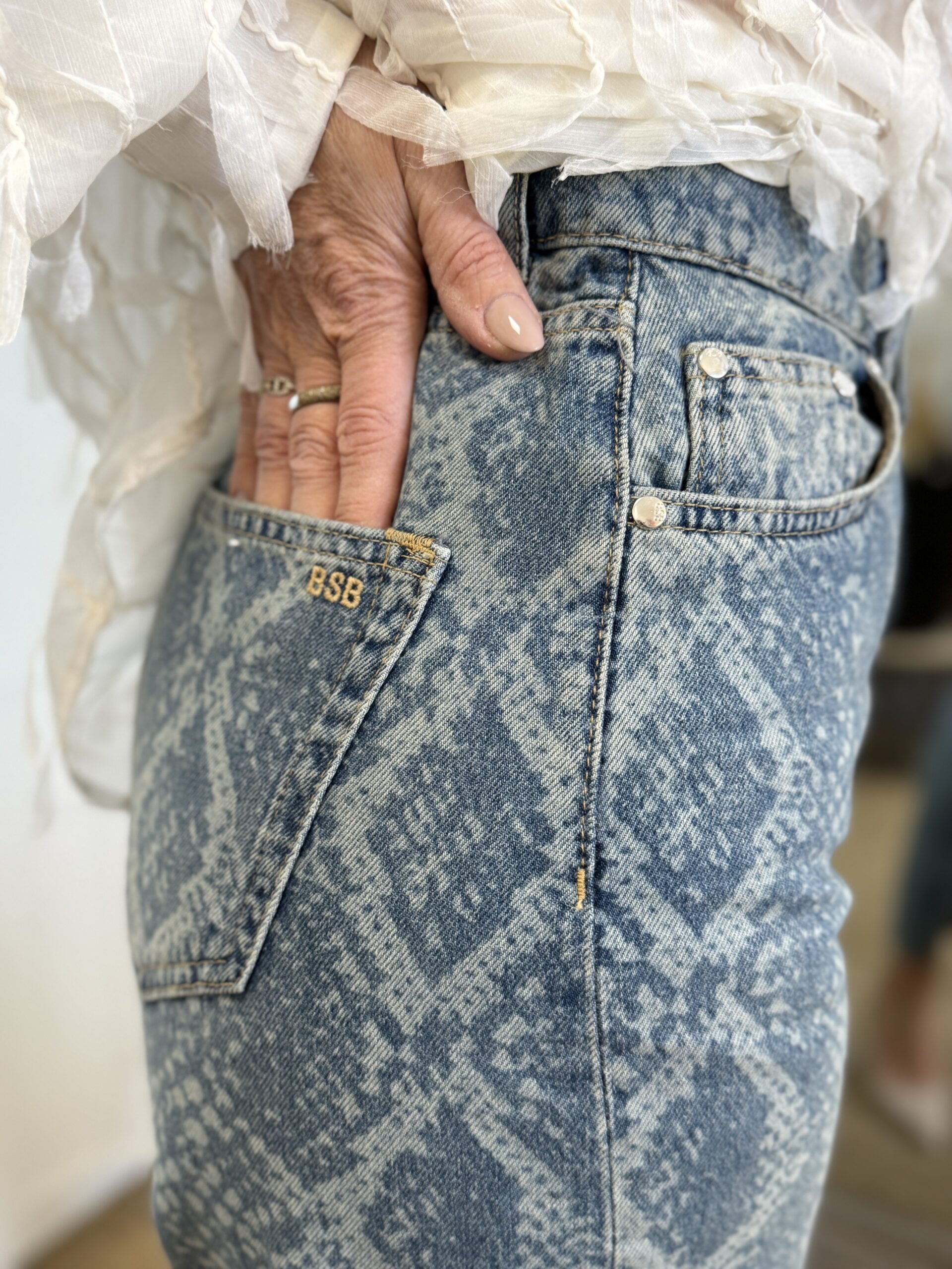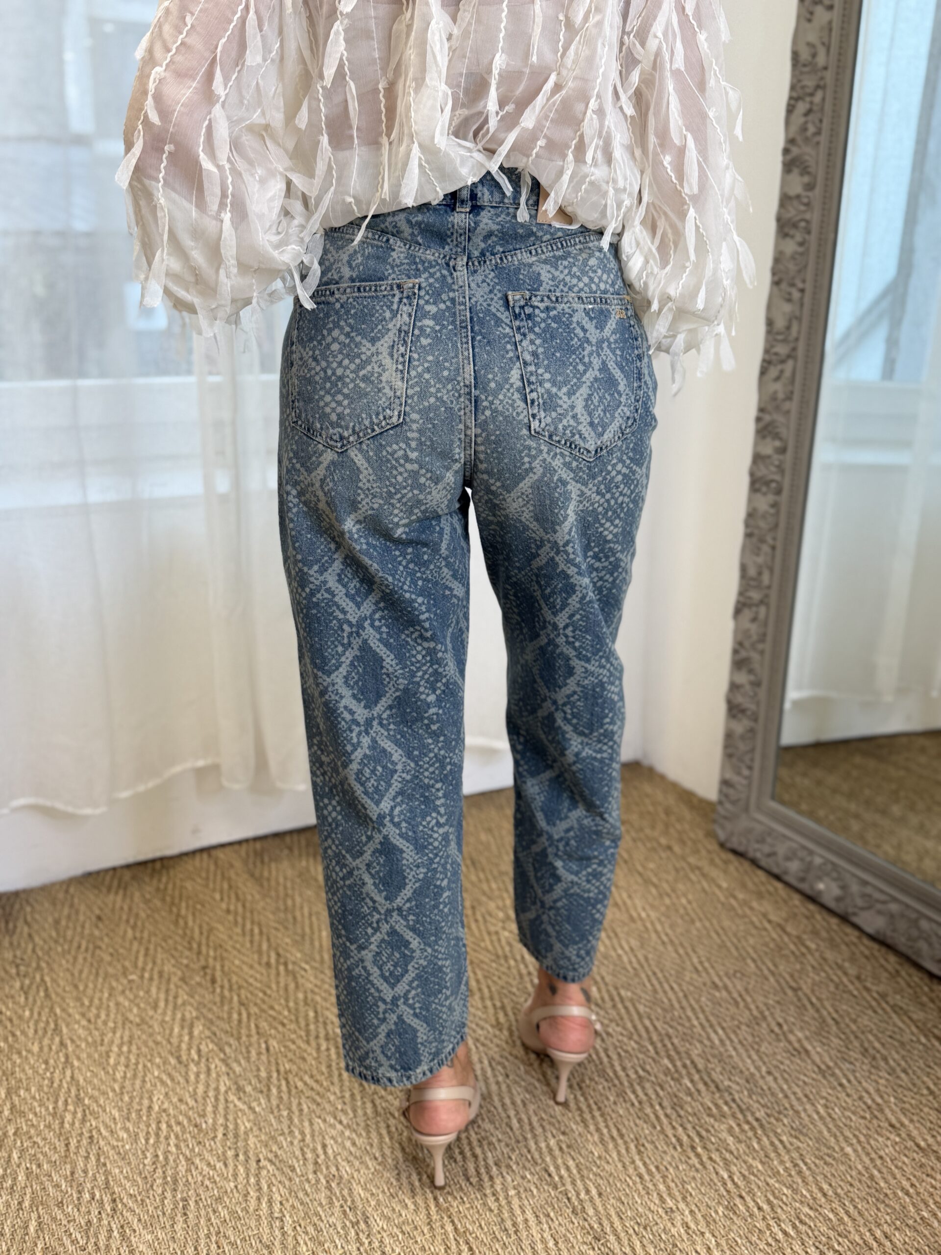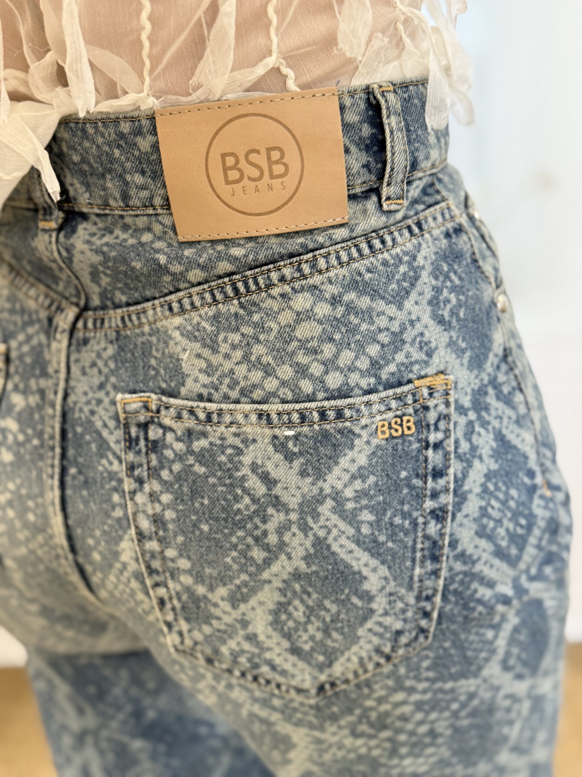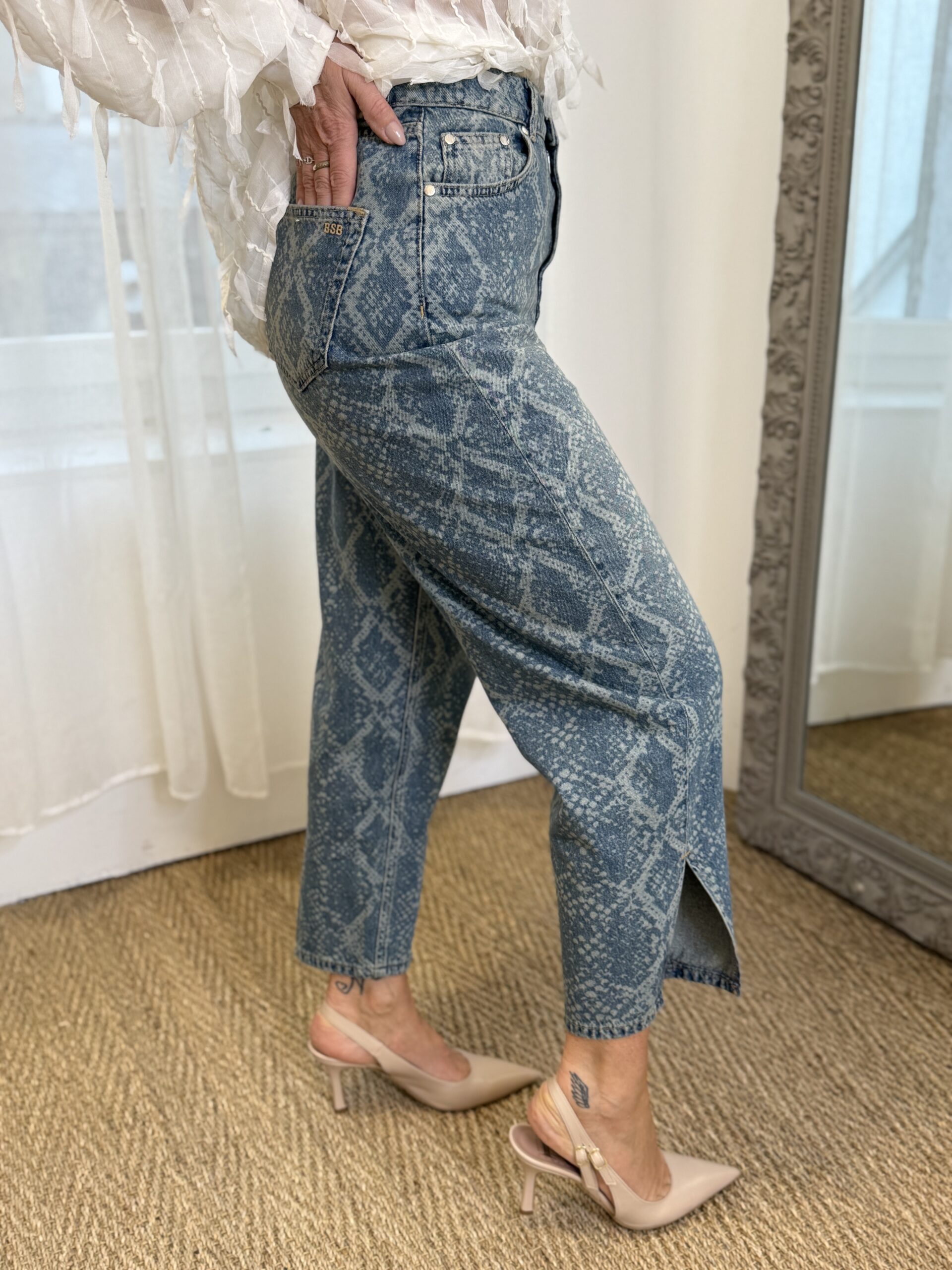 Un denim audacieux qui twiste les basiques avec une touche moderne affirmée. Ce jean se démarque par son imprimé effet python délavé, original et tendance, qui apporte du caractère à n’importe quelle tenue. Ça coupe ballon légèrement ample offre un volume moderne tout en restant confortable.