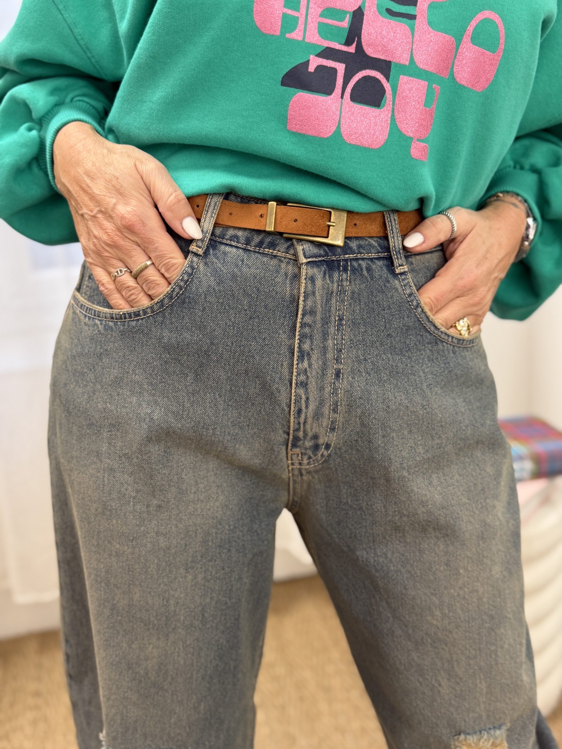 Conseil mode de Nathalie : À porter avec une chemise rentrée ou un t-shirt blanc pour équilibrer la silhouette.