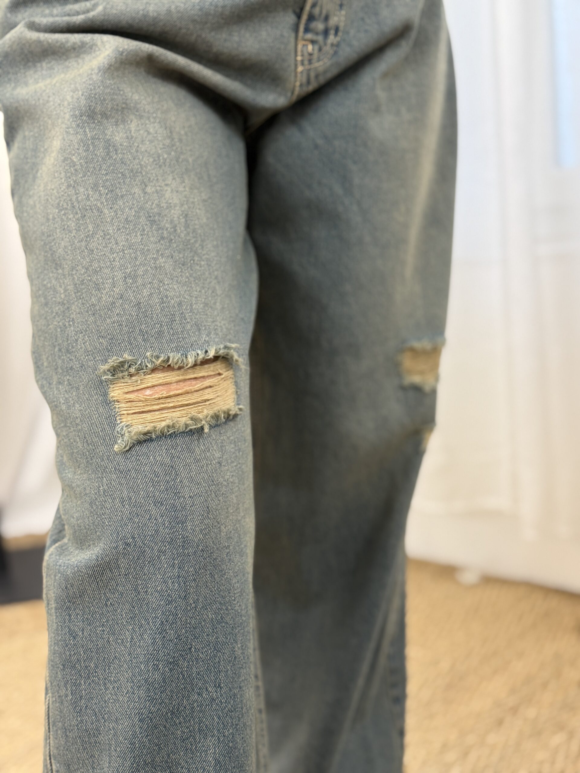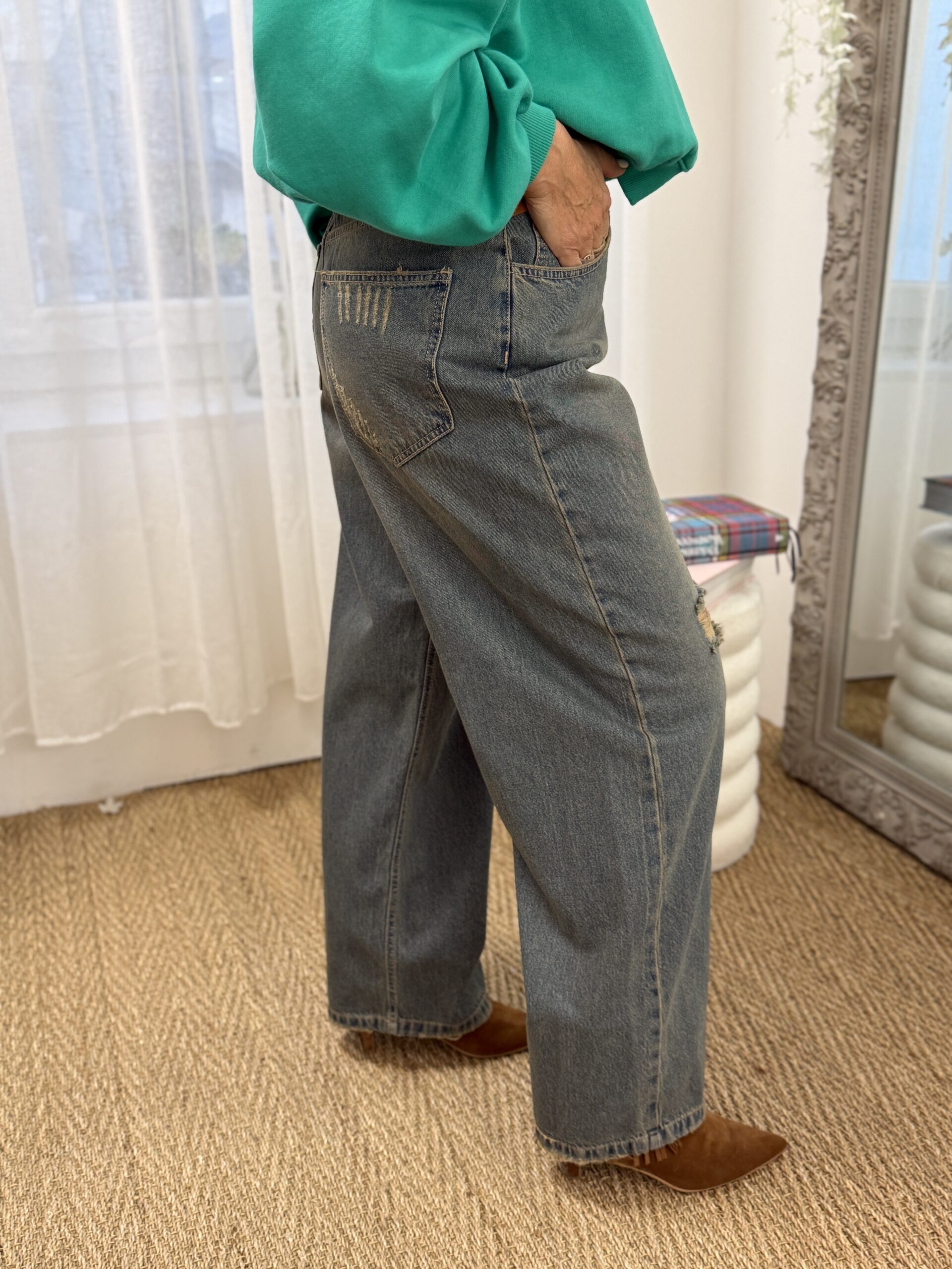 jean à la coupe large et contemporaine, revisité dans un denim à l’aspect légèrement délavé pour un effet vintage très actuel. Ses détails destroy subtilement placés apportent du caractère tout en restant facile à porter au quotidien.