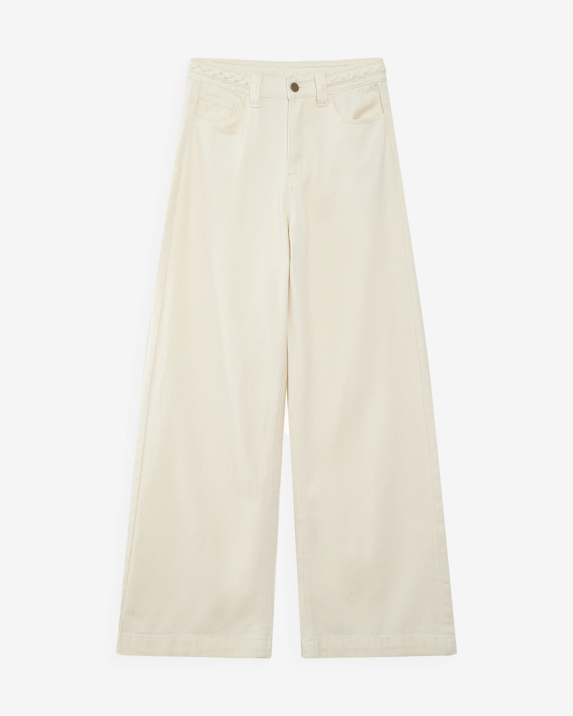 Le jean écru « jaden » se décline en version écru pour une allure lumineuse et élégante. Sa coupe large et sa taille haute structurent la silhouette tout en garantissant un confort optimal. Confectionné dans un denim souple il offre un tombé fluide et une ligne épurée, idéale pour un vestiaire chic et intemporel