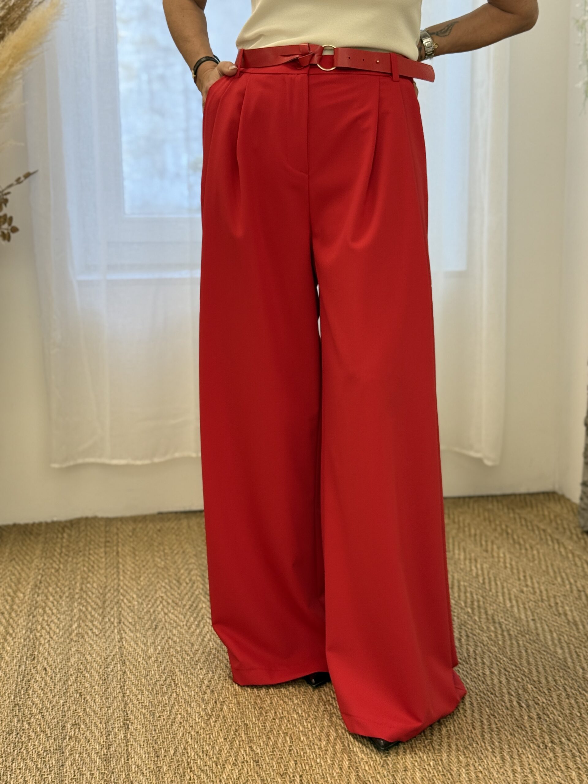 Pantalon à pinces fluide au tombé fluide, sublimé par un délicat coloris rouge