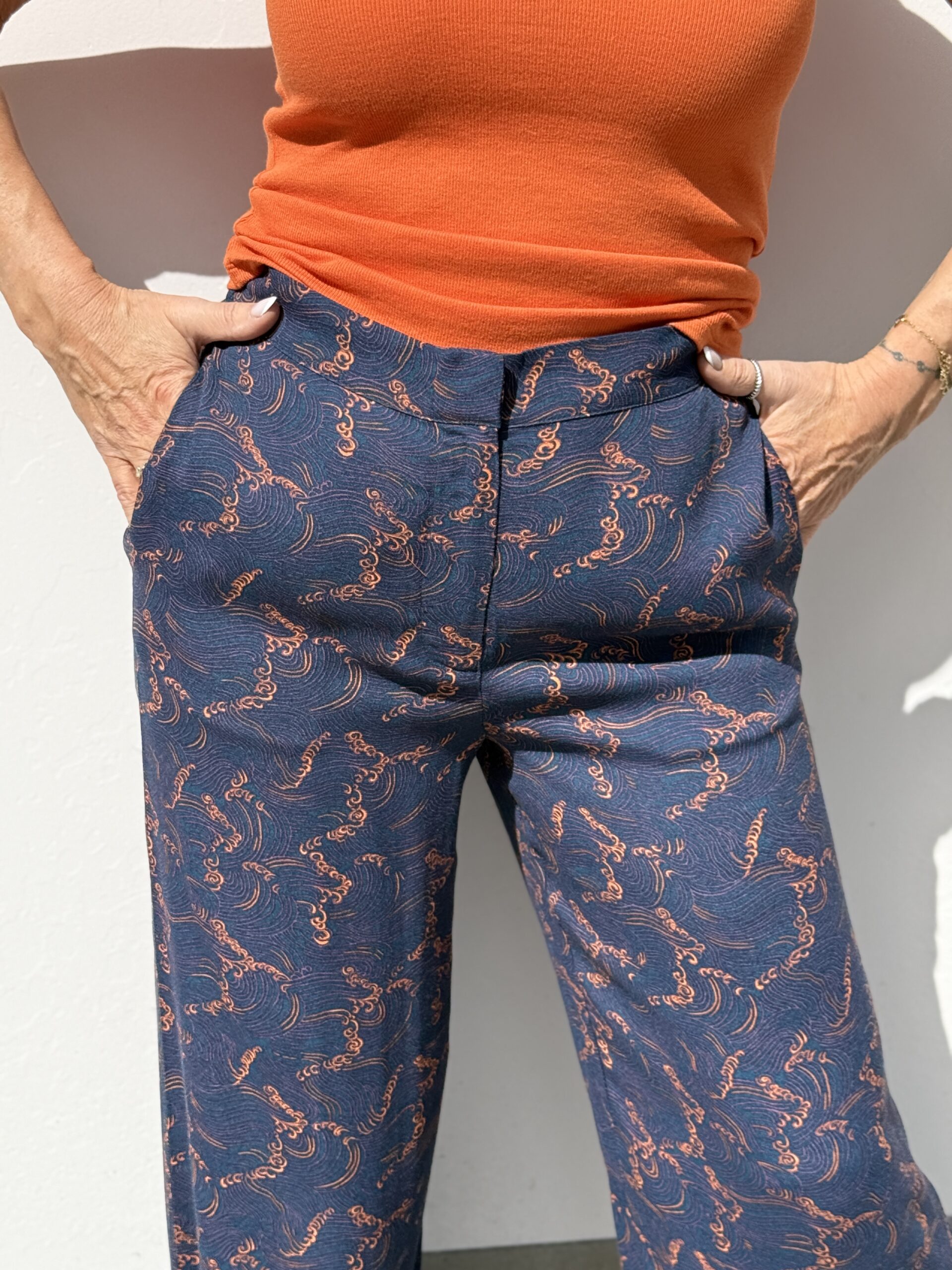 Une pantalon fluide au motif vibrant qui apporte du caractère à ta silhouette tout en restant confortable et élégant.