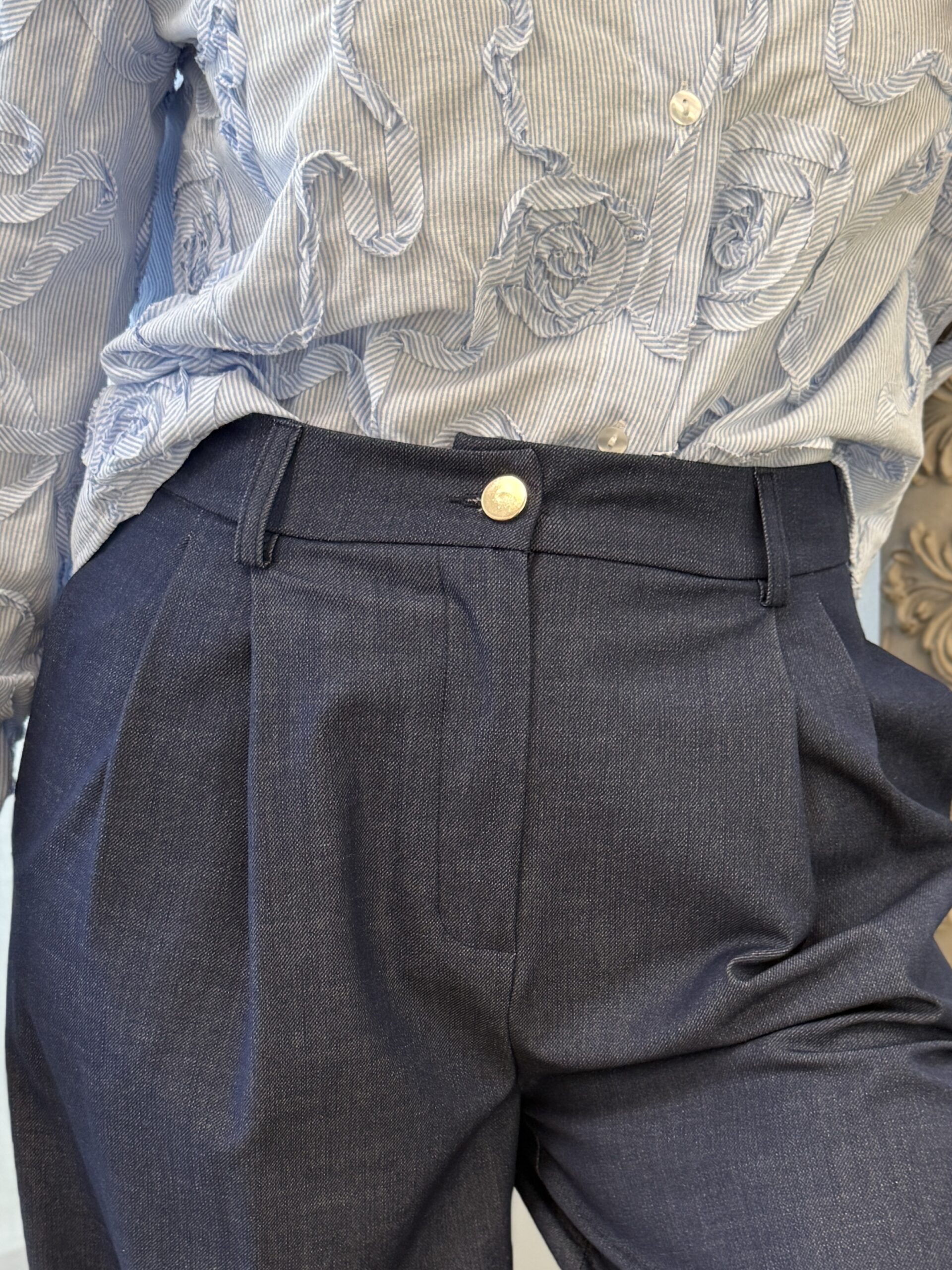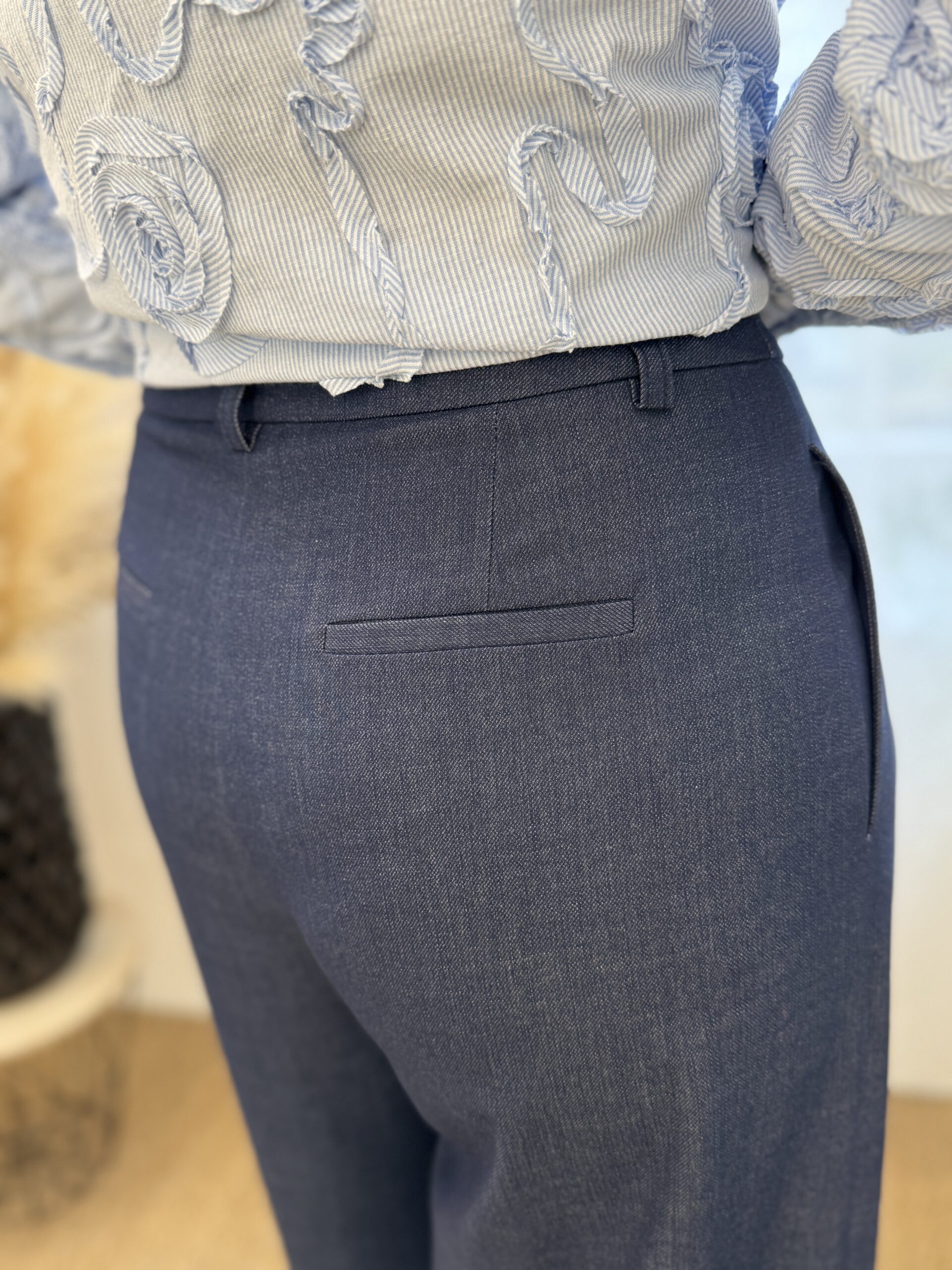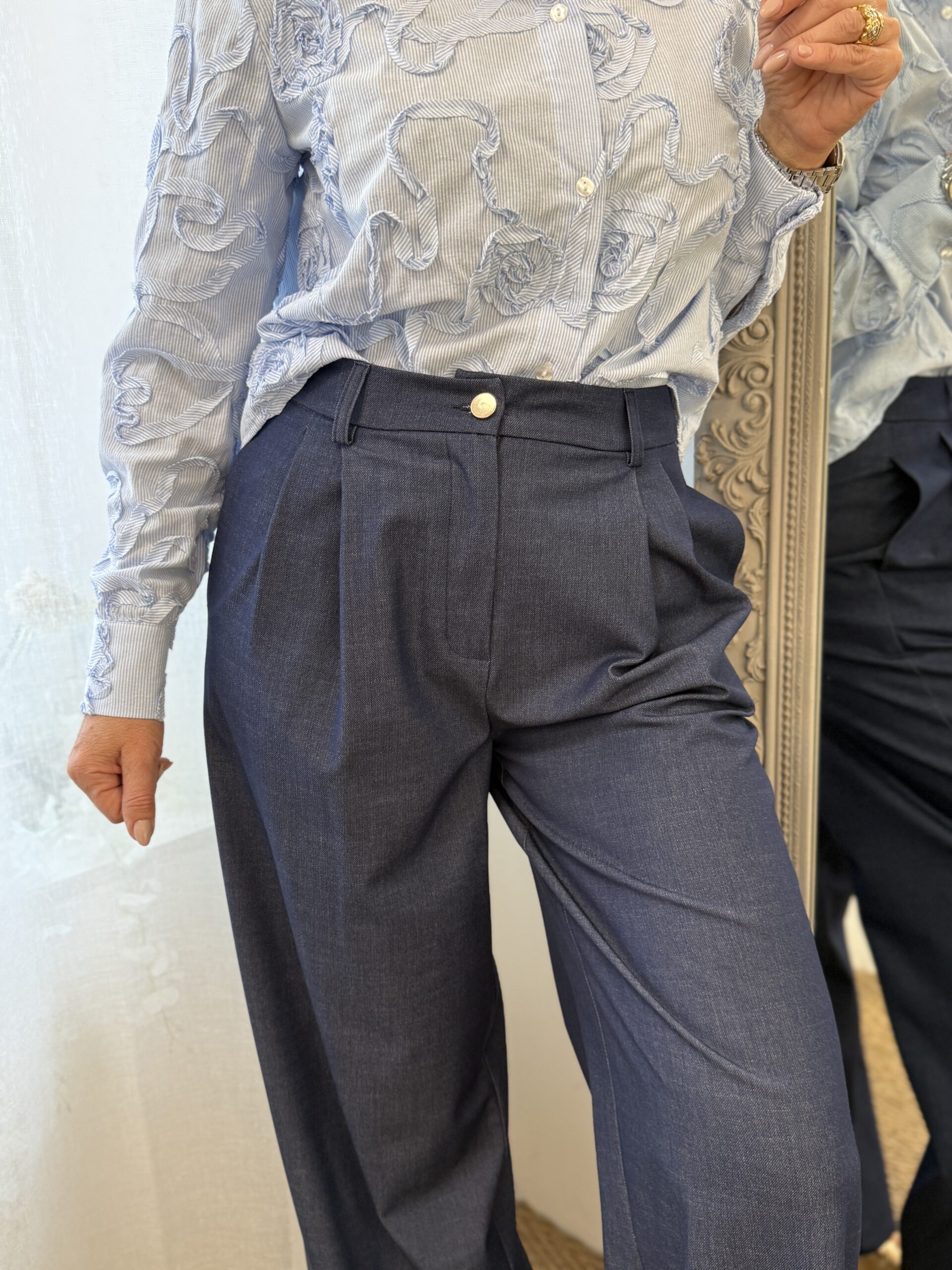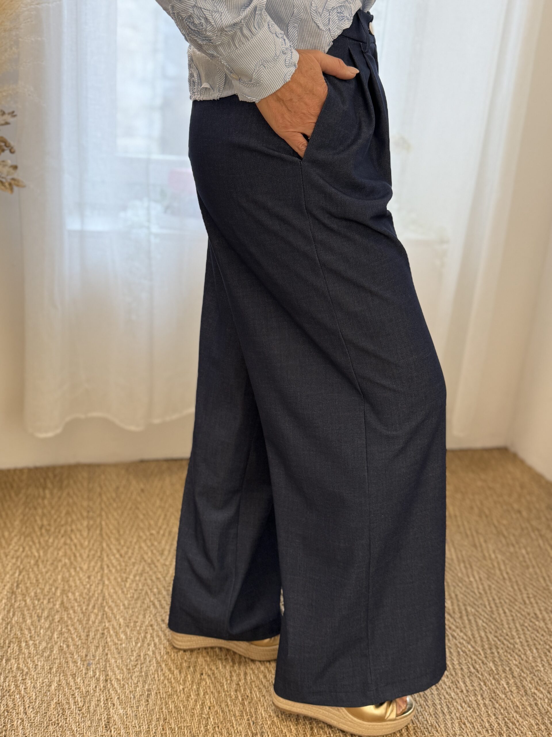Une pièce élégante et moderne, parfaite pour un look structuré et confortable. Ce pantalon séduit par son coloris bleu denim, à la fois chic et facile à associer.