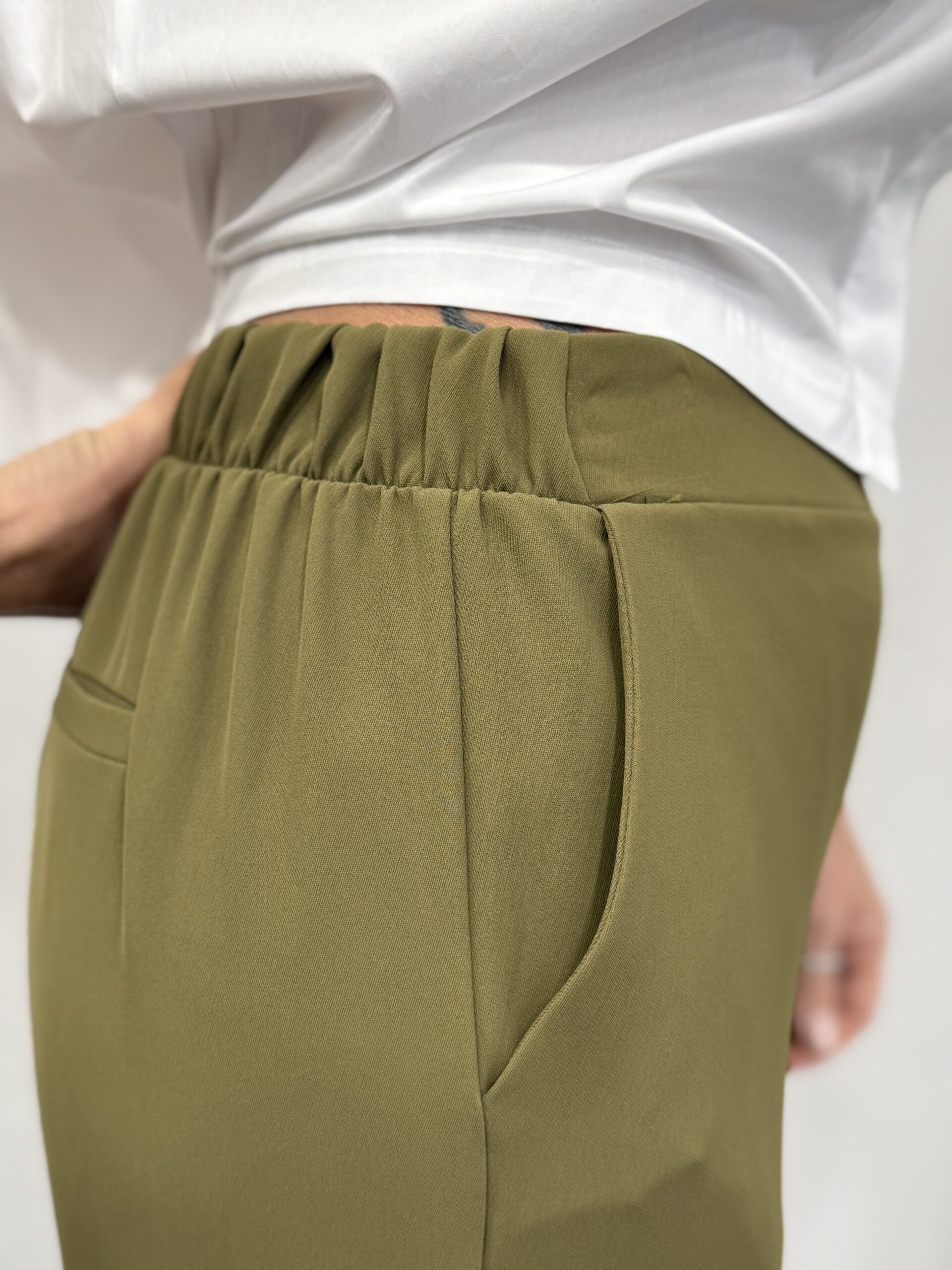 Pantalon fluide large pistache est parfait pour allonger la silhouette tout en offrant un confort optimal.
