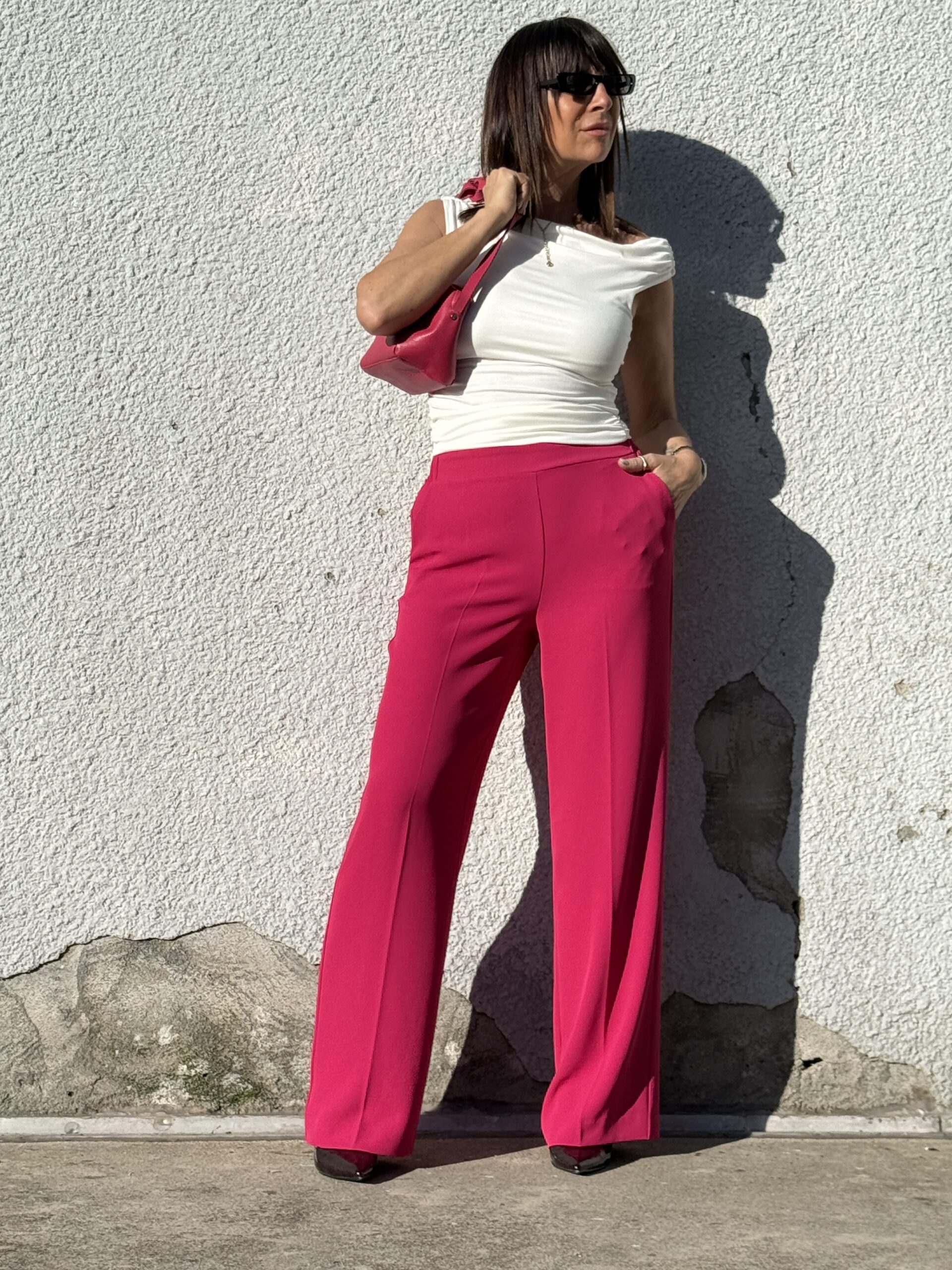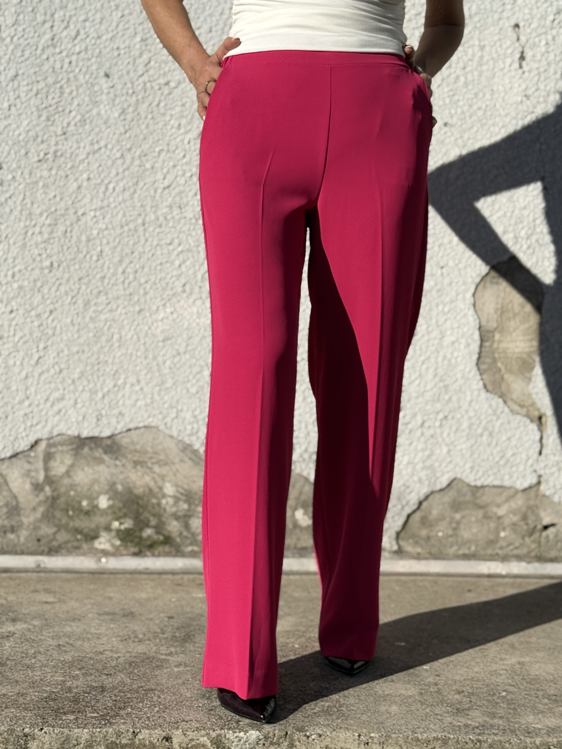 Pantalon fluide large fuchsia est parfait pour allonger la silhouette tout en offrant un confort optimal.