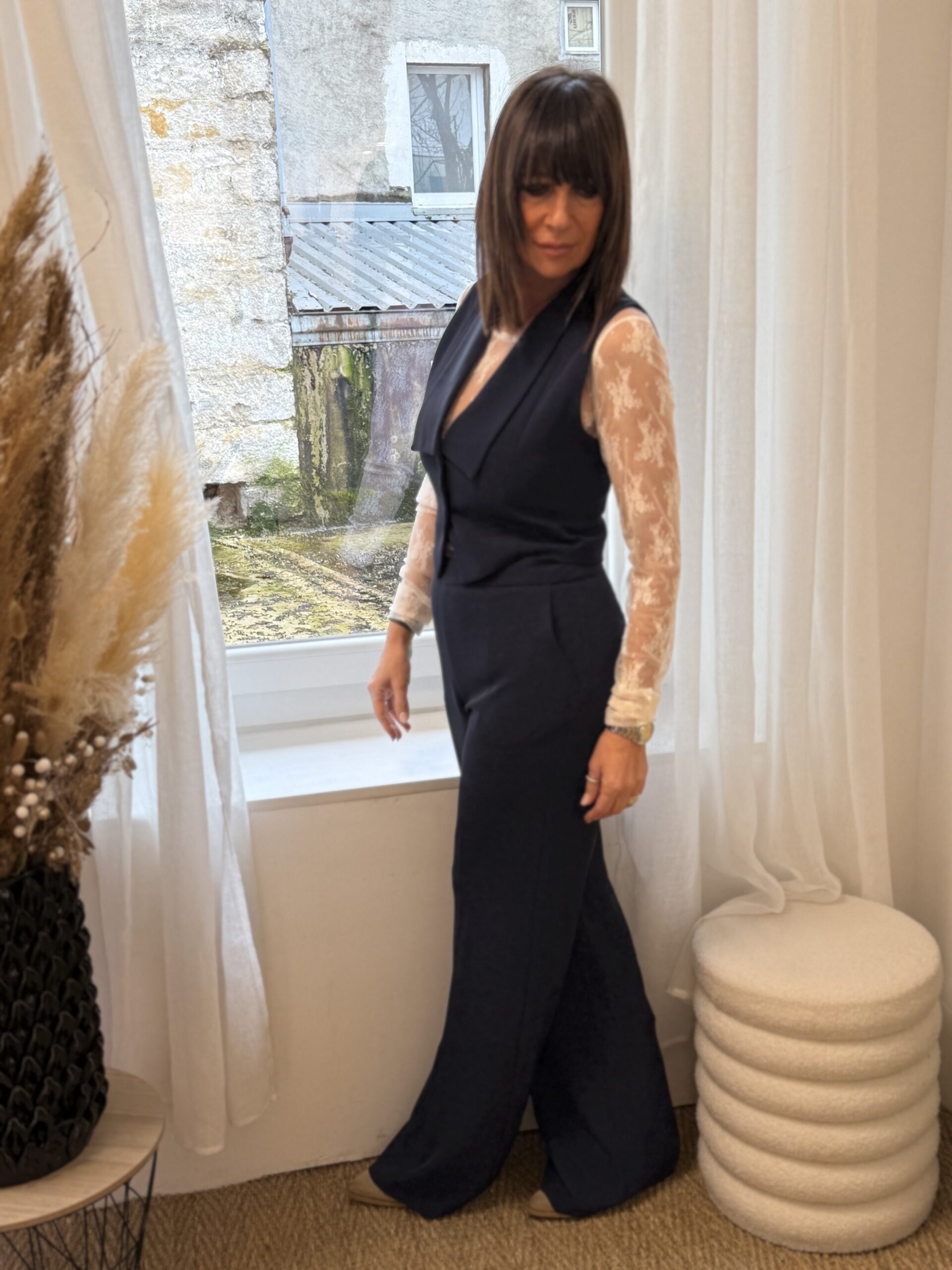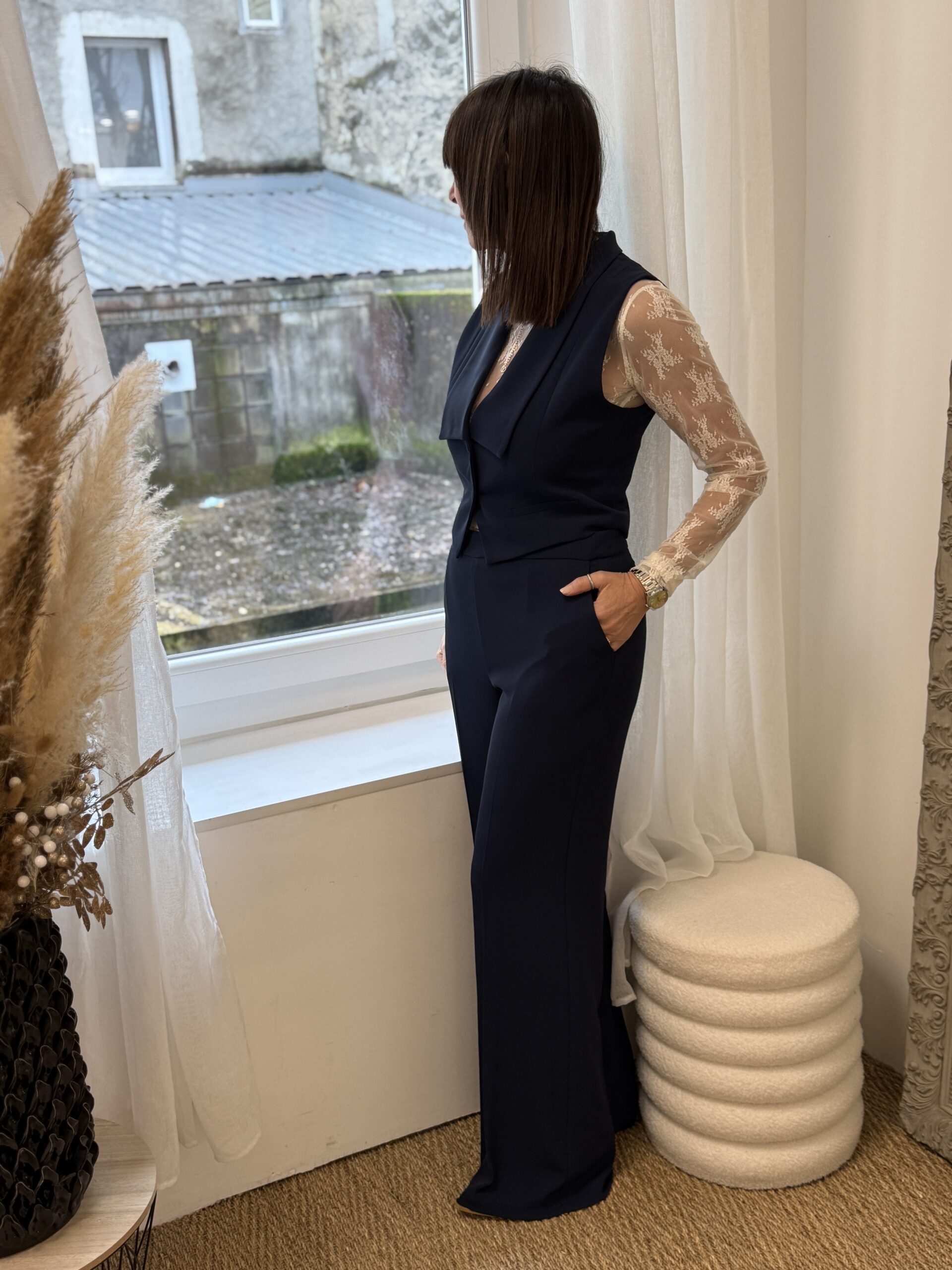 Pantalon fluide large marine est une pièce essentielles du dressing, à la fois élégante et confortable.