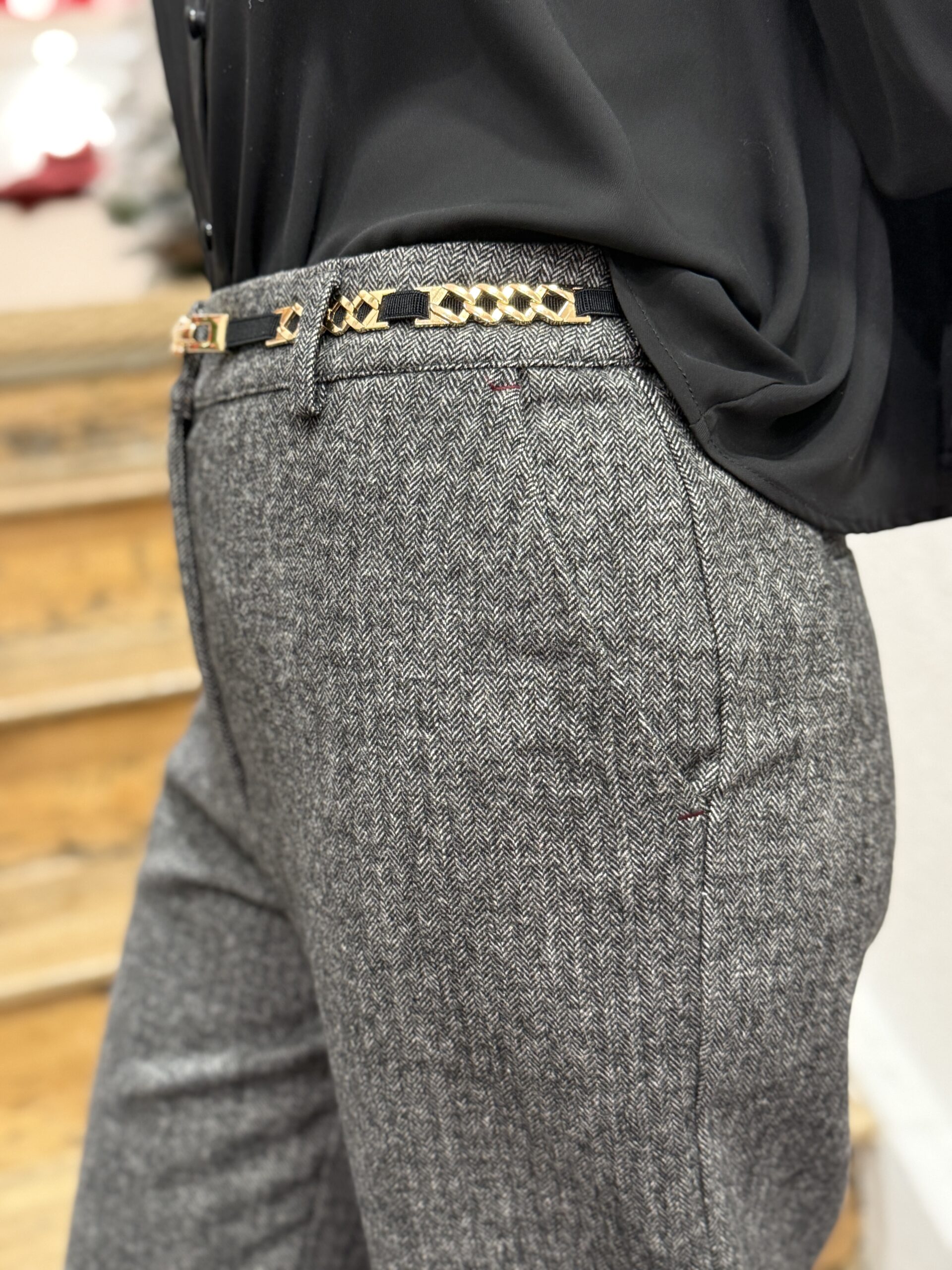 Chic et intemporel, ce pantalon large taille haute en gris anthracite est une pièce essentielle du dressing féminin.