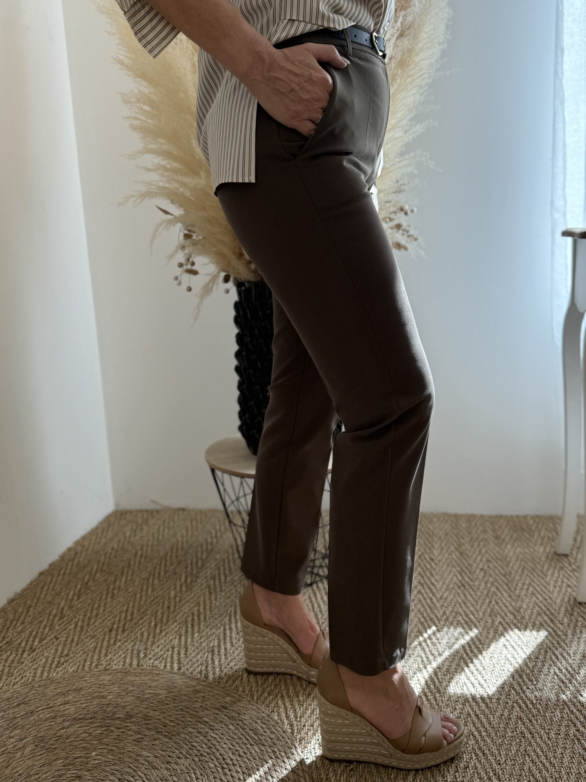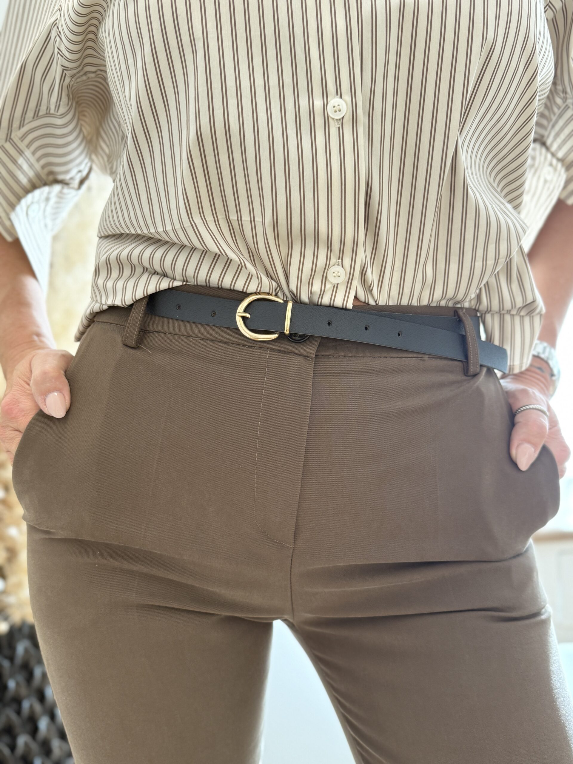 Conseil mode de Nathalie : Parfait avec une chemise ou un blazer pour un look bureau chic, ou avec un T-shirt et des baskets pour un style plus casual. La ceinture souligne joliment la taille.