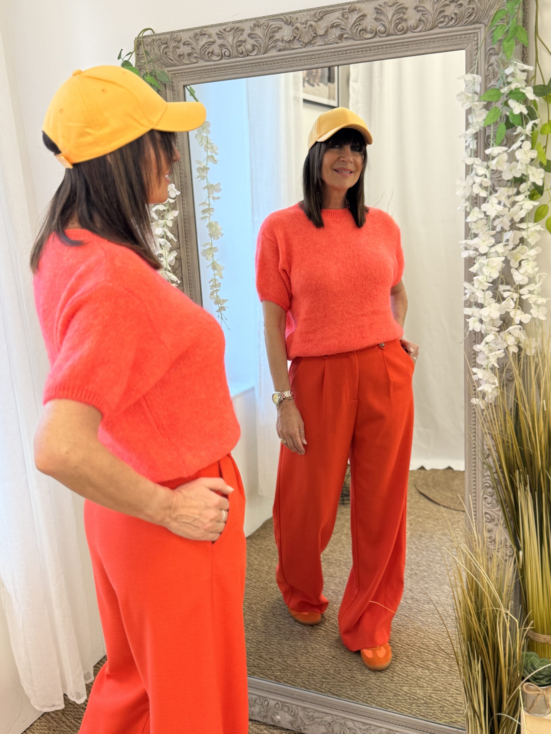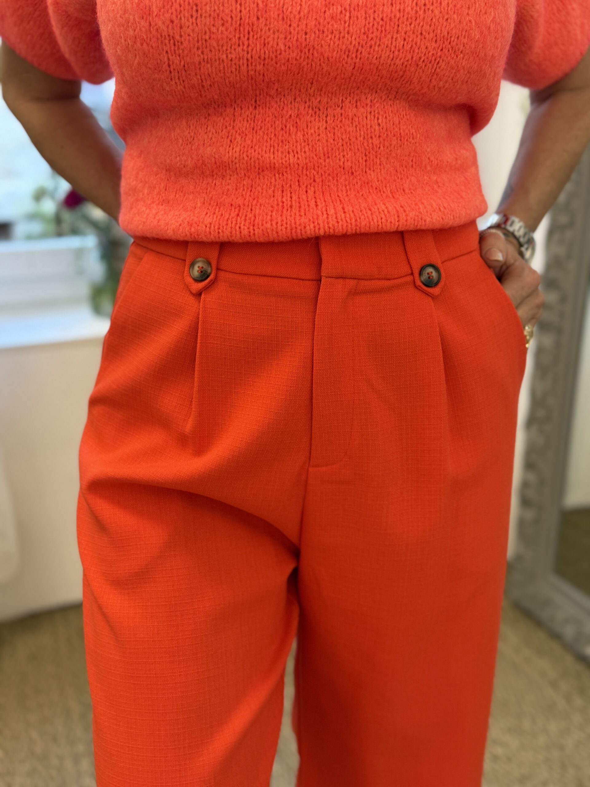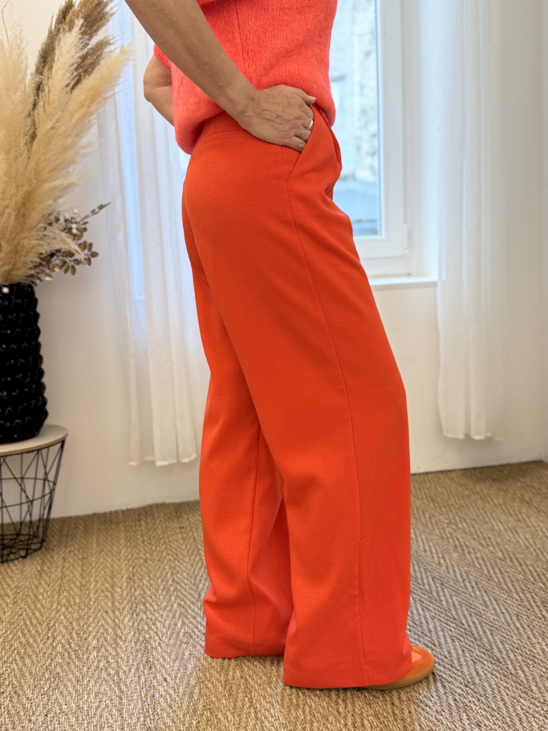 Chic et moderne, ce pantalon de tailleur orange sanguine allonge la silhouette grâce à sa coupe large et fluide. Sa taille mi-haute structurée et ses finitions soignées en font une pièce élégante et confortable, idéale aussi pour un look professionnel que pour une allure plus décontractée.