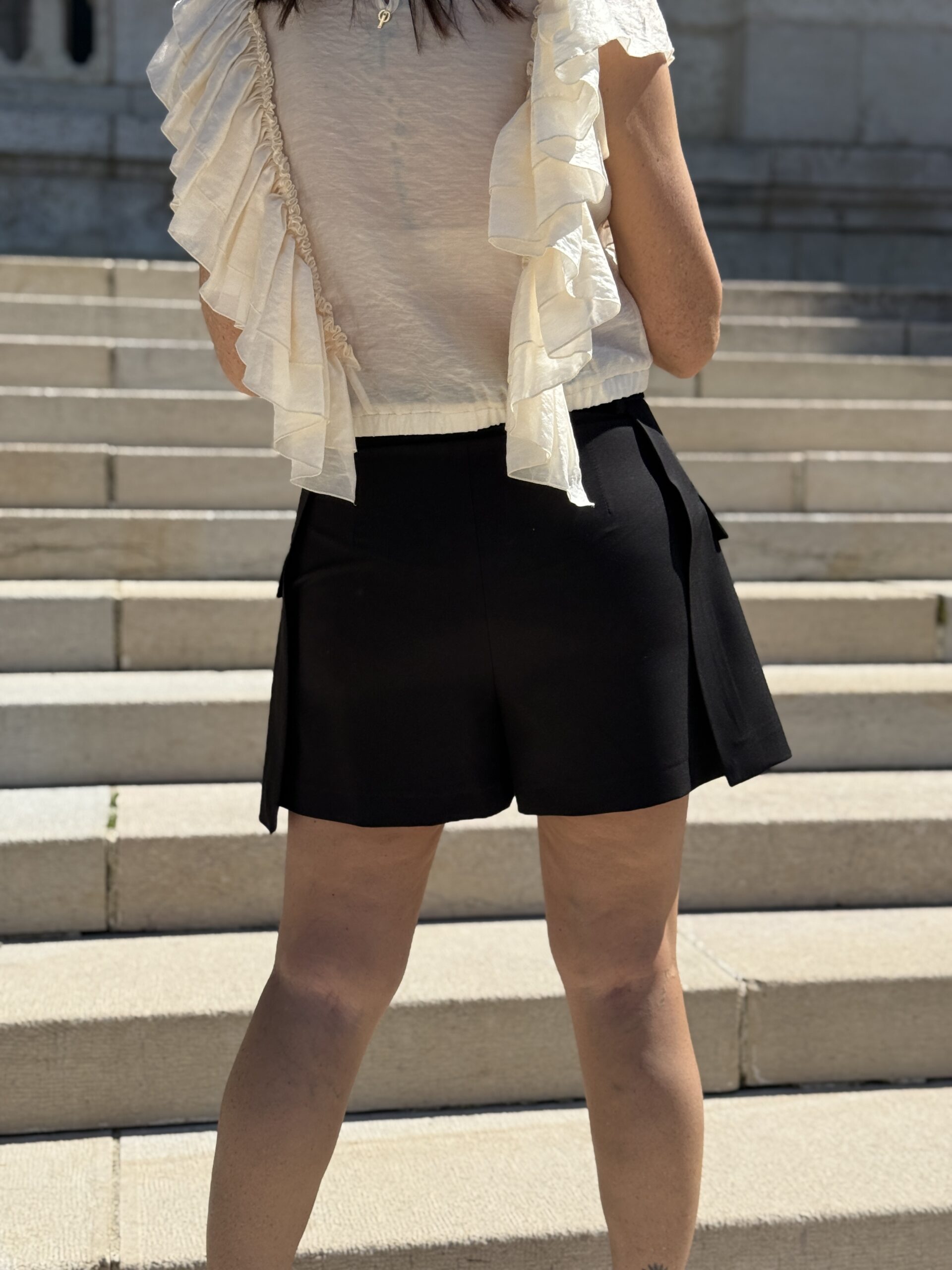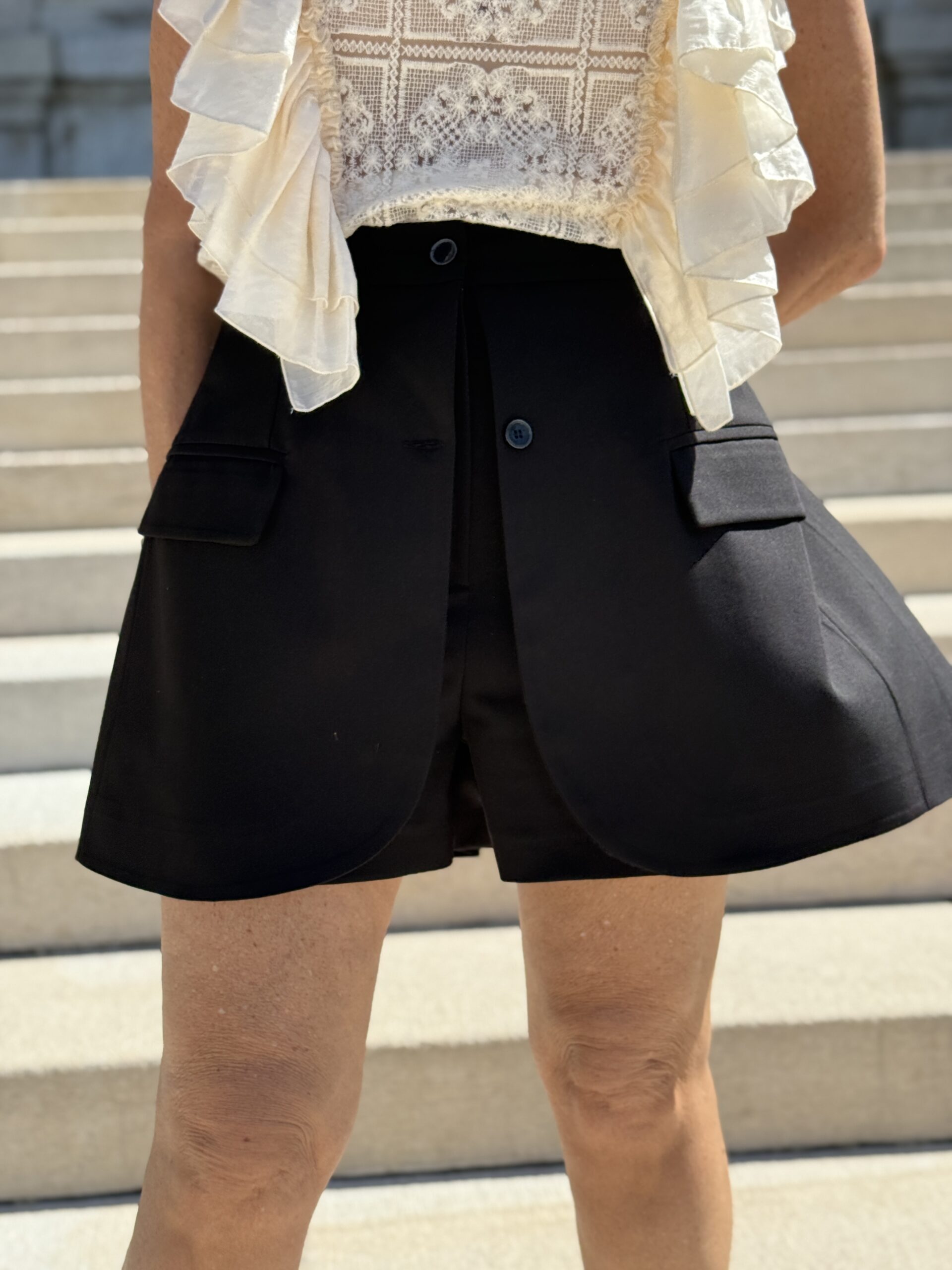 Elégant et structuré, ce short jupe signé Impérial combine l’allure sophistiqué d’une jupe avec le confort pratique d’un short. Sa coupe minimaliste et moderne en fait une pièce polyvalente, facile à intégrer dans une garde-robe urbaine ou habillée.