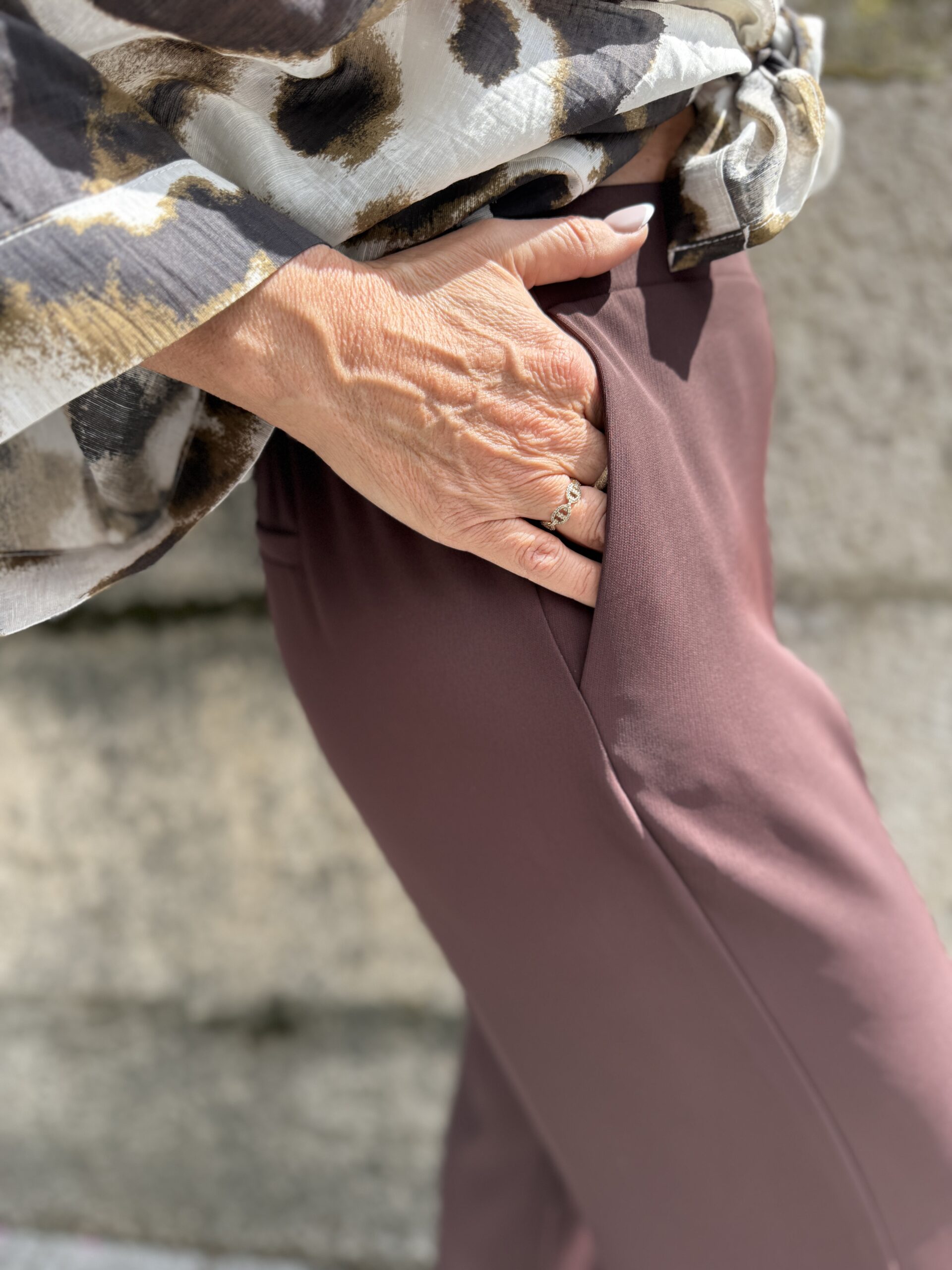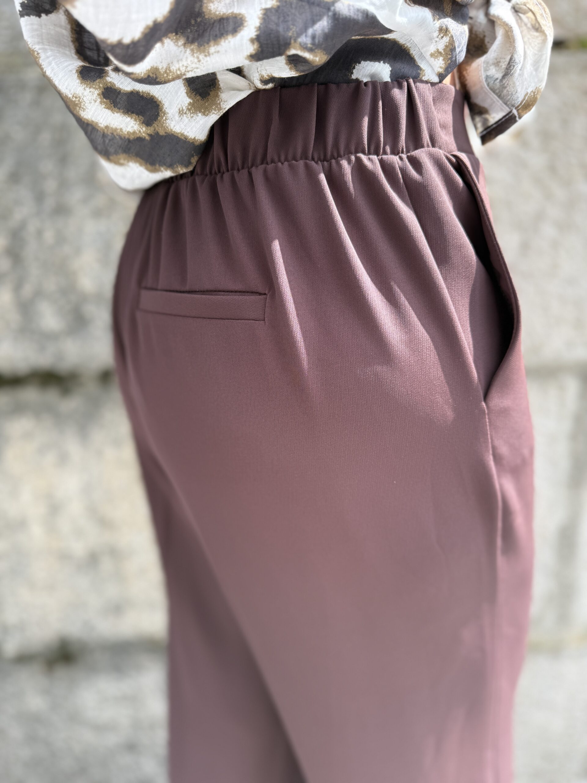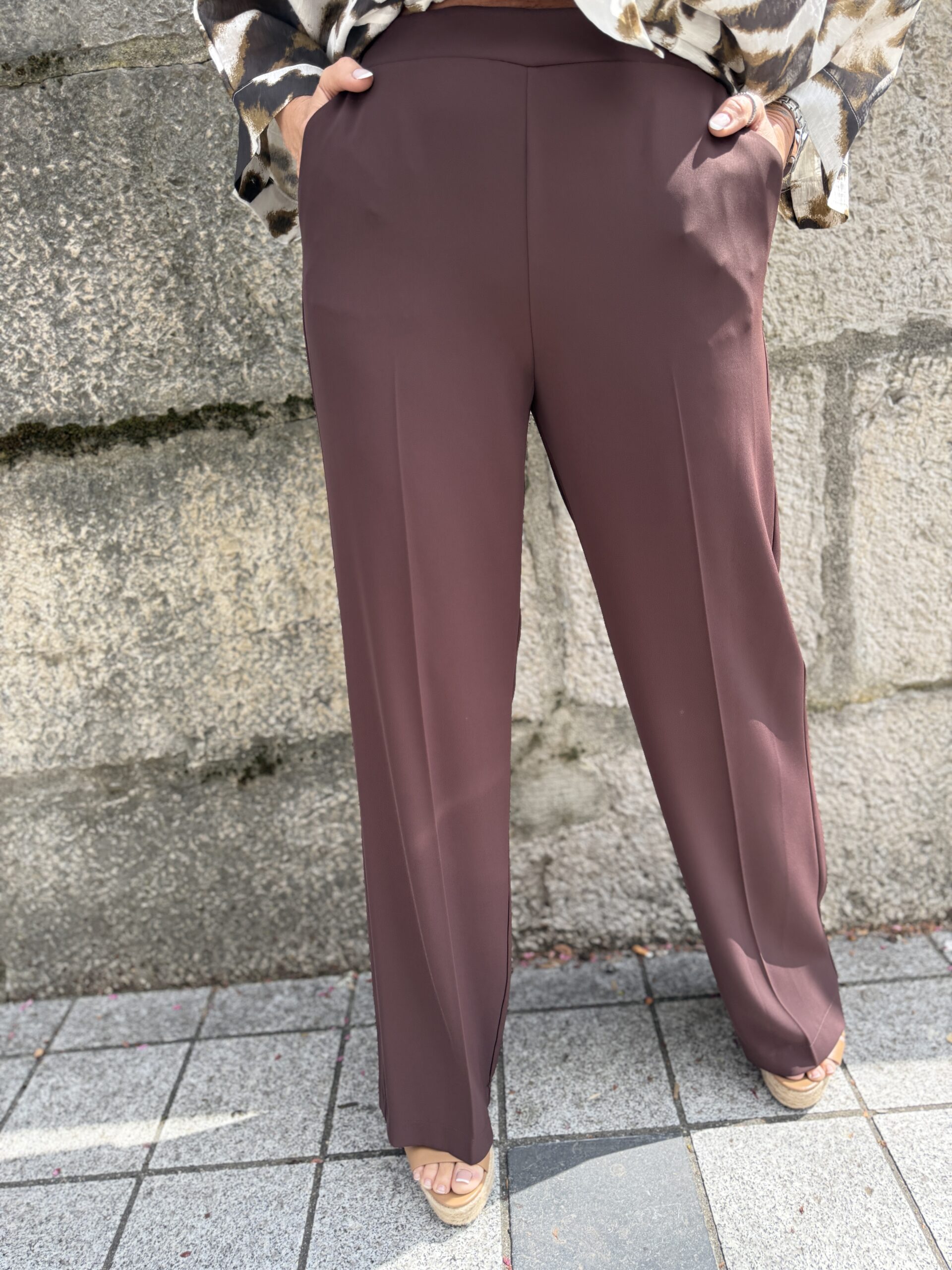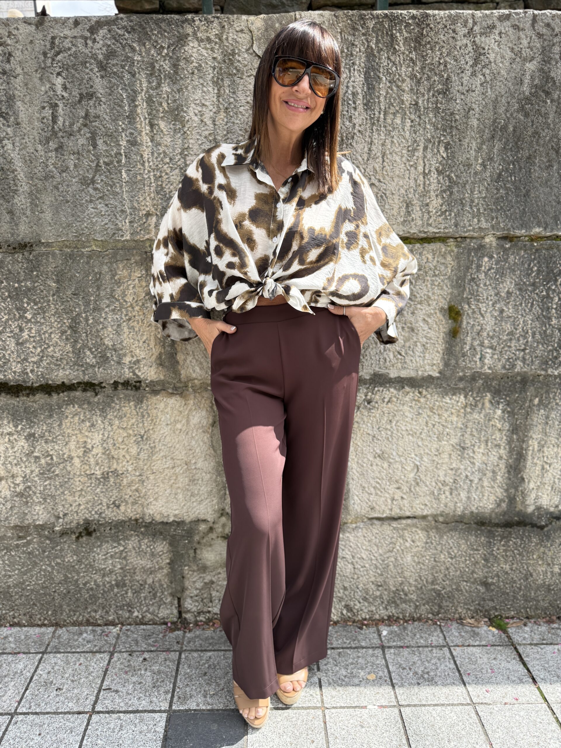 Pantalon fluide large marron est parfait pour allonger la silhouette tout en offrant un confort optimal.